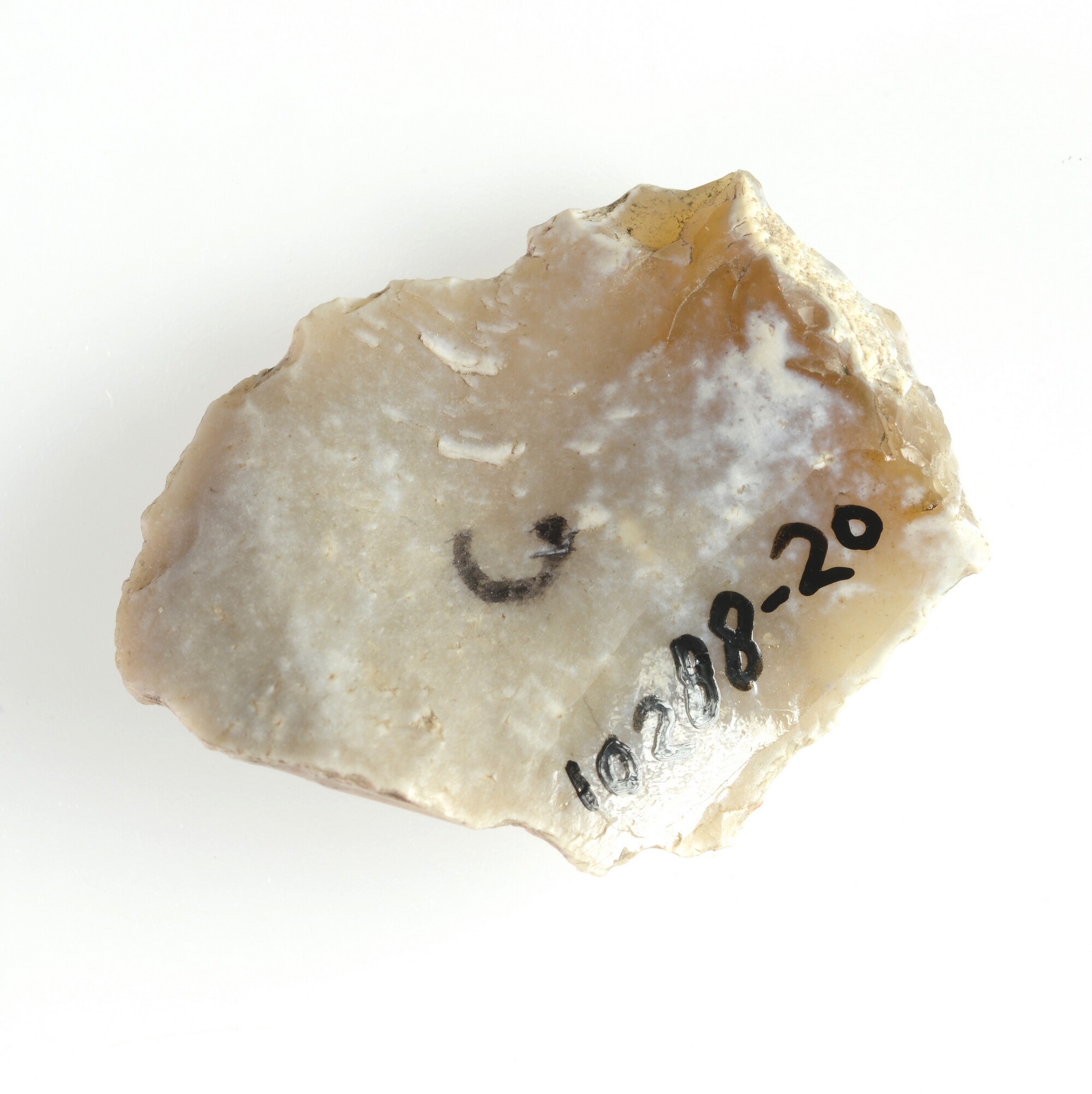 Schrabber; grijs vuursteen; cortex aanwezig