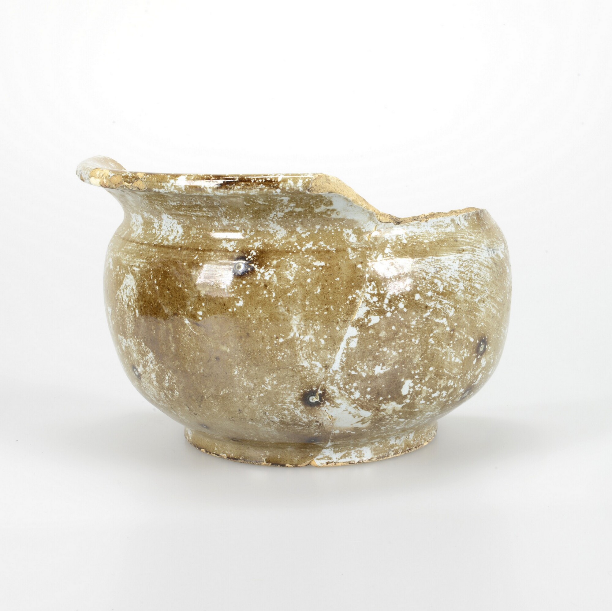 Pispot; f-pis-1; tonvormige pispot met uitgebogen hals en uitgebogen rand; faience; tinglazuur; geheel wit; standvlak