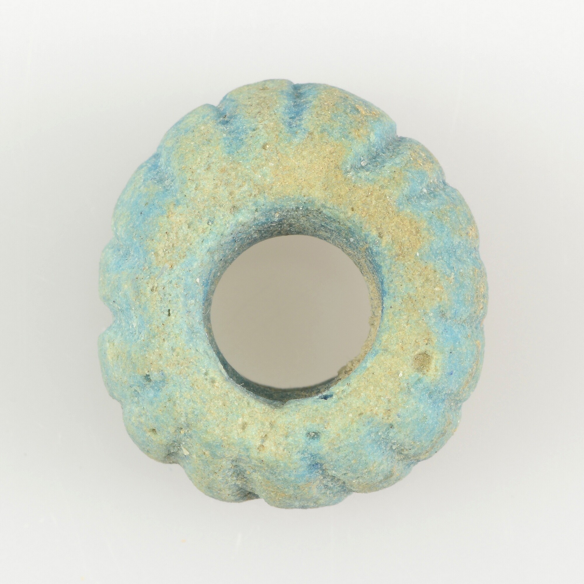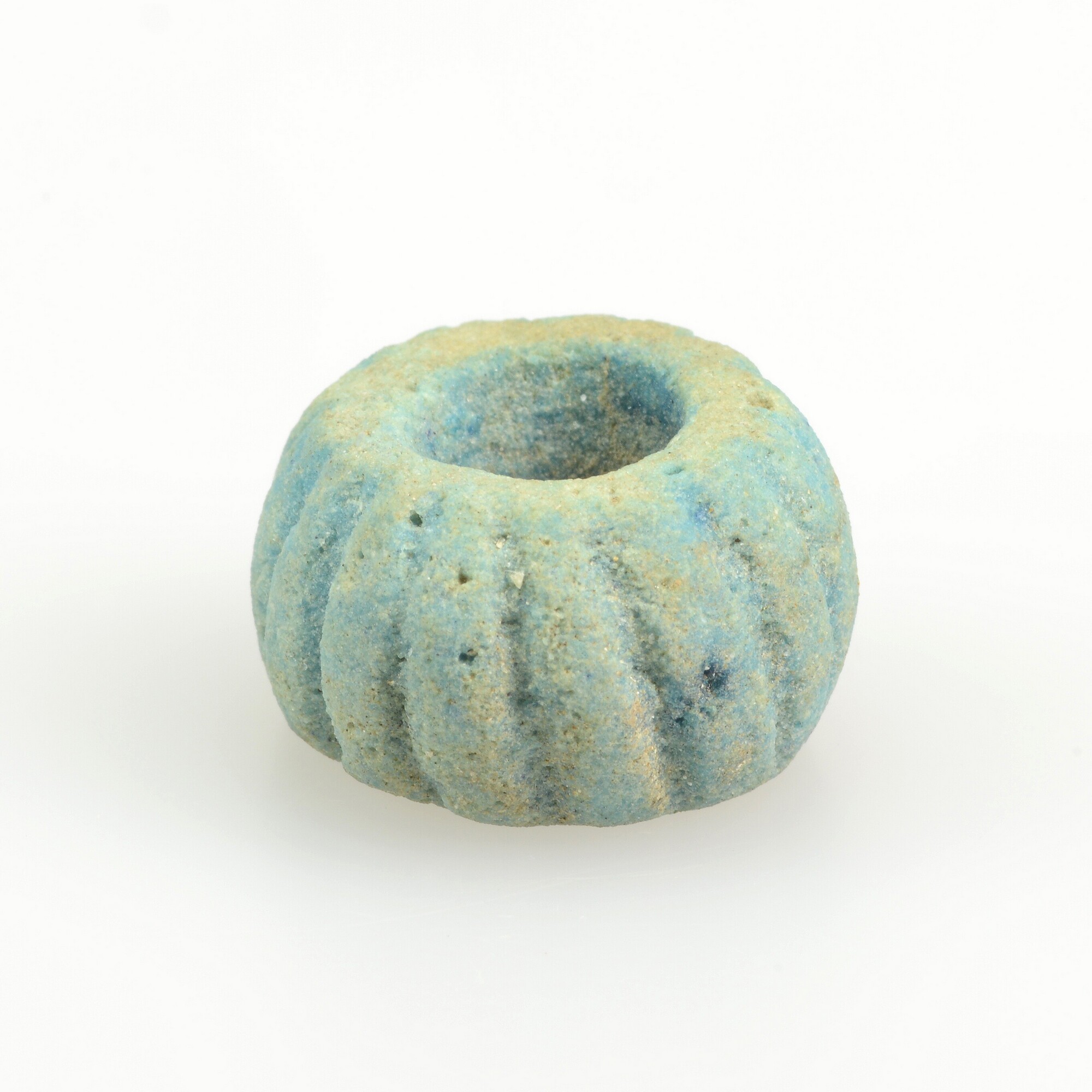 Meloenkraal; lichtblauw faience; geribd