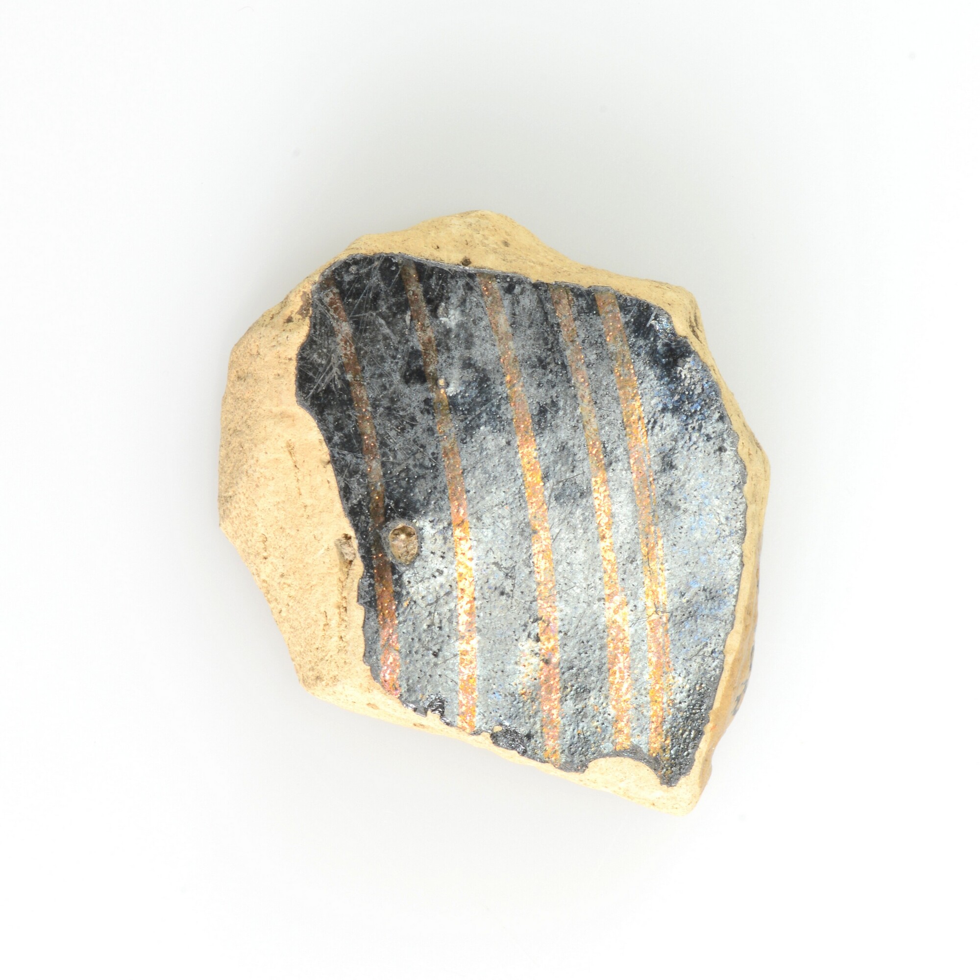 Bord? (wandfragment); sp-bor-?; Spaans tinglazuuraardewerk (goudlustermajolica): concentrische cirkels in goudluster; herkomst: Spanje