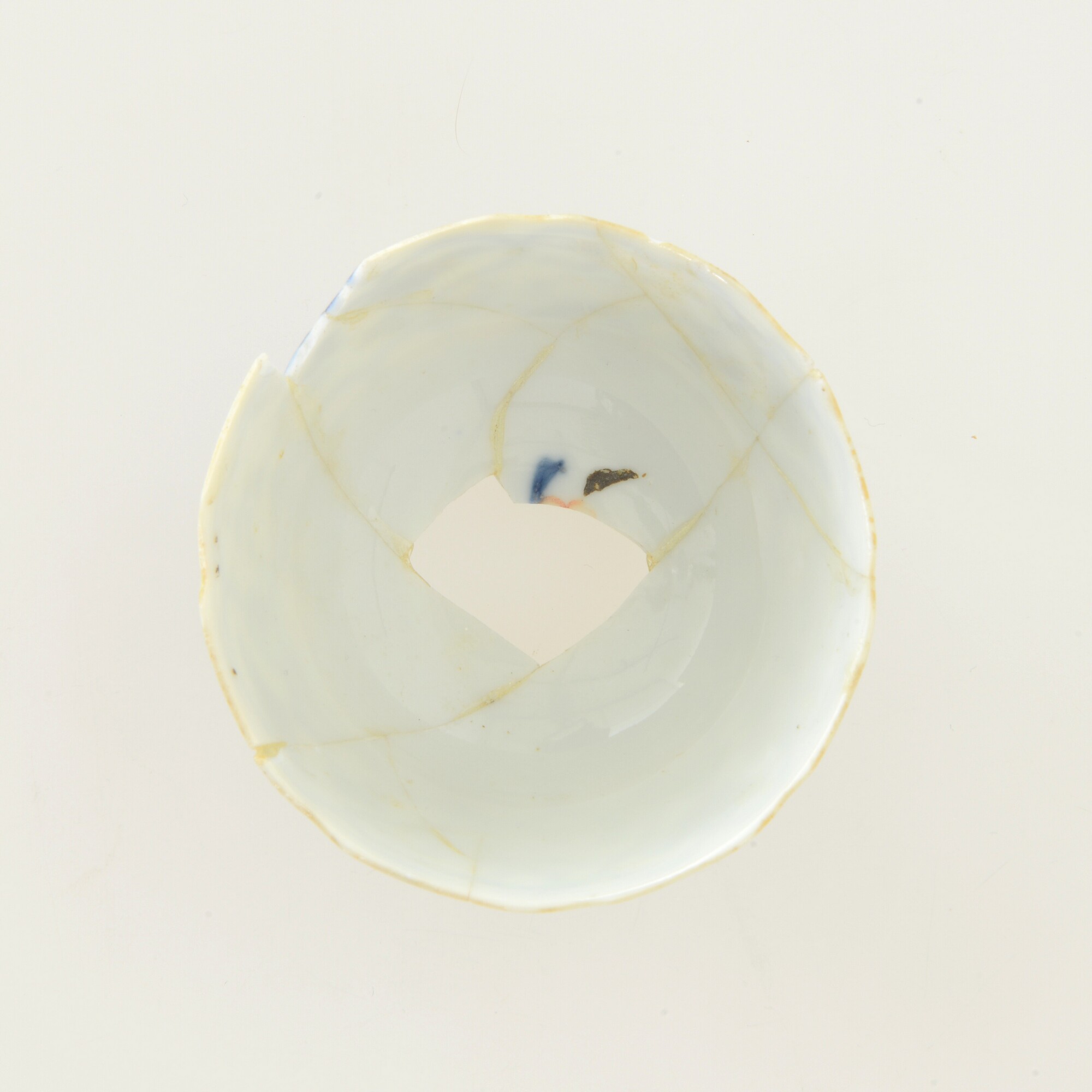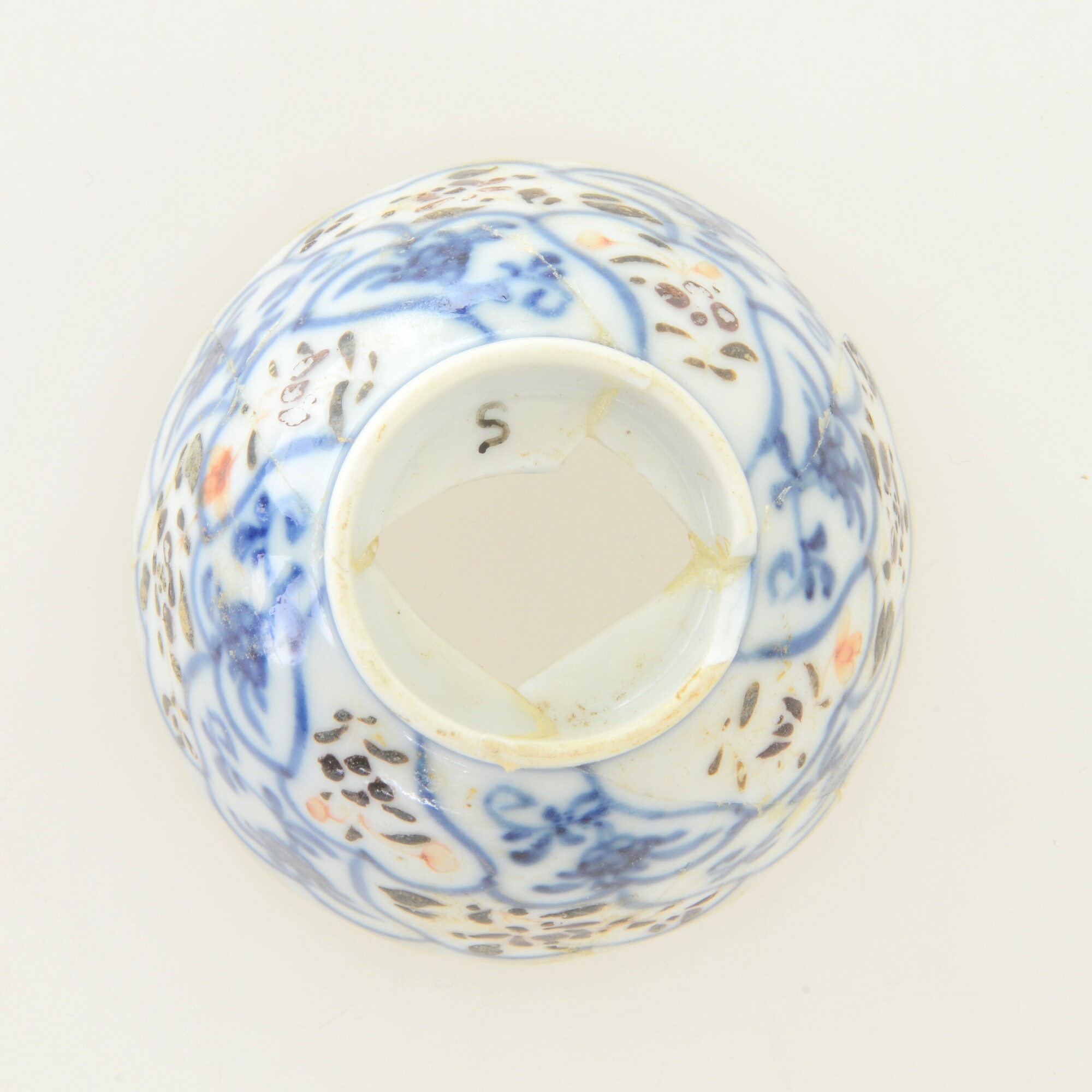 Kop; p-kop-4; afgeronde kop met rechte rand; Chinees porselein; veldspaatglazuur, onderglazuur blauw; inw, sp: bloem?, uitw: bloemen; standring; herkomst: China, Jingdezhen