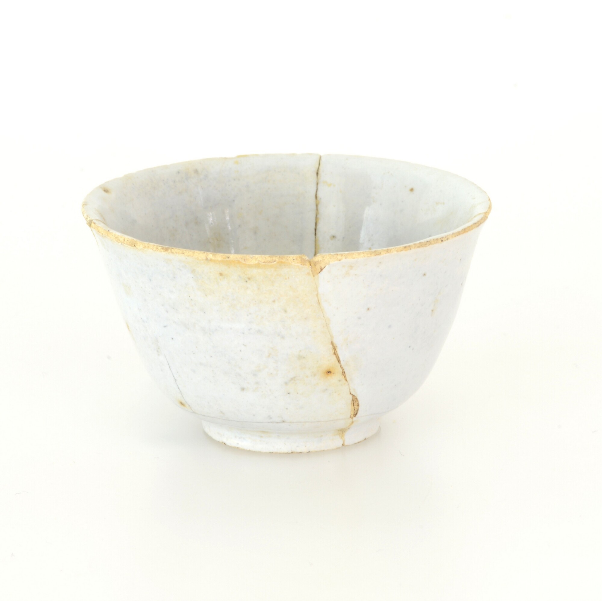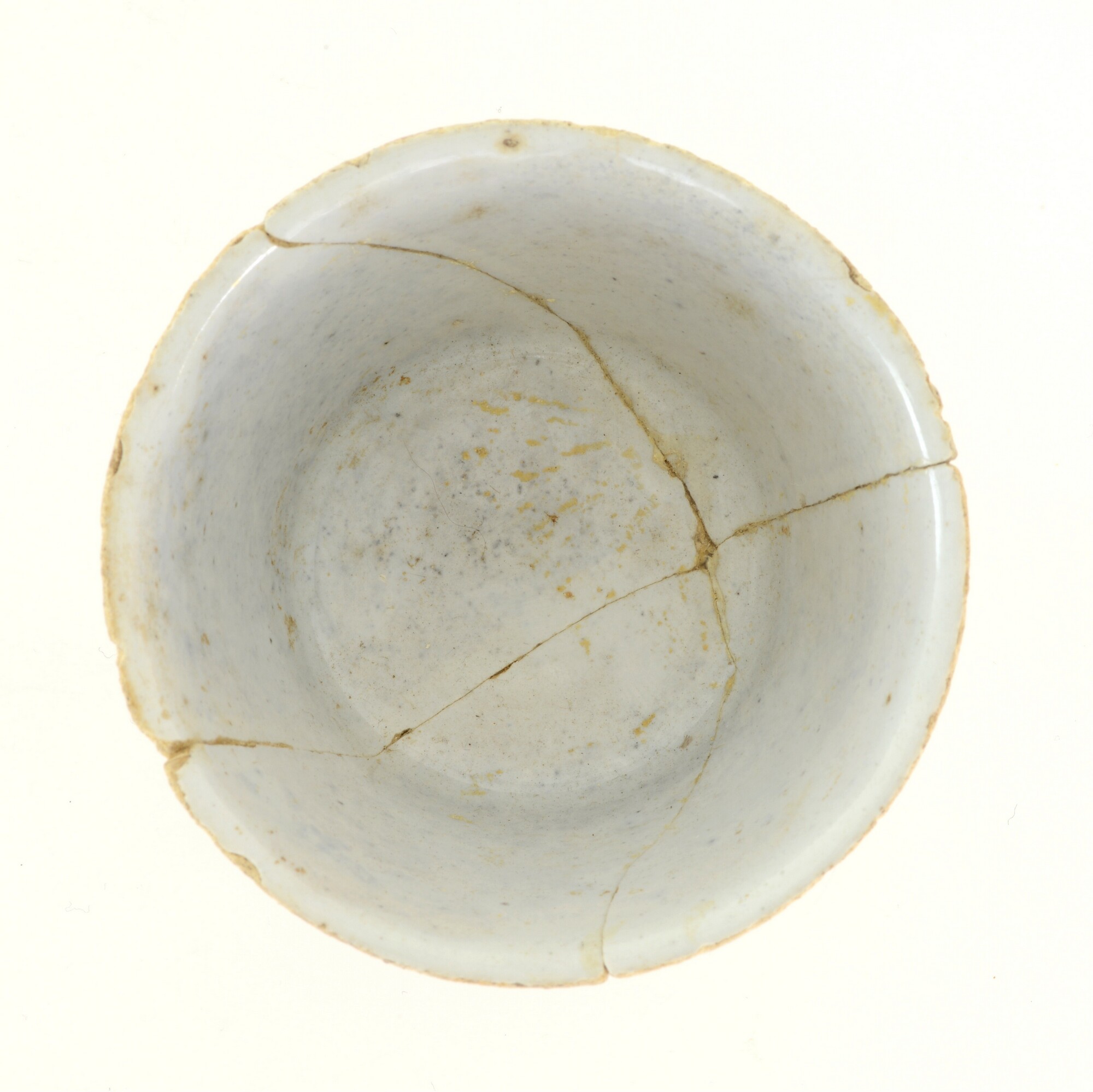 Kop; f-kop-2; steilwandige kop met uitgebogen rand; Nederlandse faience; in- en uitwendig tinglazuur; geheel wit; standring