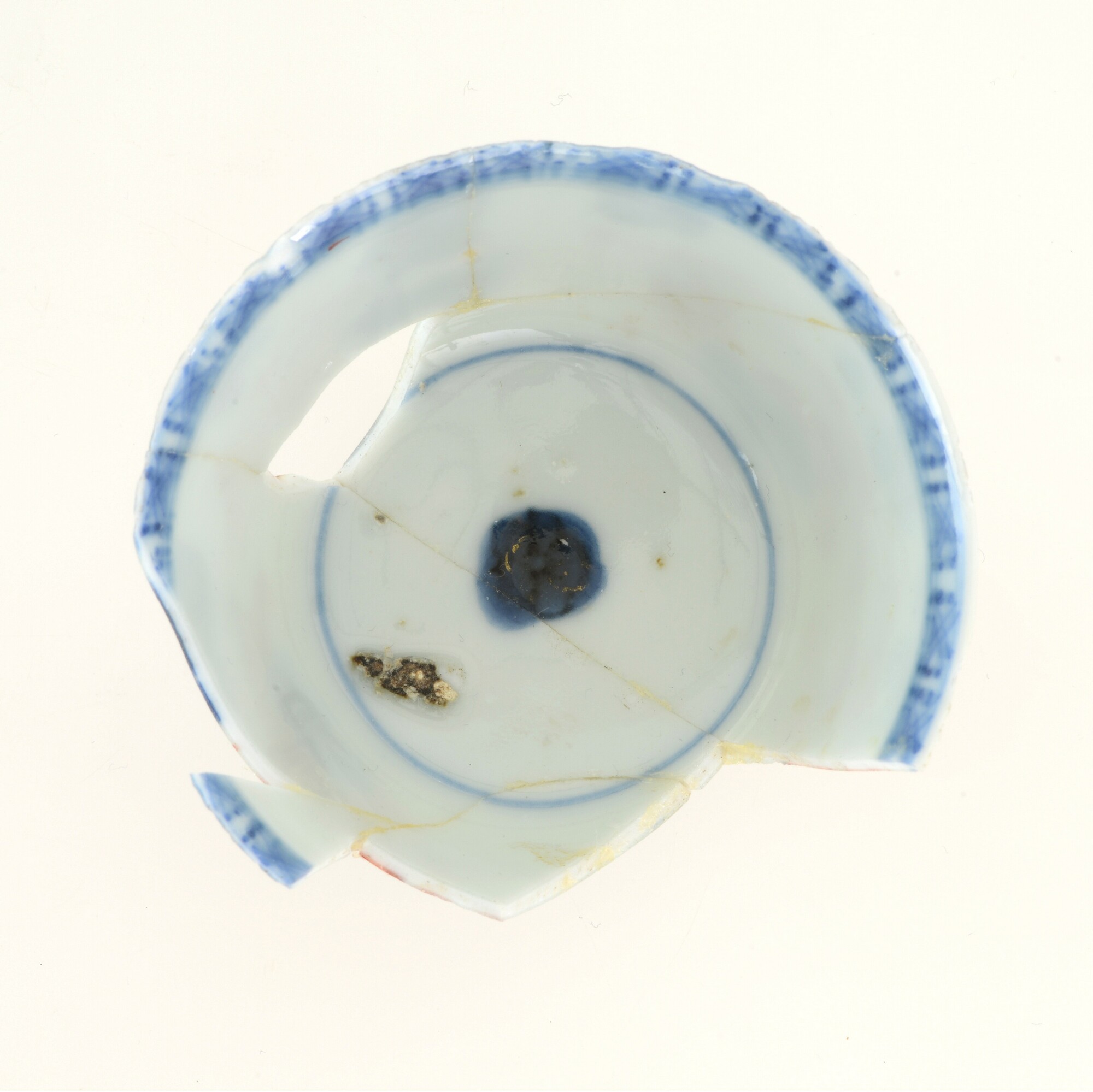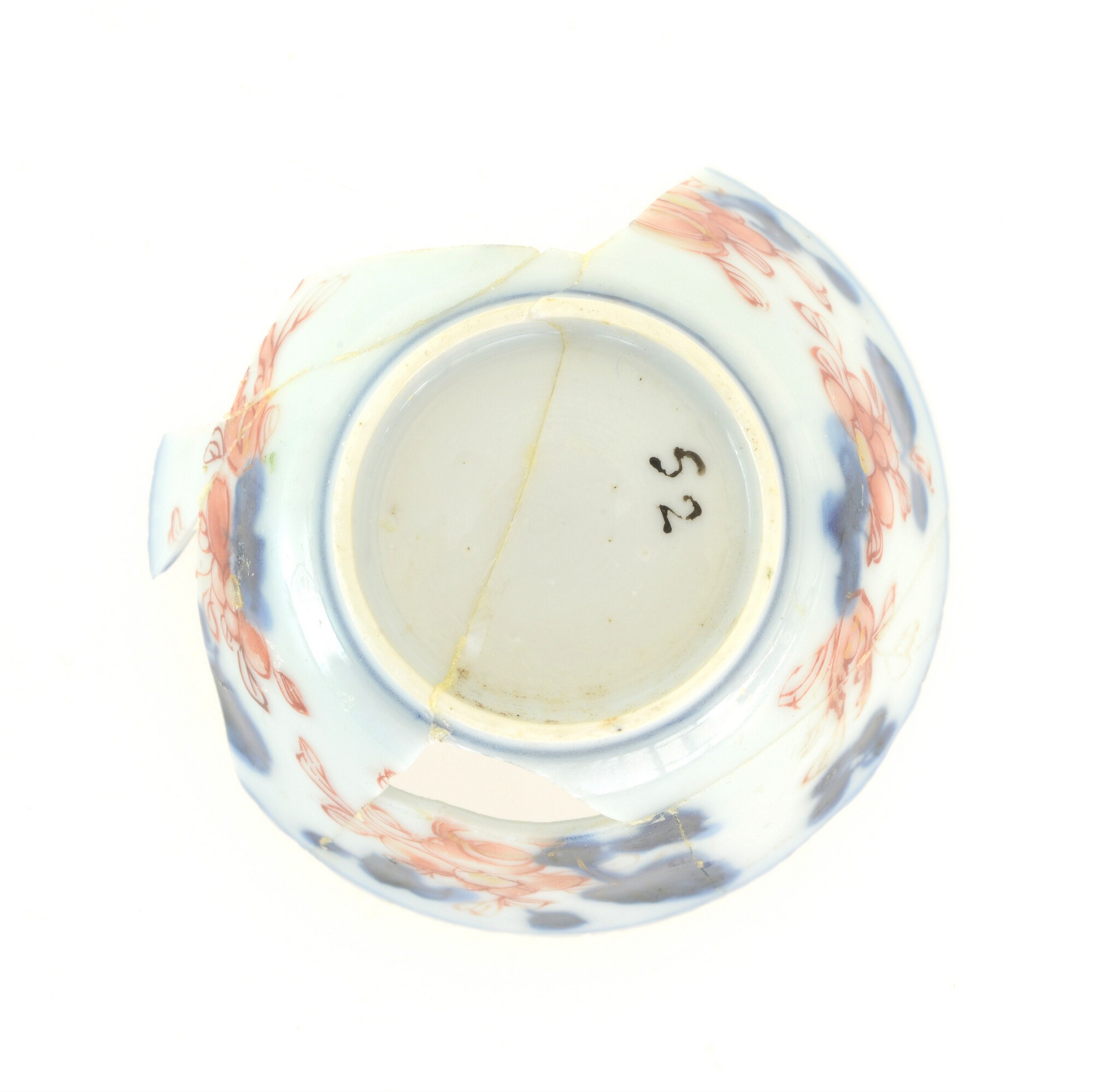 Kop; p-kop-4; afgeronde kop met rechte rand; porselein; veldspaatglazuur, onderglazuur blauw, bovenglazuur rood en goud; inw.: bloem, uitw.: bloem- en bladwerk; standring; herkomst: China