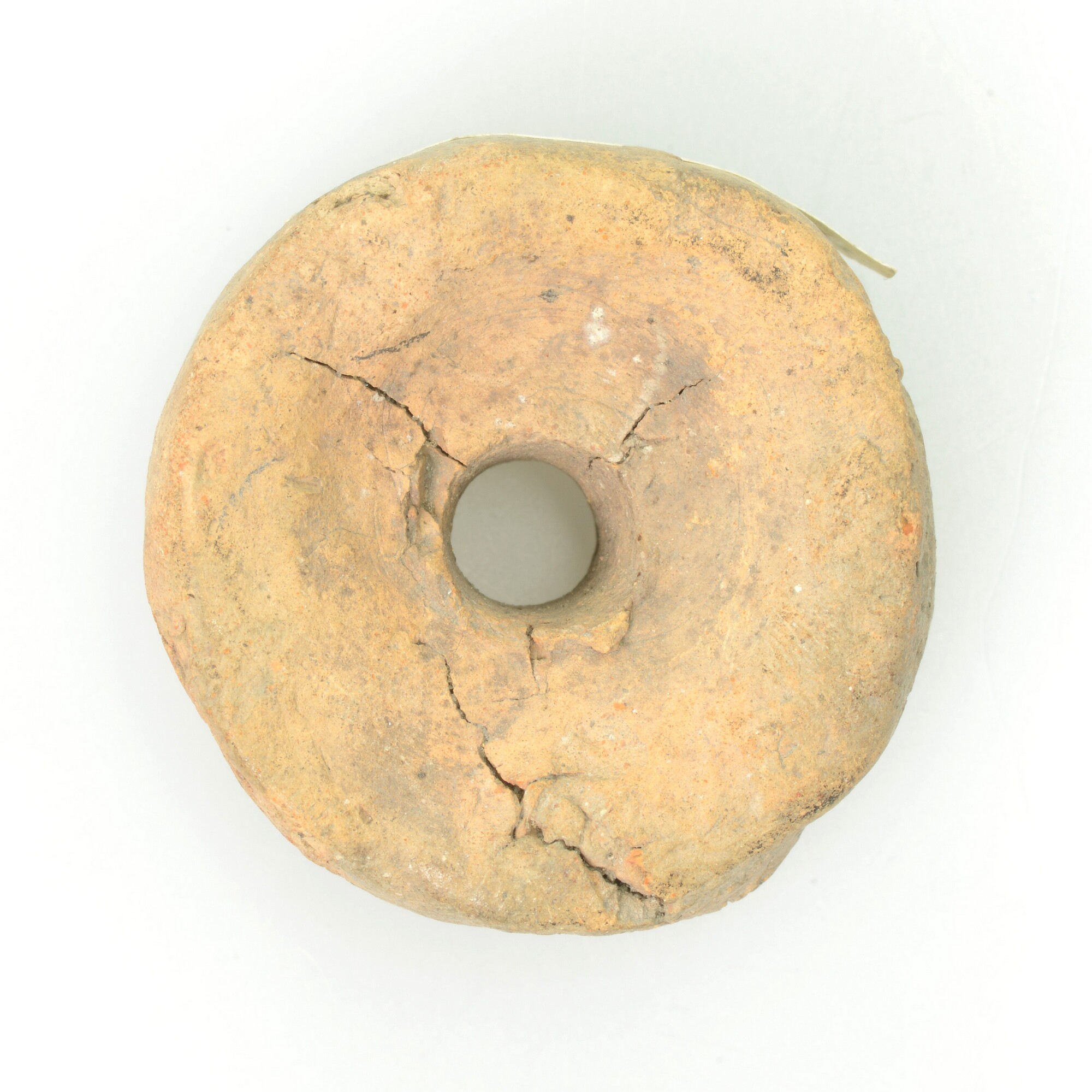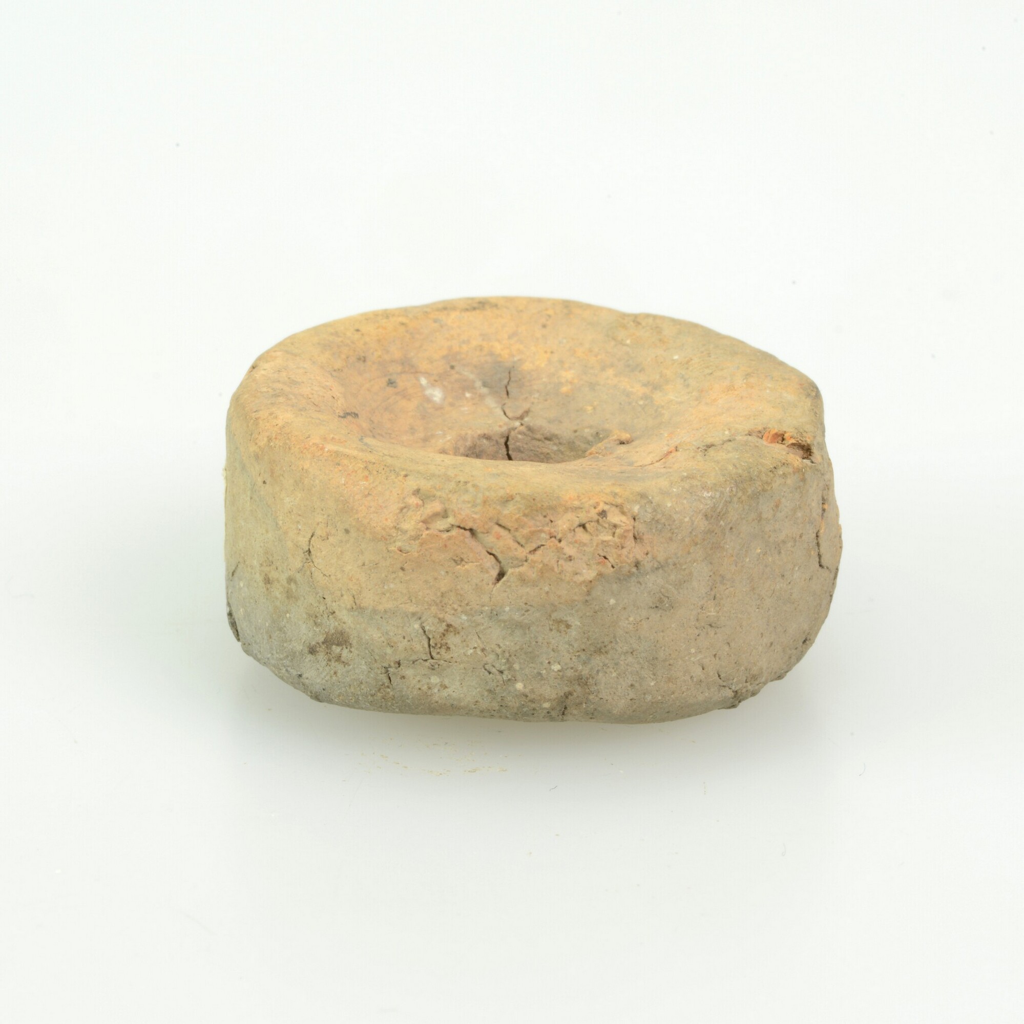 Spinsteen; inheems aardewerk (Fries); doorboord; cilindrisch; aan een zijde concaaf
