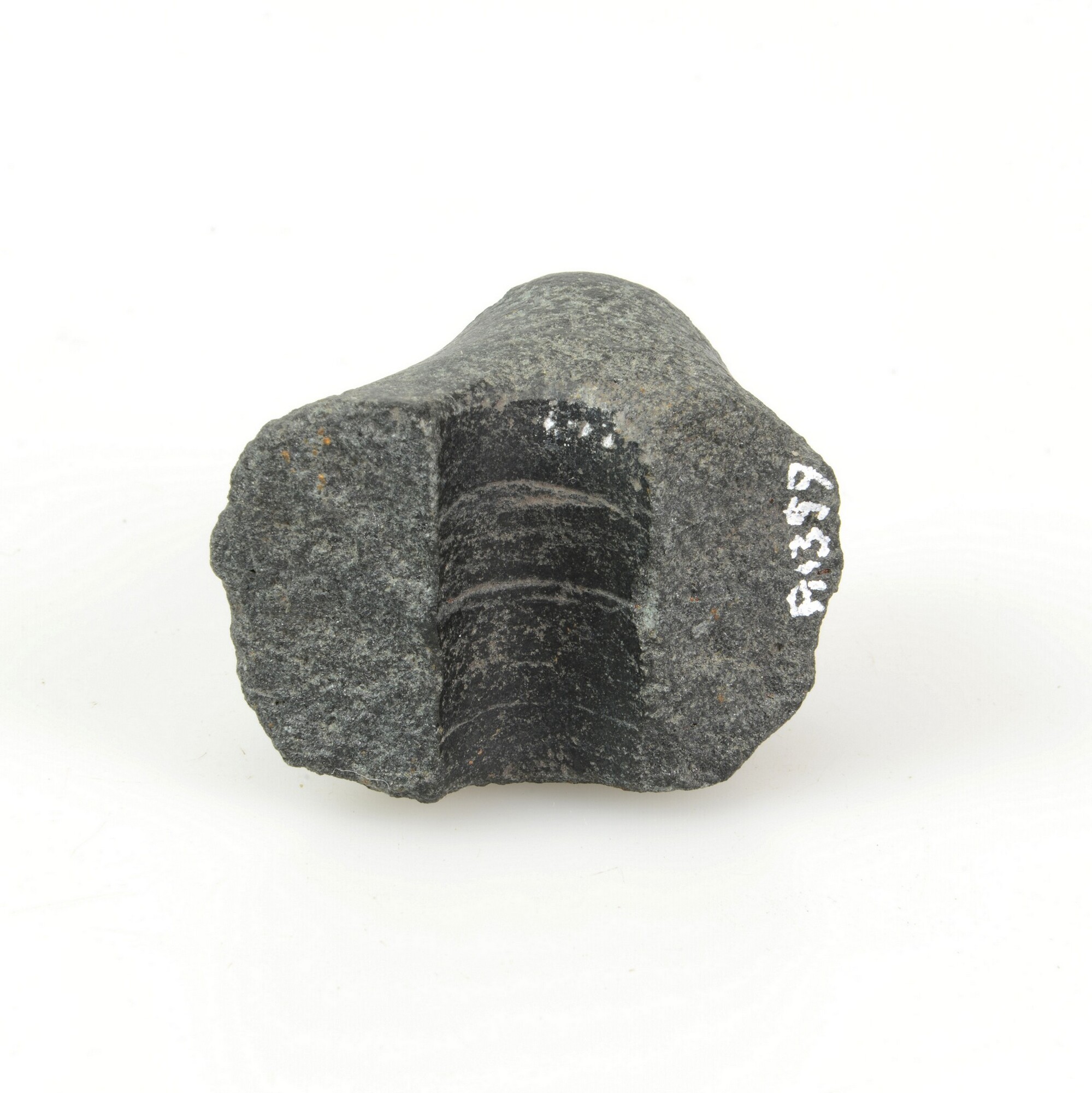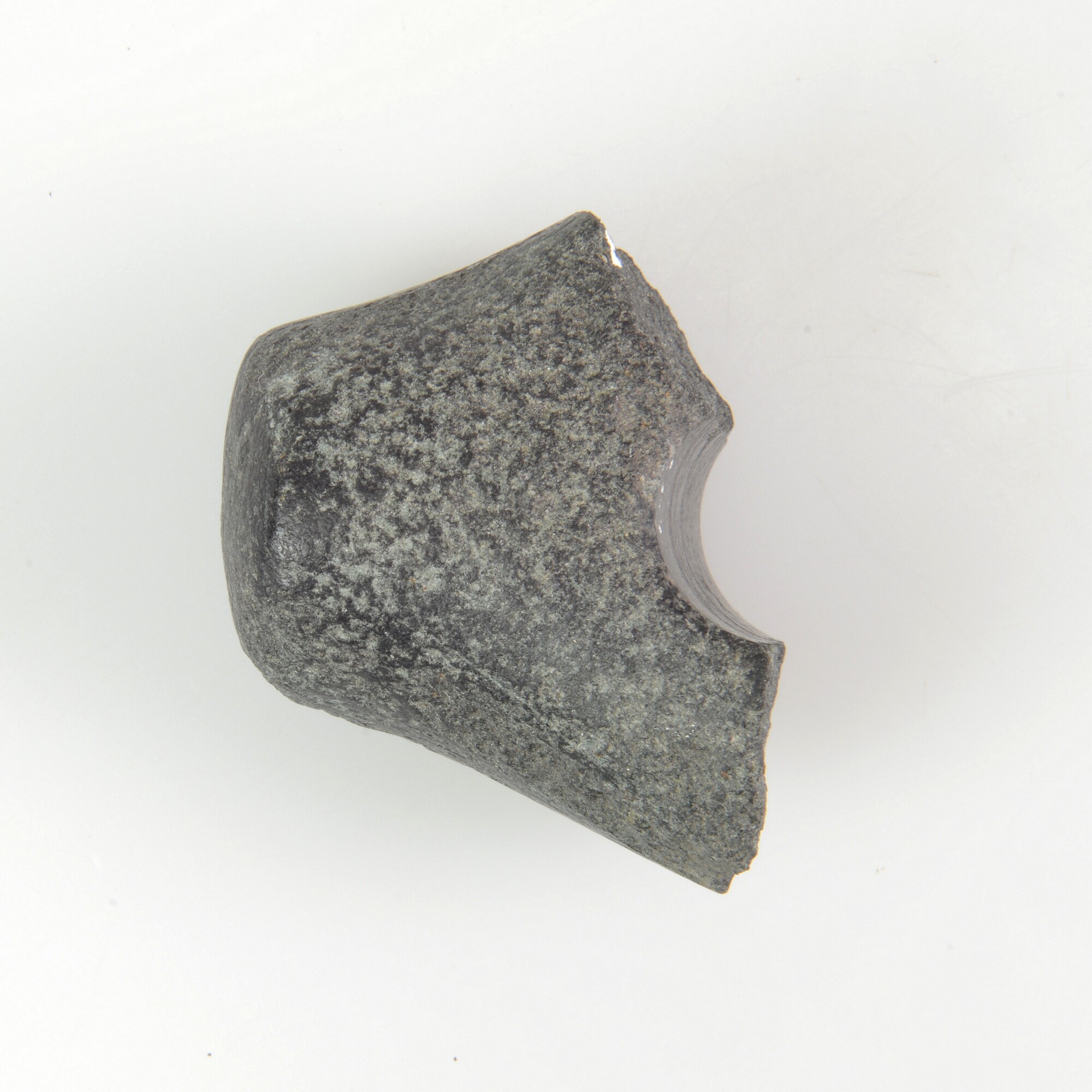 Hamerbijl; deel van het ronde steelgat; peckingsporen op zijden en vlakken die jonger zijn dan slijping; steelgat met draairillen; opzettelijk kapotgeslagen; vondstomstandigheden: A1359, vindplaats 11; akkervondst; datum: 9-10-2008
