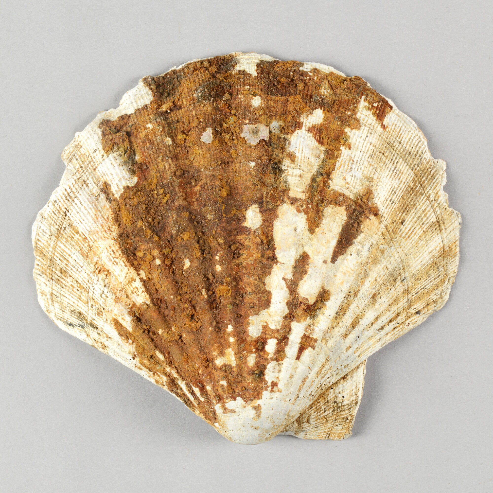 Grote mantel (Pecten maximus); ijzerroest; herkomst: West-Europa, o.a. Frankrijk en Portugal; vondstomstandigheden: Westerwijk