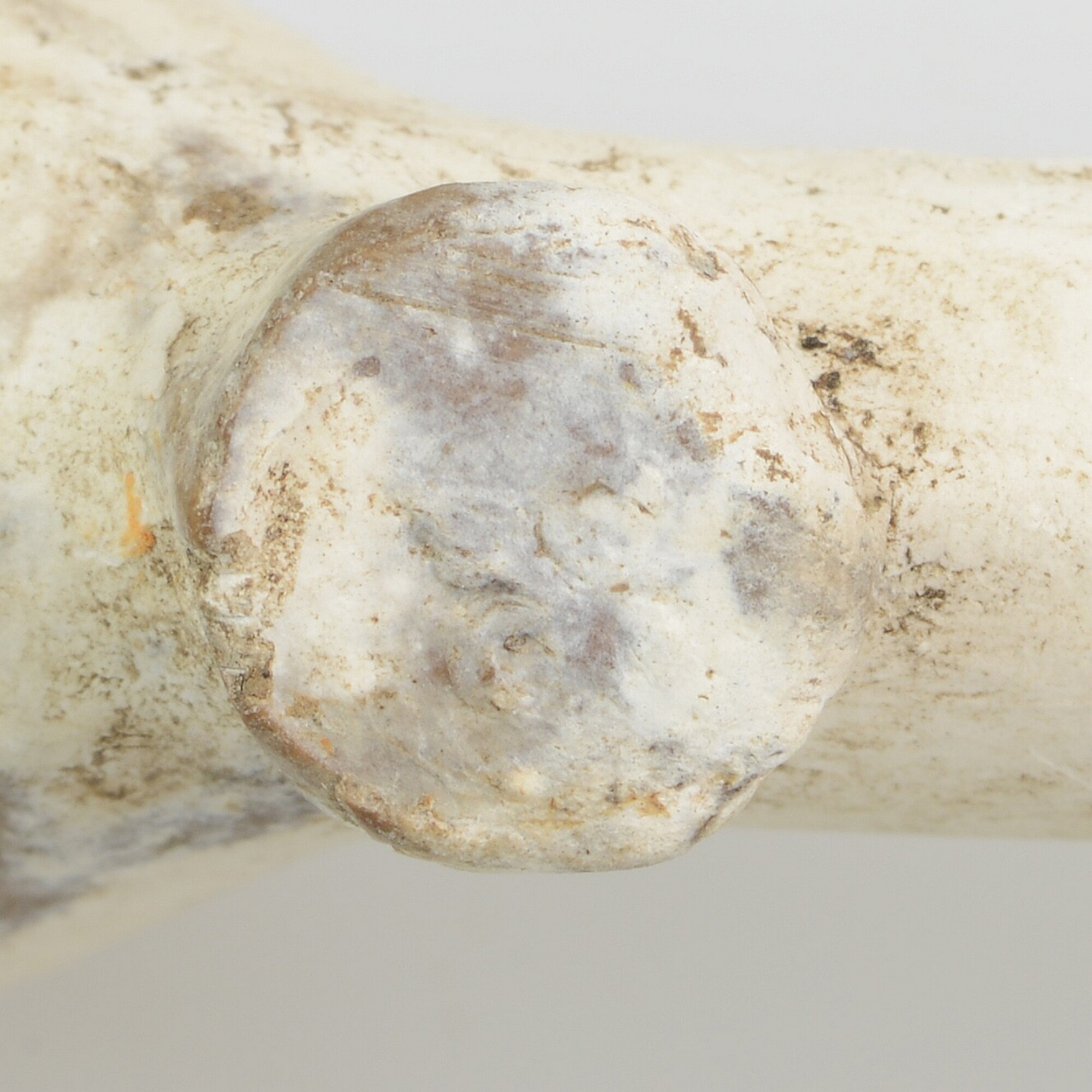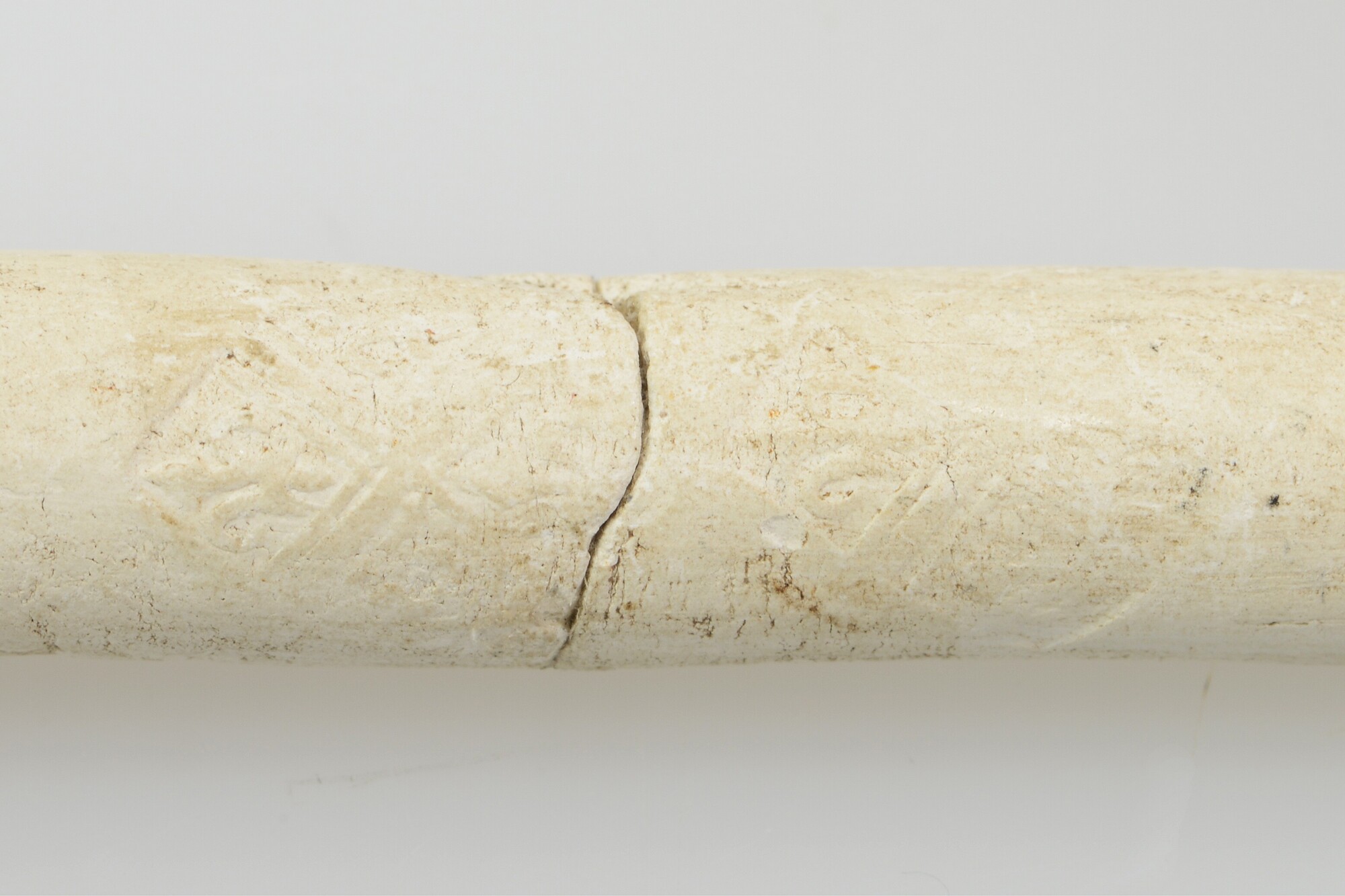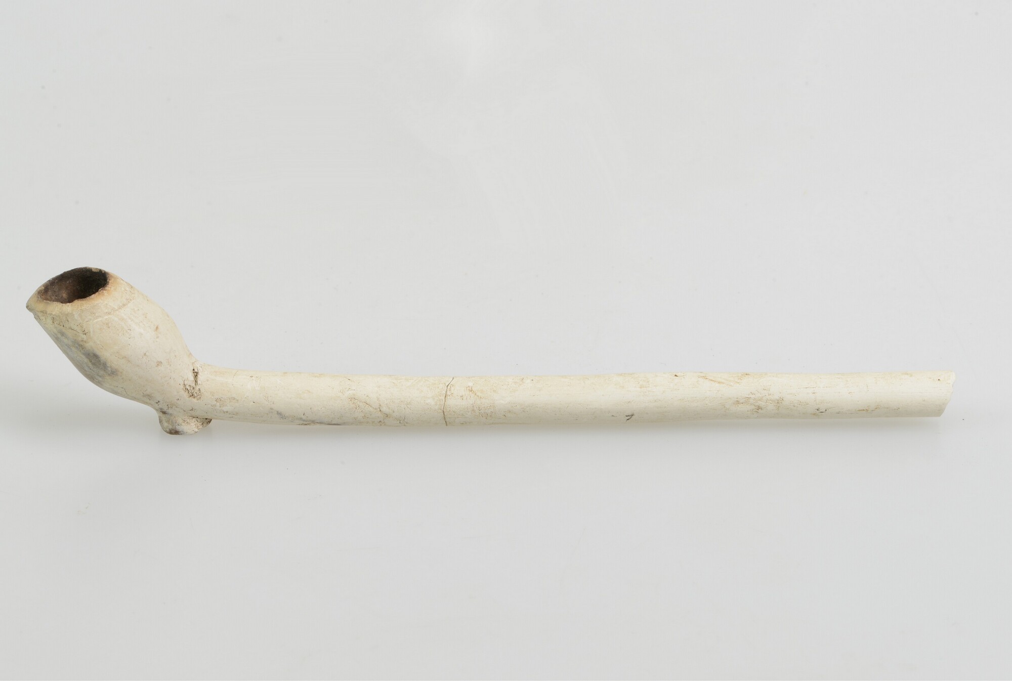 Pijp; dubbelconisch; ketel licht geglaasd; steel geglaasd; ketel gebotterd; gehele radering rondom ketelopening; hielmerk: lelie; steelversiering: Franse lelie in ruit, twee keer vier stuks; herkomst: West-Friesland