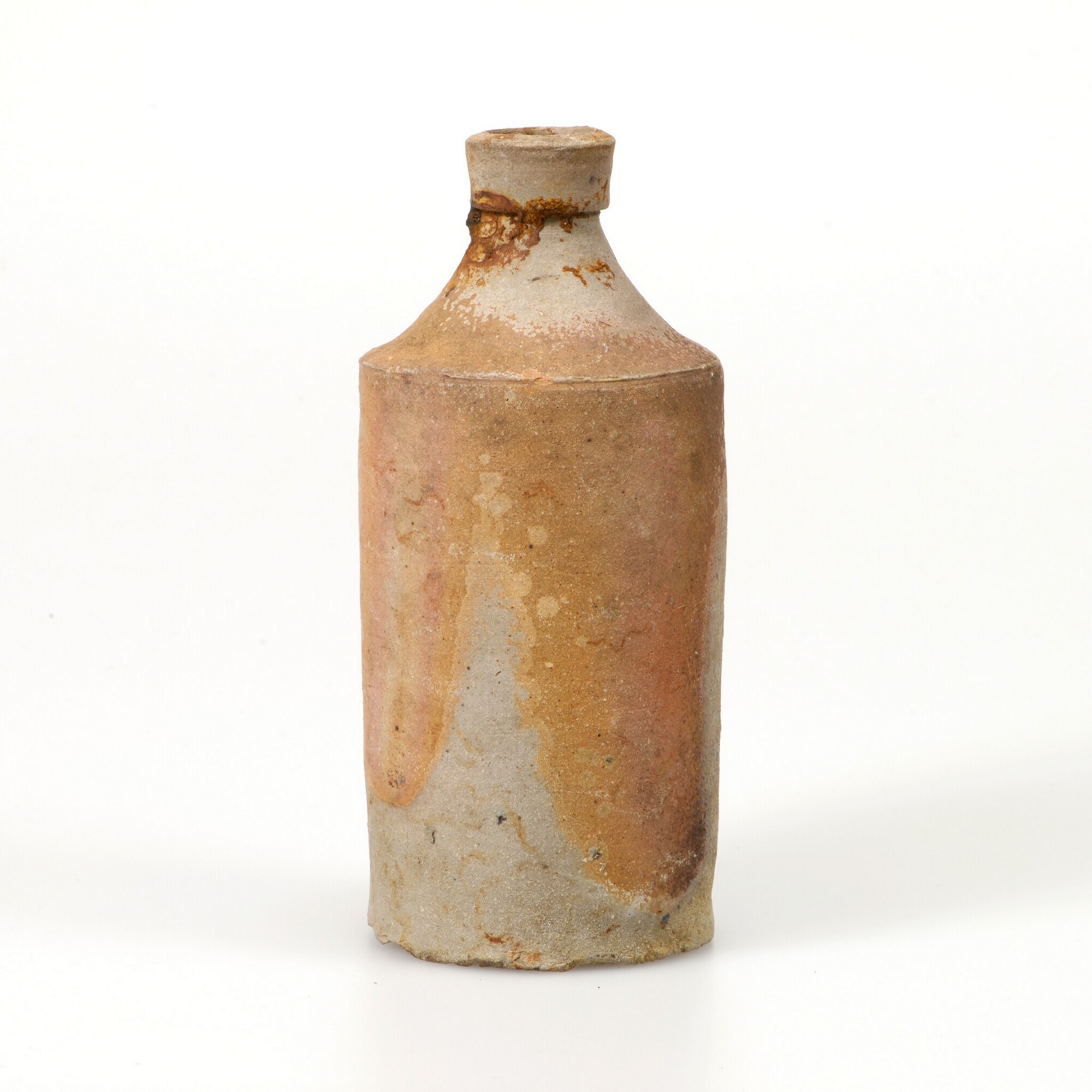 Fles; s2-fle-1; cilindrische fles met knik wand-schouder; convexe schouder/hals; manchetrand; standvlak