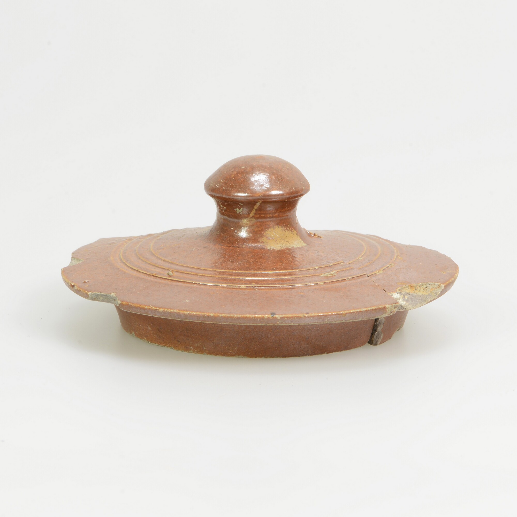 Deksel; s2-dek-1; plat deksel met knop; smalle sluitrand stoomgat; herkomst: Rijnland