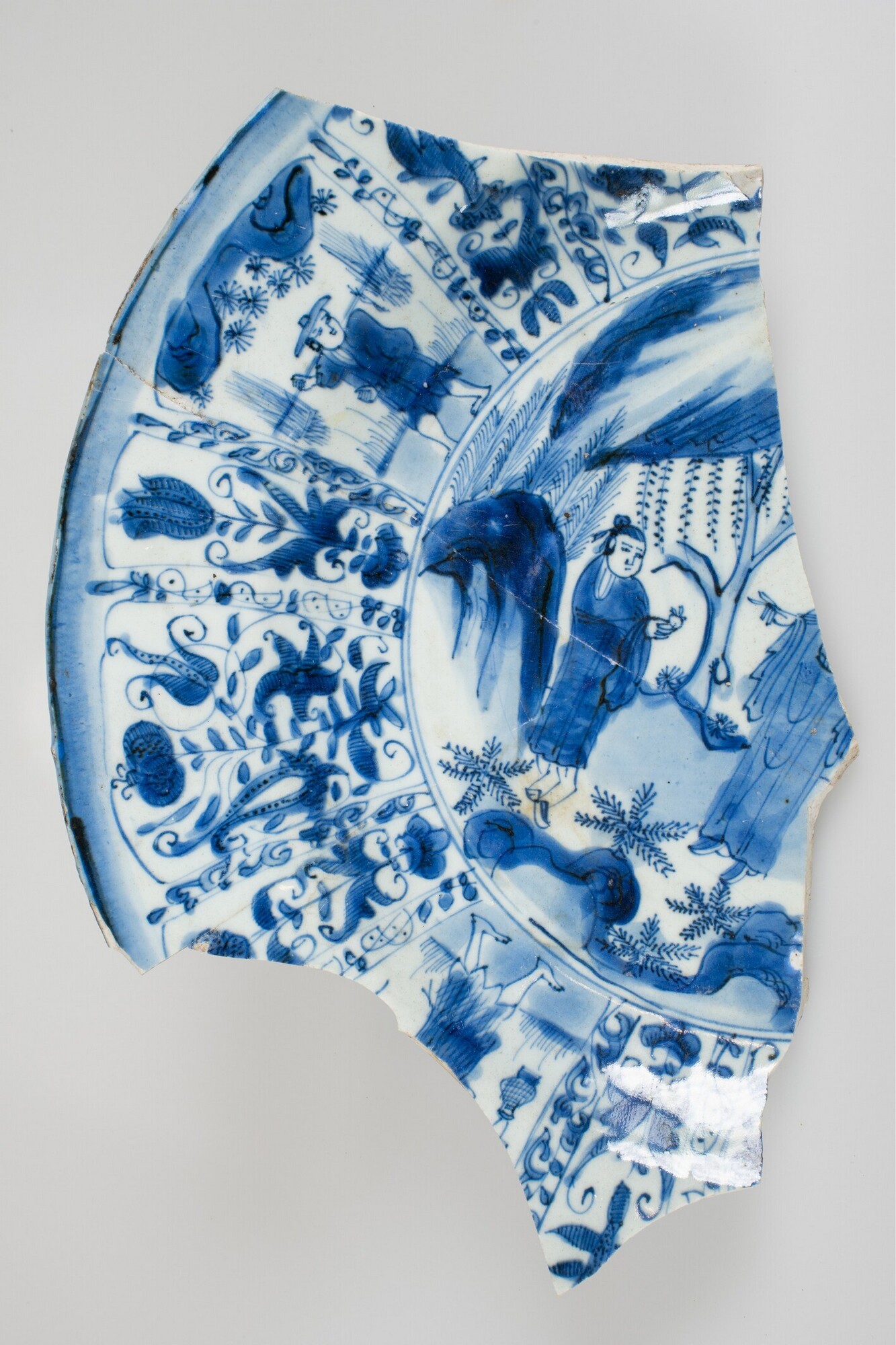 Bord; p-bor-4; Aziatisch porselein; laat kraakporselein; rand met 'Dutch flowers' (tulpen); fragment, compleet profiel; China Jingdezhen