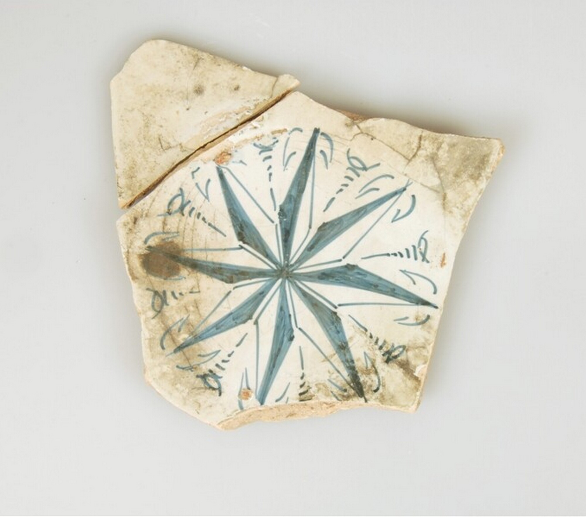 Bord; m-bor-0: majolica; decor: achtpuntige ster; fragment; West-Nederland