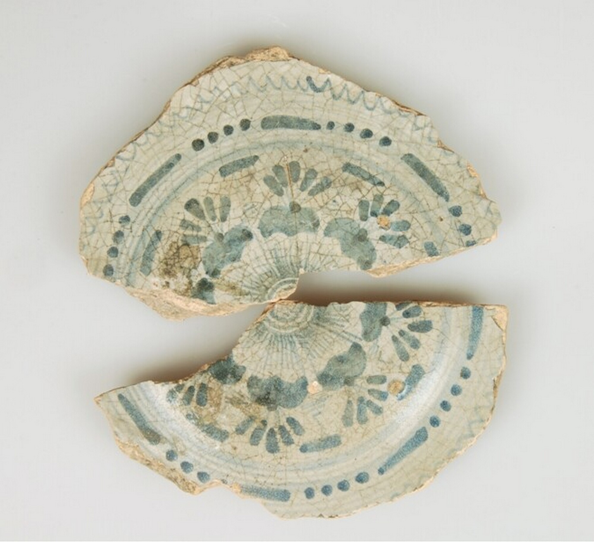 Bord; m-bor-0; majolica; decor: bloemrozet binnen bloemkrans; fragment; West-Nederland