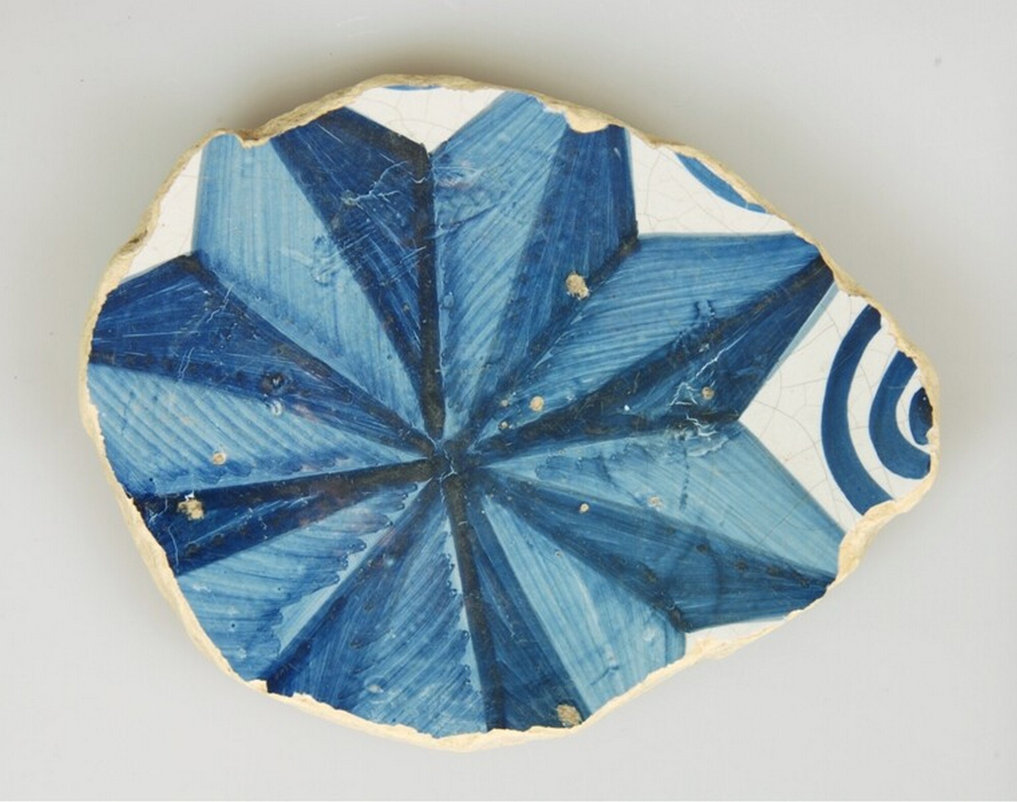 Bord; m-bor-0; majolica; decor: achtpuntige ster; fragment; Friesland?