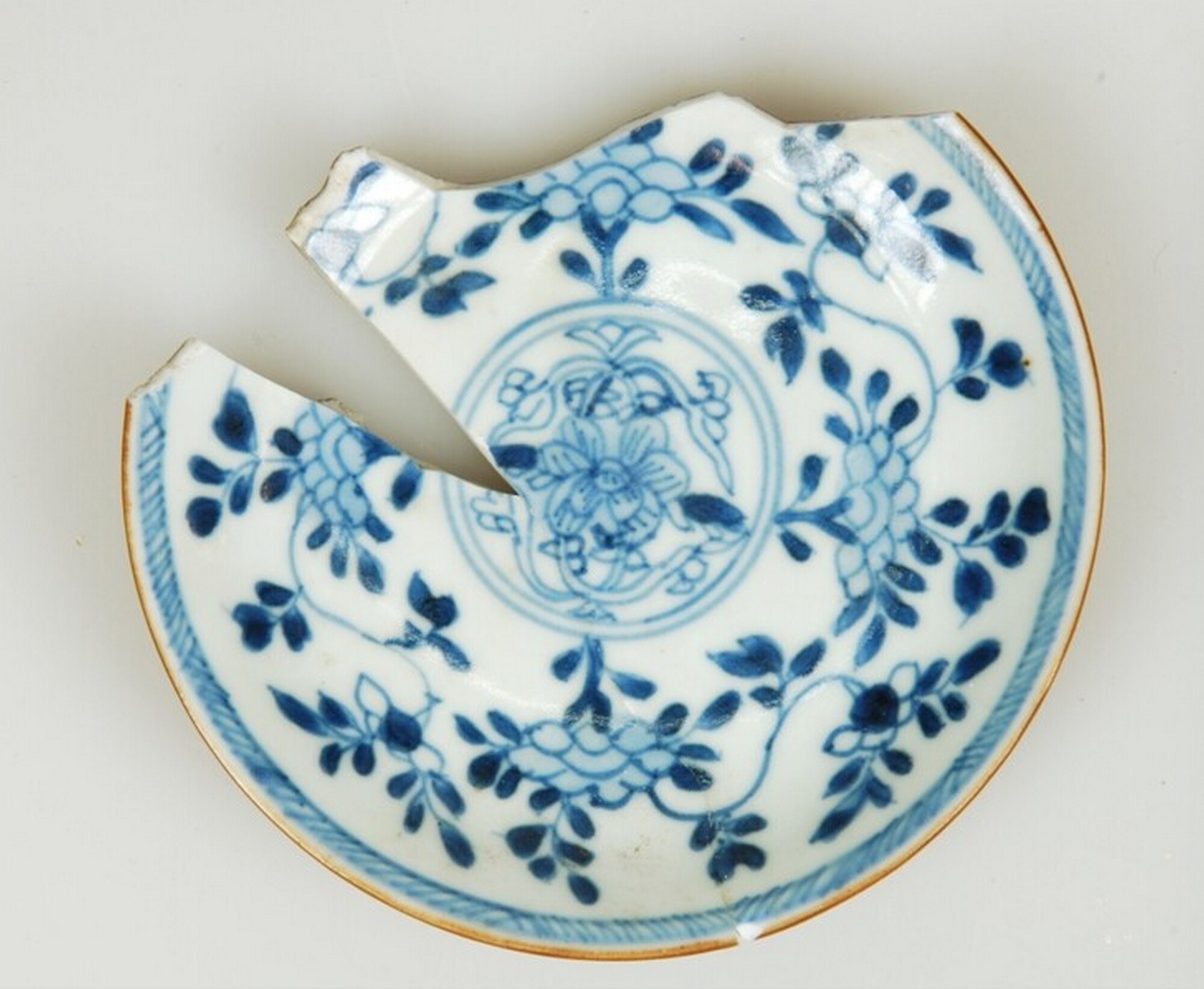 Bord, (kop en) schotel; p-bor-6; Aziatisch porselein; decor: floraal motief; fragment, compleet profiel; China, Jingdezhen