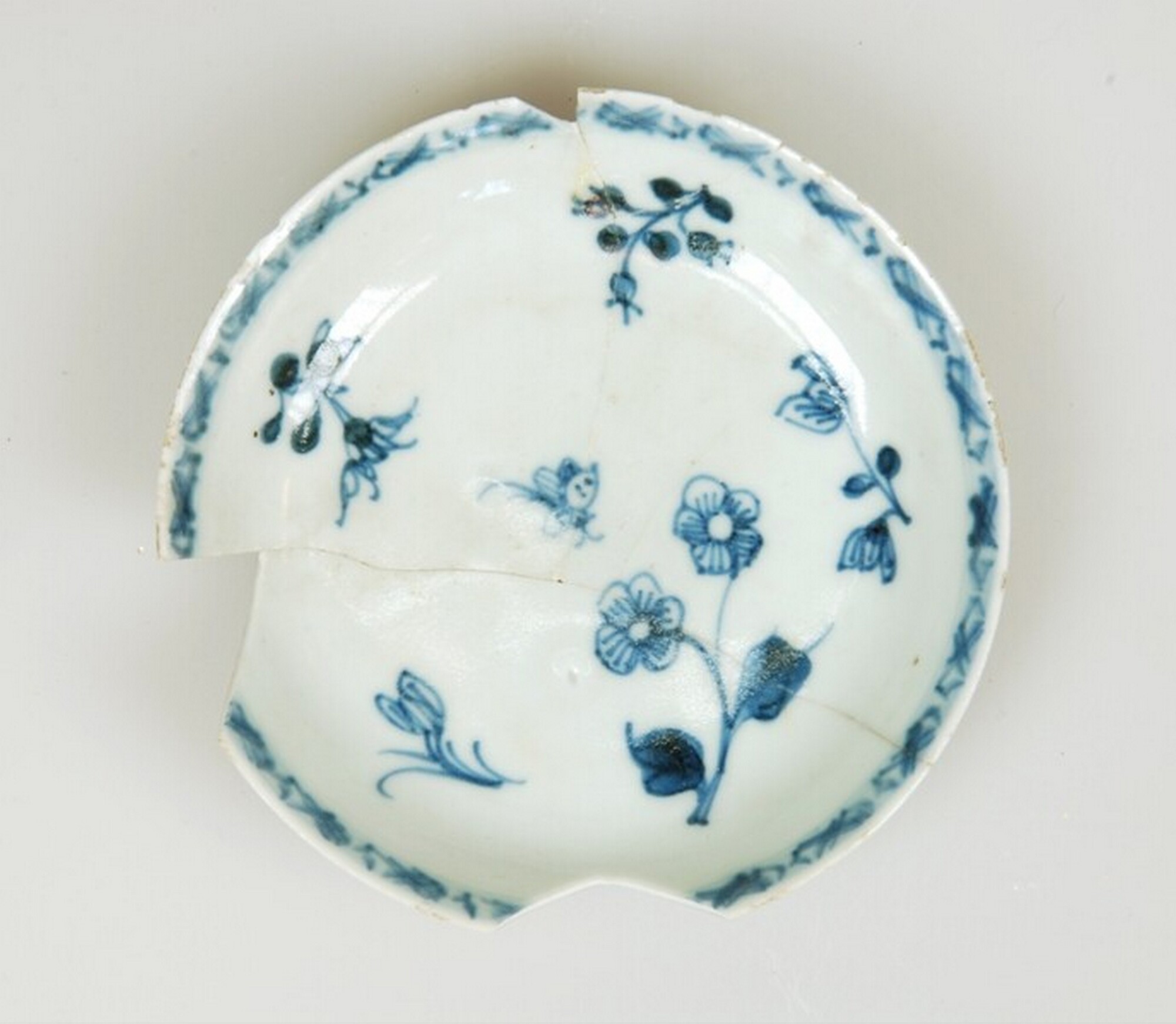 Bord, (kop en) schotel; p-bor-6; Aziatisch porselein; decor: floraal motief; fragment, compleet profiel; China, Jingdezhen