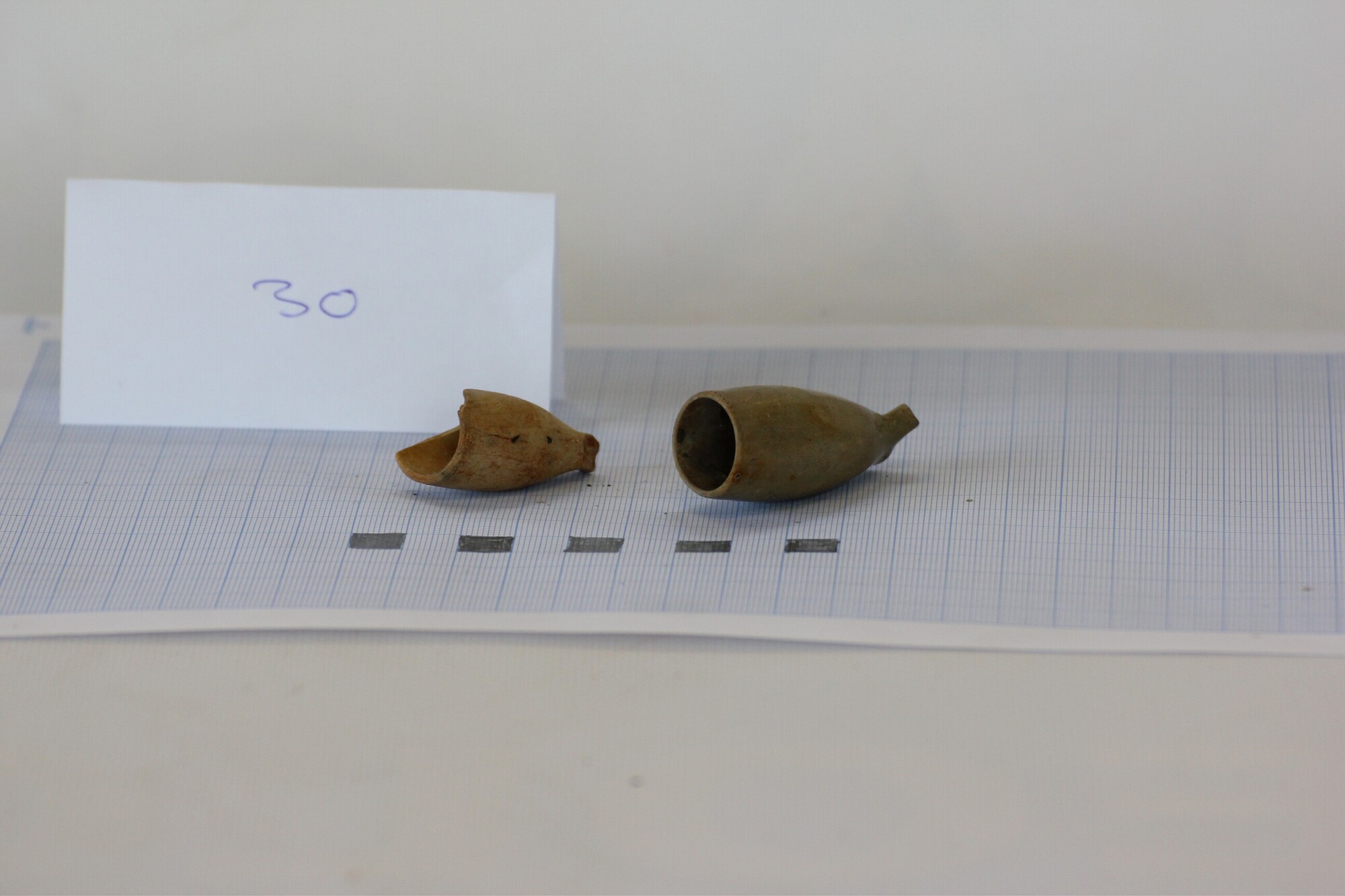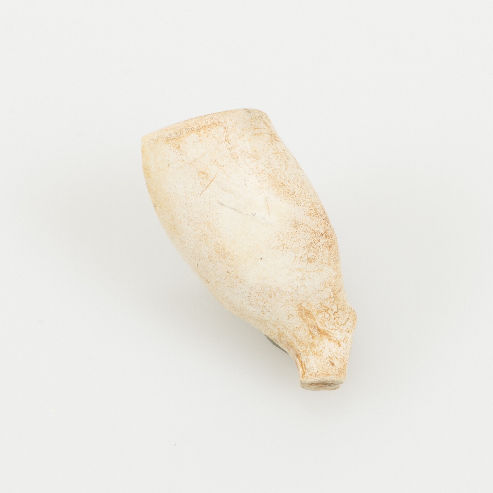 Pijpenkop; trechtervormig; ketelmerk: twee kronen onder een ster; geglaasd; gebotterd; gehele radering rondom ketelopening; herkomst: Gouda; vervaardiger: Pieter Pietersz van Asperen