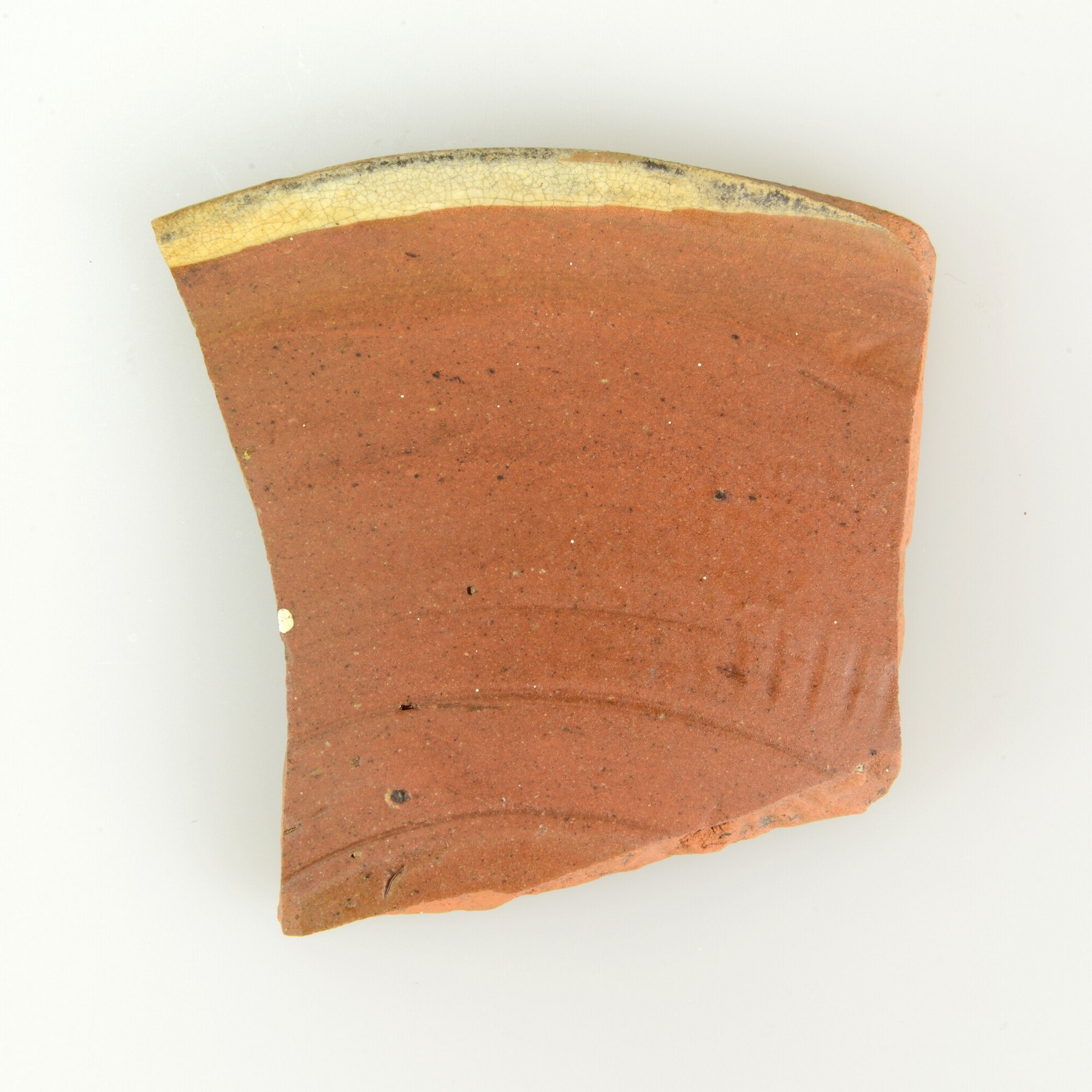 Bord; ms-bor; fragment van een bord met standvlak; Mediterraans slibaardewerk; loodglazuur; sgrafittodecoratie met groene (koperoxide) details; herkomst: Italië, Toscane