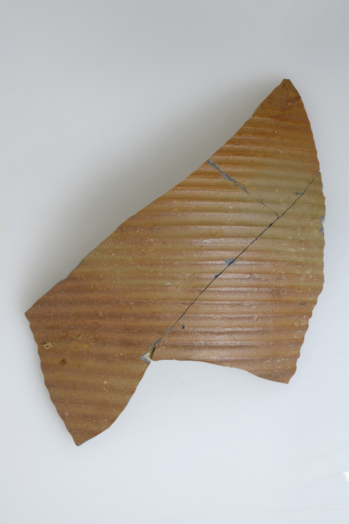 Kan; s2-kan-; steengoed met oppervlaktebehandeling; ijzerengobe, zoutglazuur; ribbels; herkomst: Duitsland, Duingen