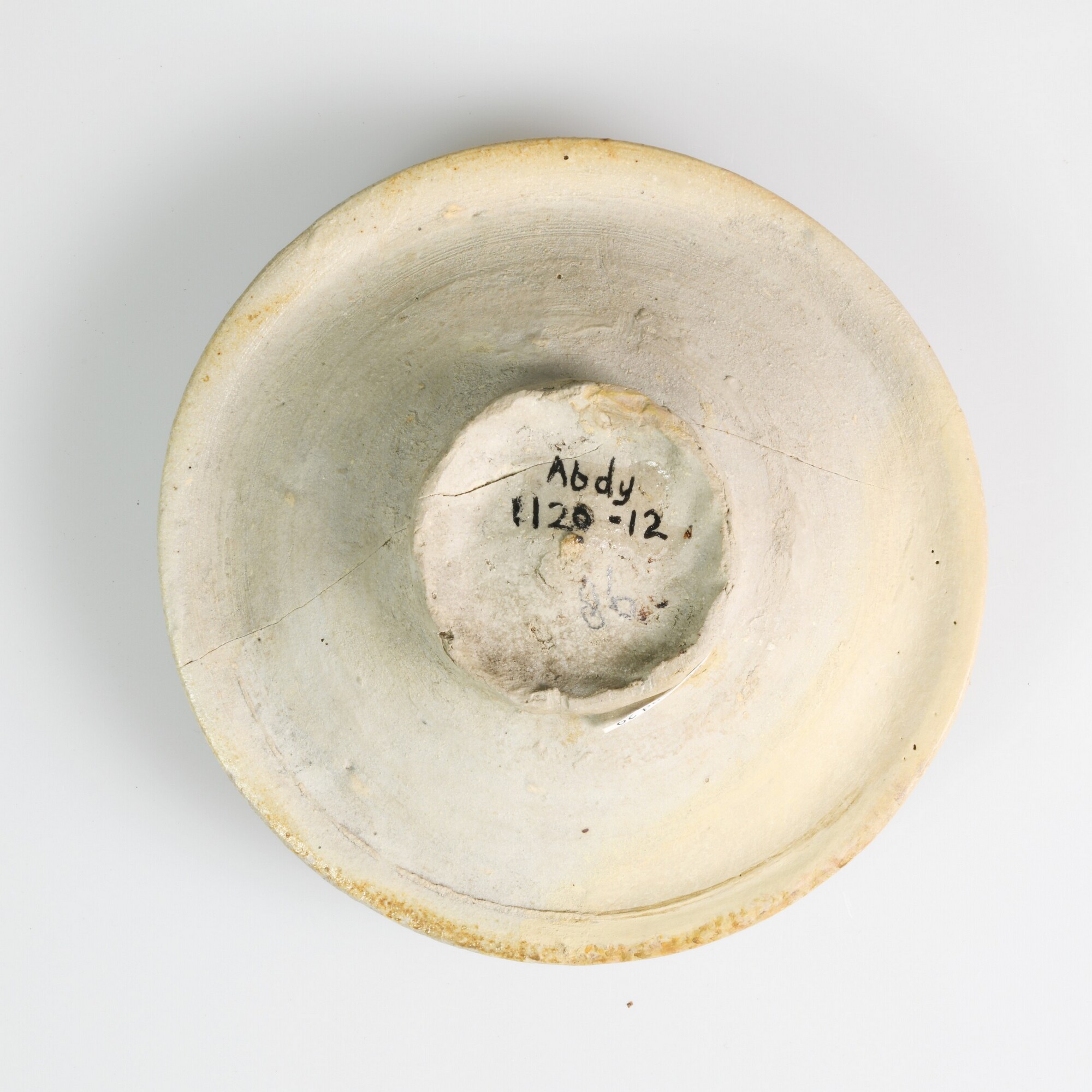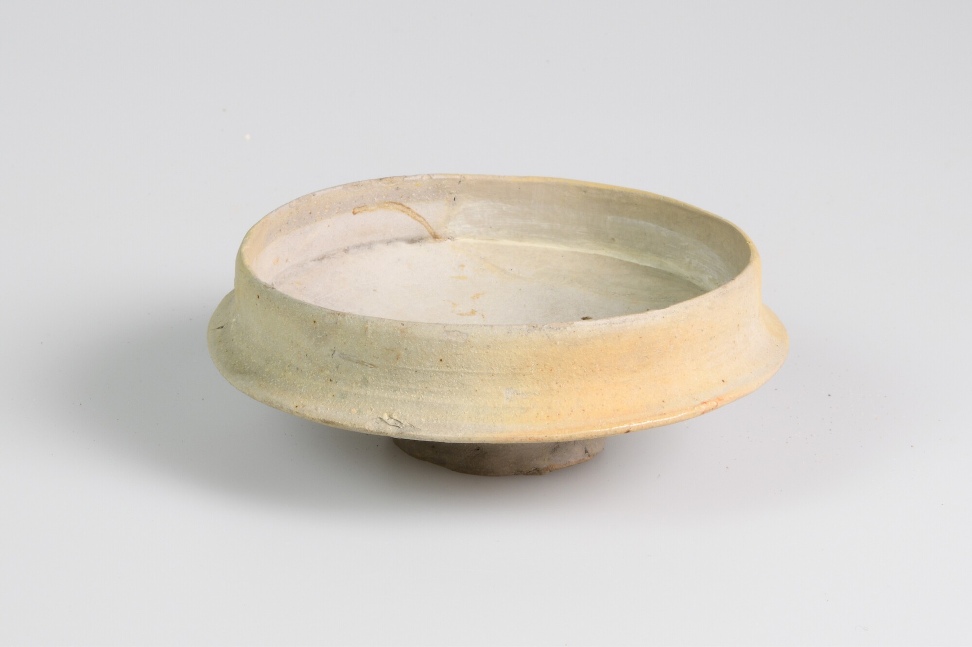 Drinkschaal; s1-dri-1; steengoed; standring geknepen; lichte oranjebruine blos; herkomst: Siegburg, Rijnland