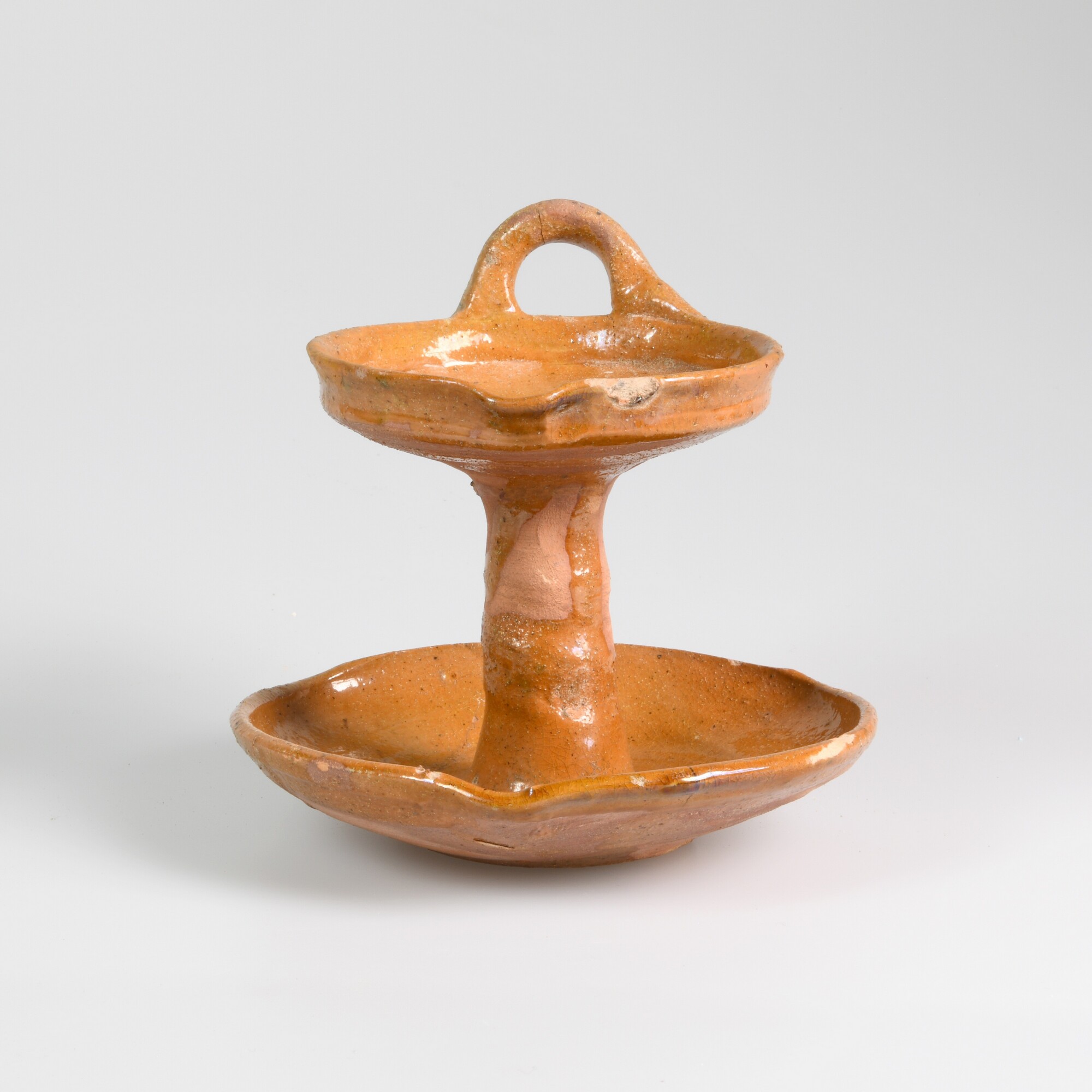 Olielamp; r-oli-2, roodbakkend; loodglazuur; standvlak; ophangoor
