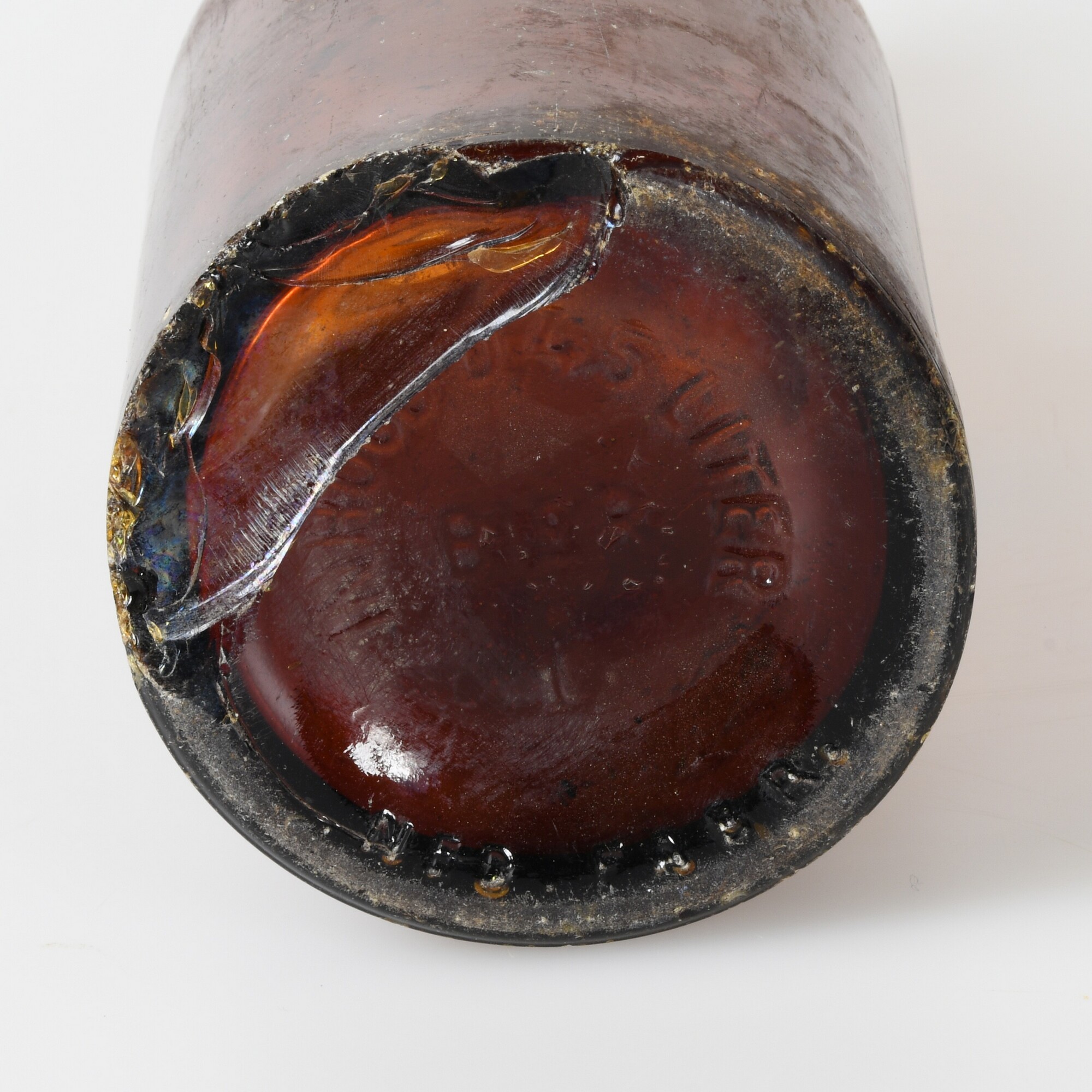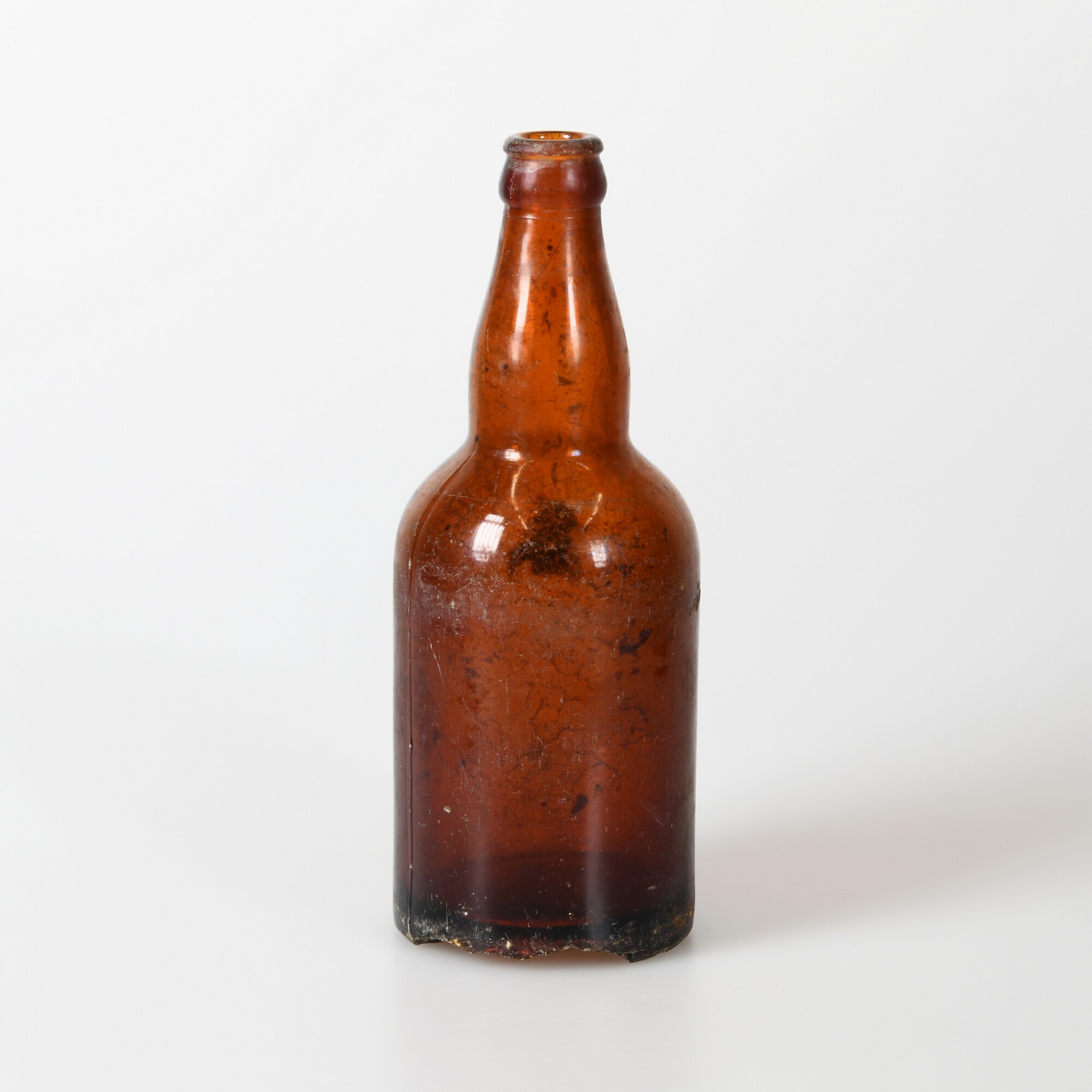 Fles; gl-fle-123; cillindrische bierfles met lichtconische hals met tweeledige verdikte lip, op standring; merkteken en inhoudsaanduiding op bodem: inhoud 0,45 liter, bier, Ned. Fabr.
