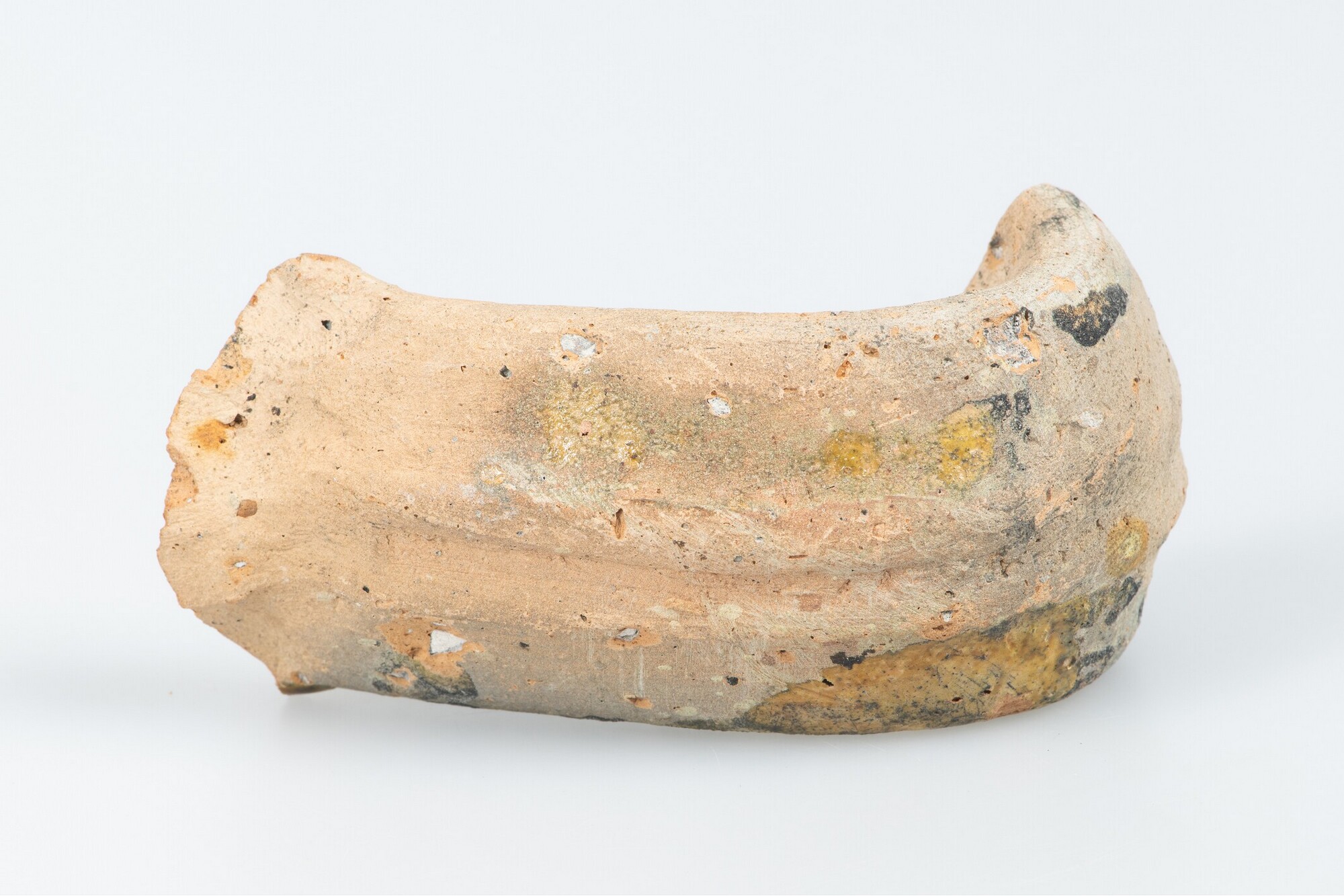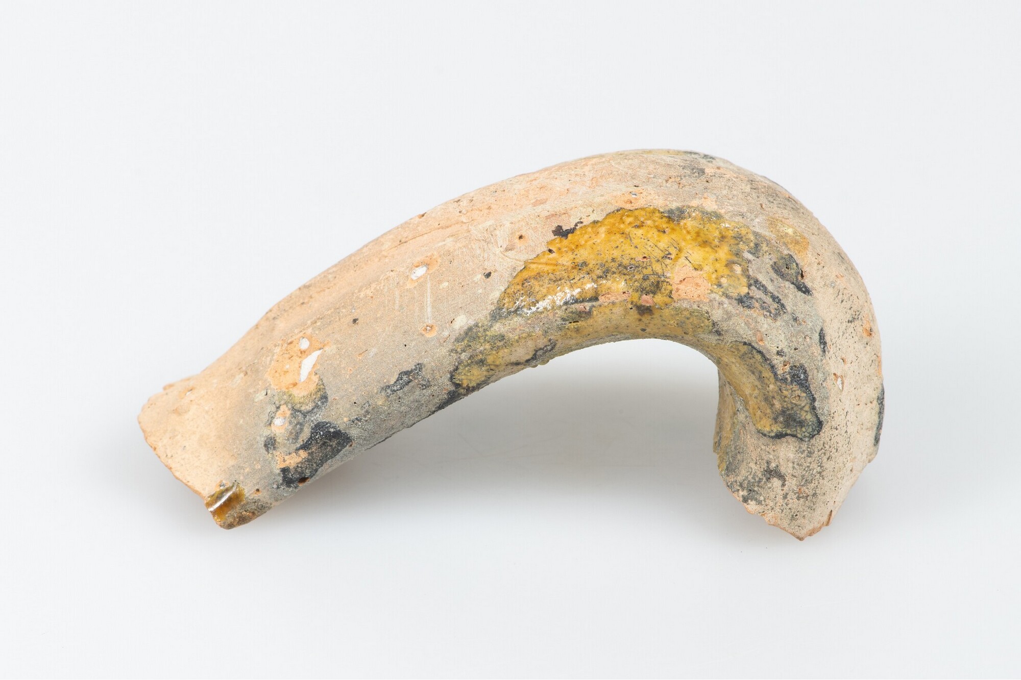 Amfoor (oorfragment); ib-amf-; bandoor; Iberisch aardewerk; loodglazuurvlekken; herkomst: vermoedelijk Spanje