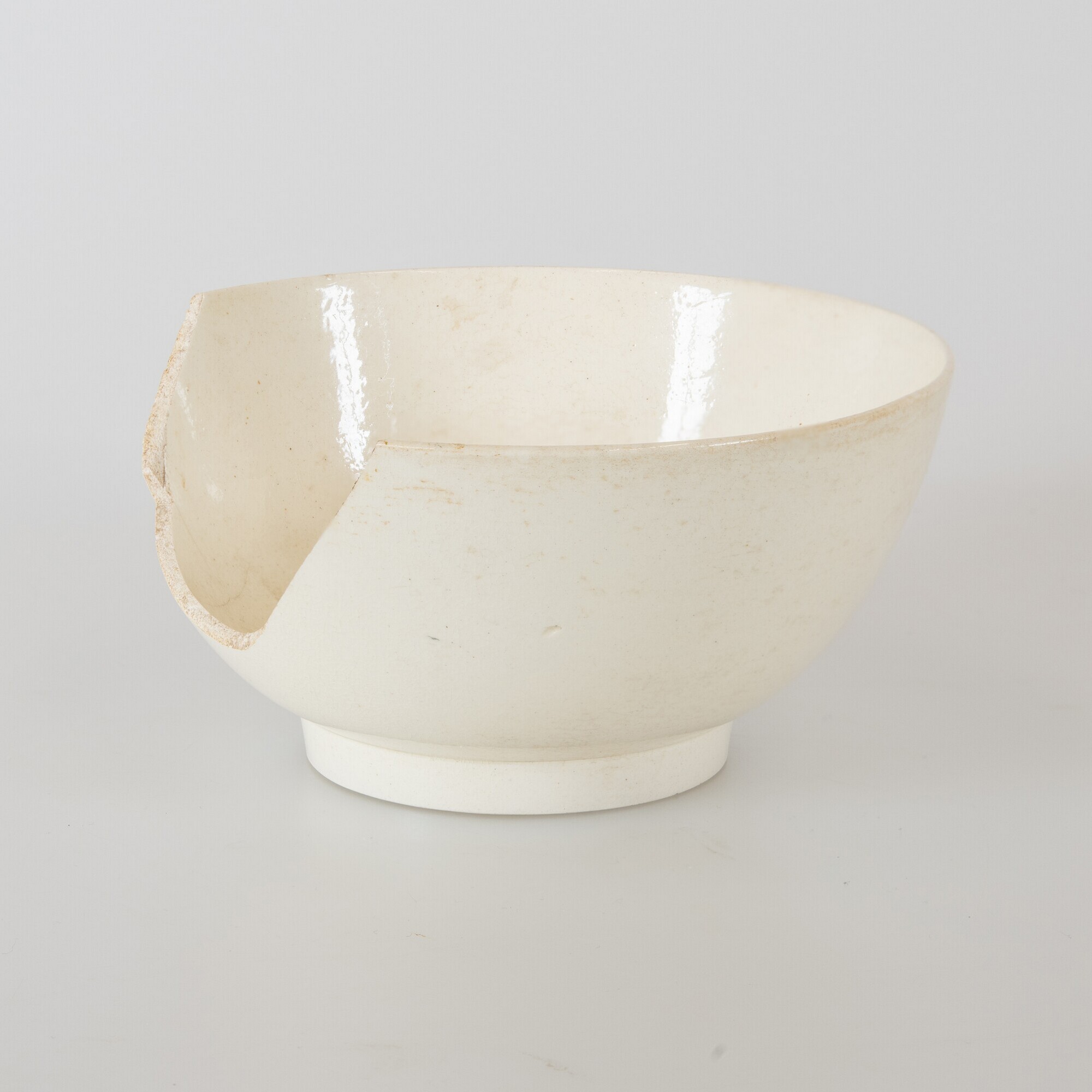 Kom; iw-kom-5; bolle kom met rechte rand, rechte standring; industrieel wit aardewerk (creamware); loodglazuur; herkomst: Engeland