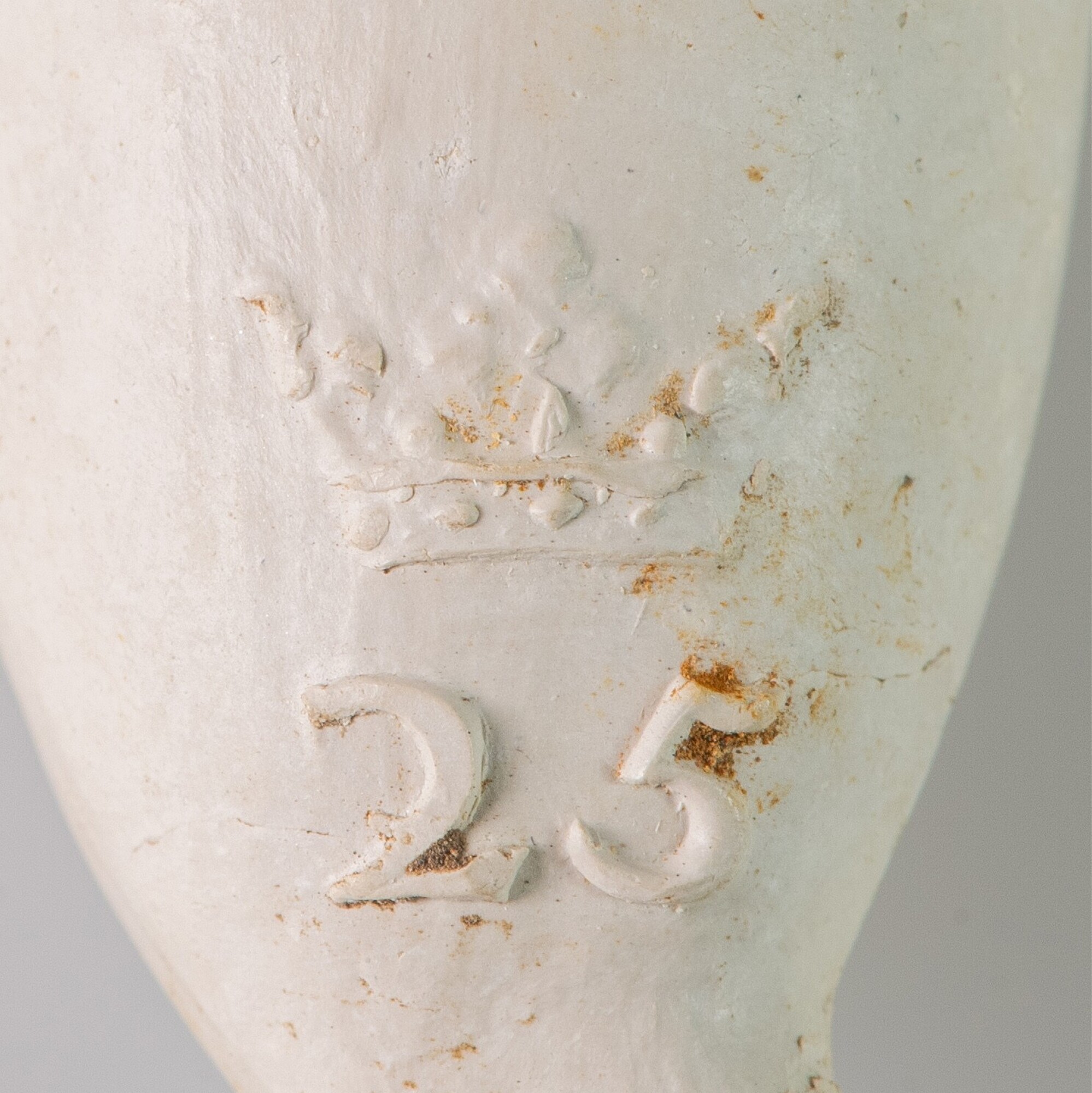 Pijp; ovoïde ketel; ongeglaasd; ketel gebotterd; radering voorzijde ketelopening; ketel inwendig beroet; zijmerk: 25 gekroond; herkomst: Gouda?; pijpenmaker: Hendrick Sijpesteijn?