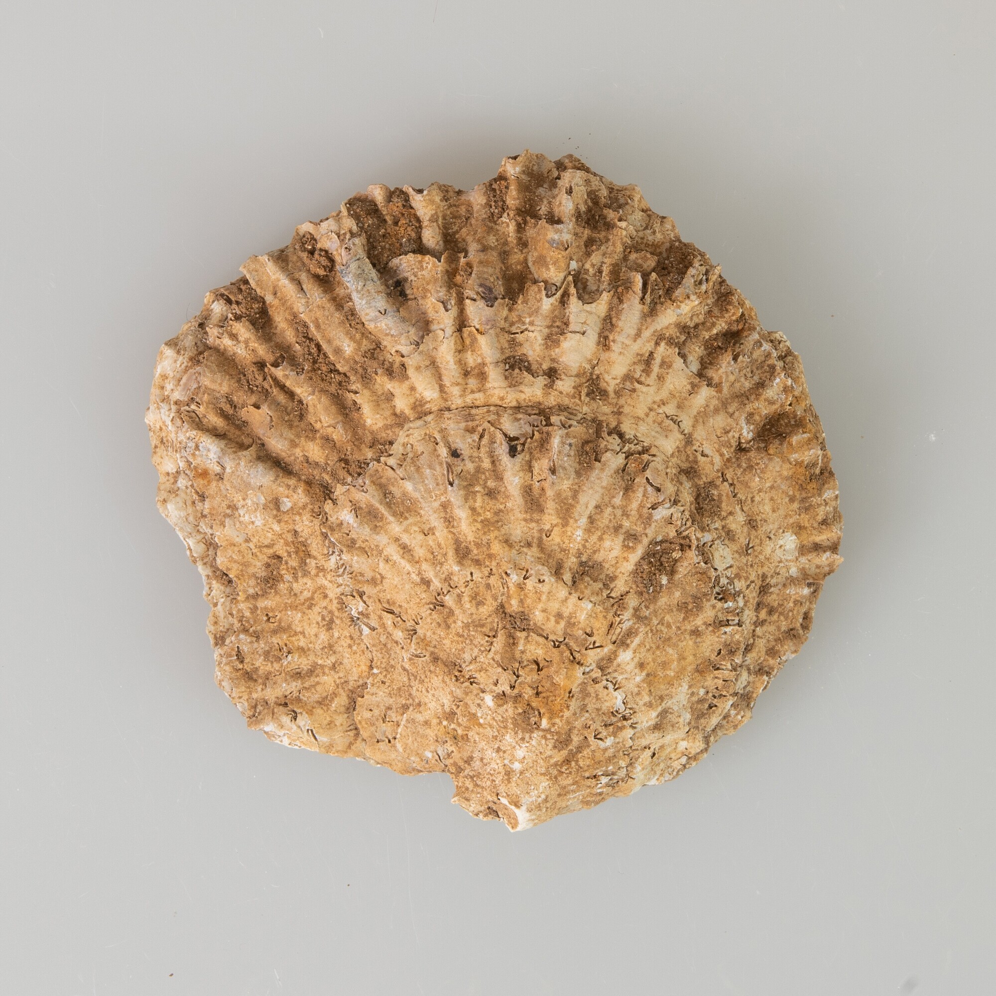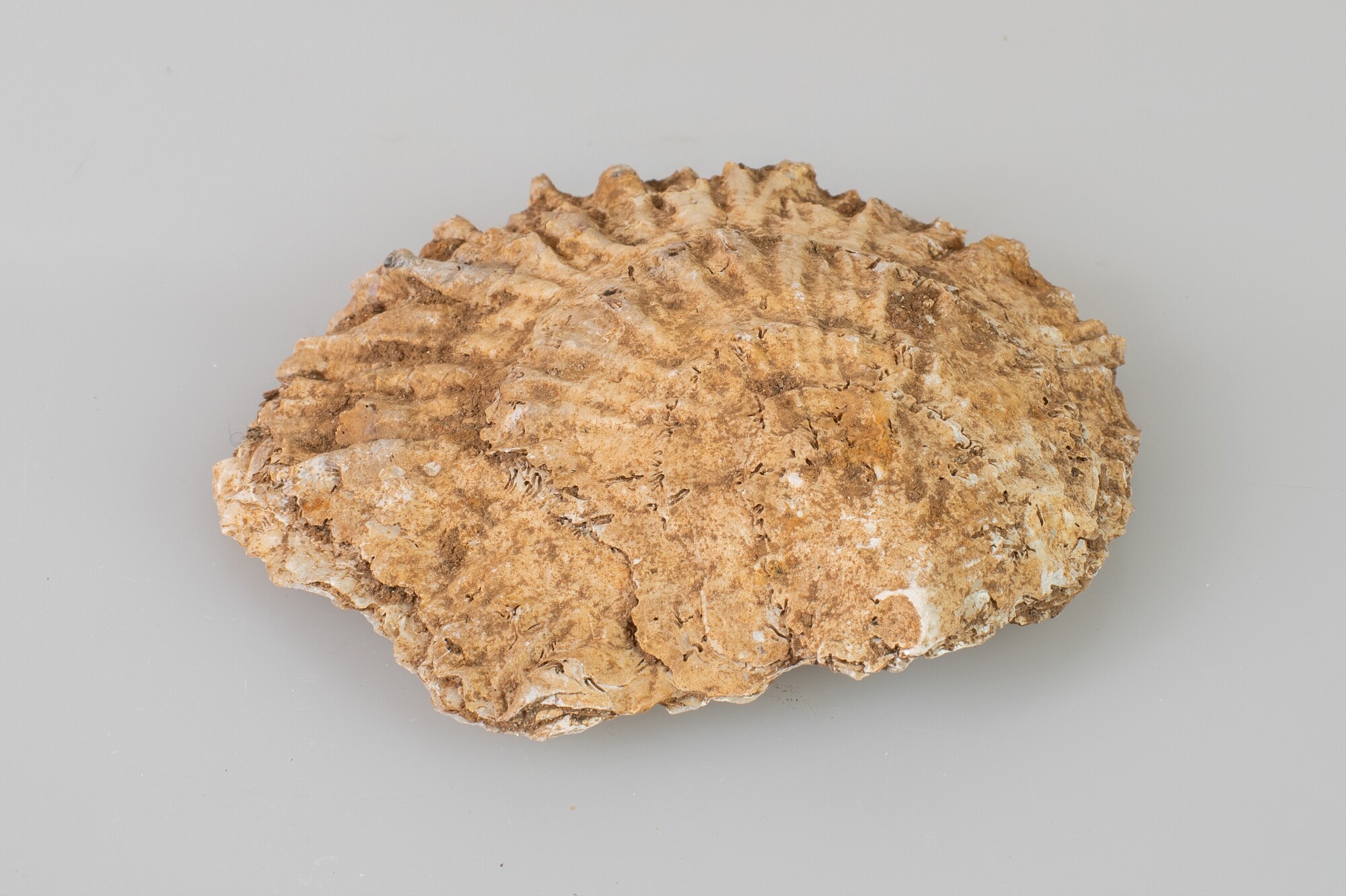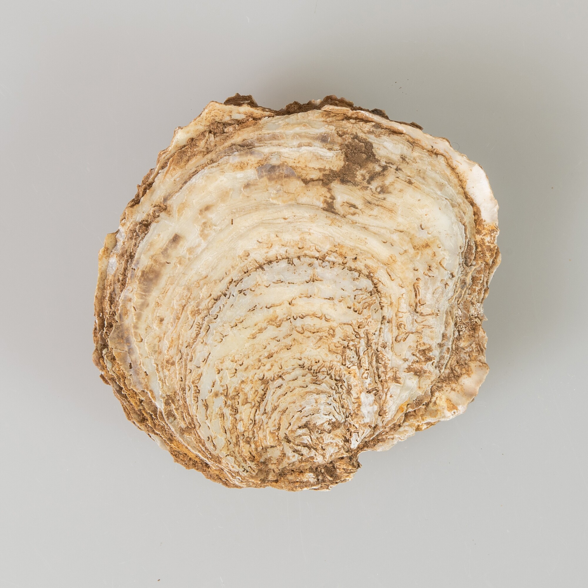 Oesterschelp (Ostrea edulis); compleet exemplaar met beide kleppen; herkomst: Noordzee