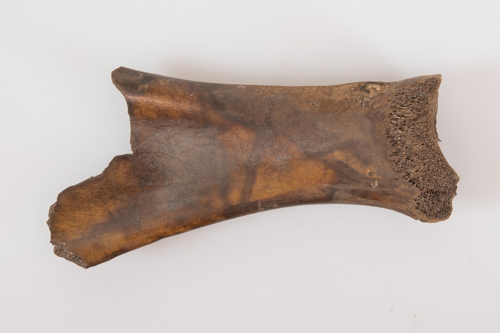 Schep/spade uit schouderblad van een rund (Bos taurus); patina en bewerkings- en slijtagesporen; gewicht: 133 gram