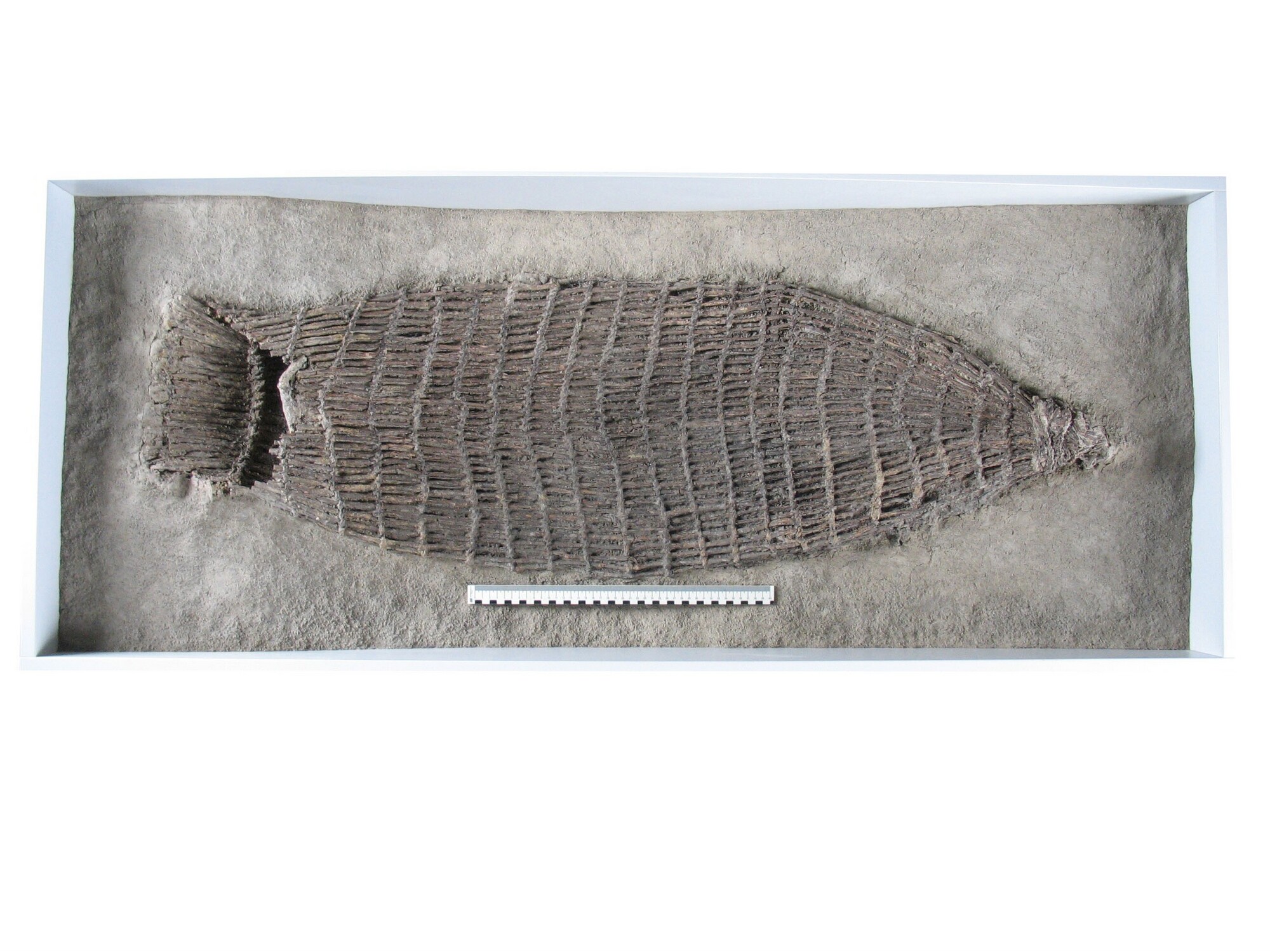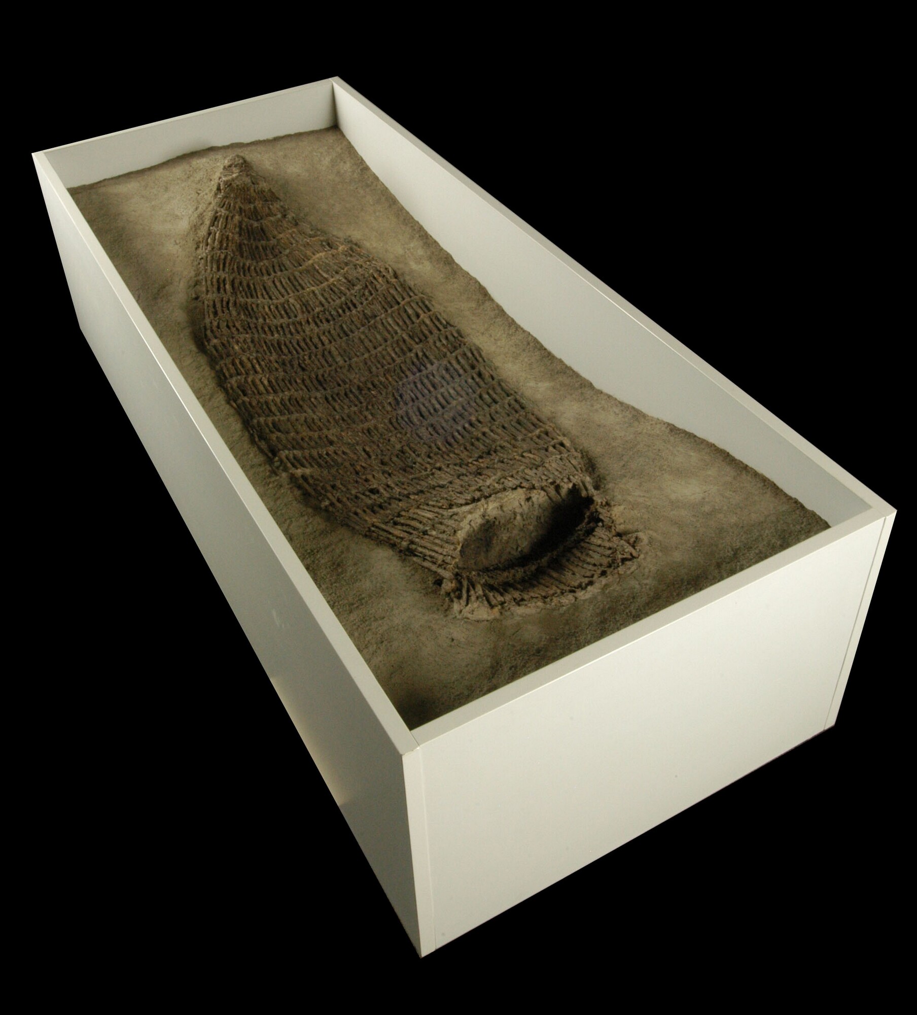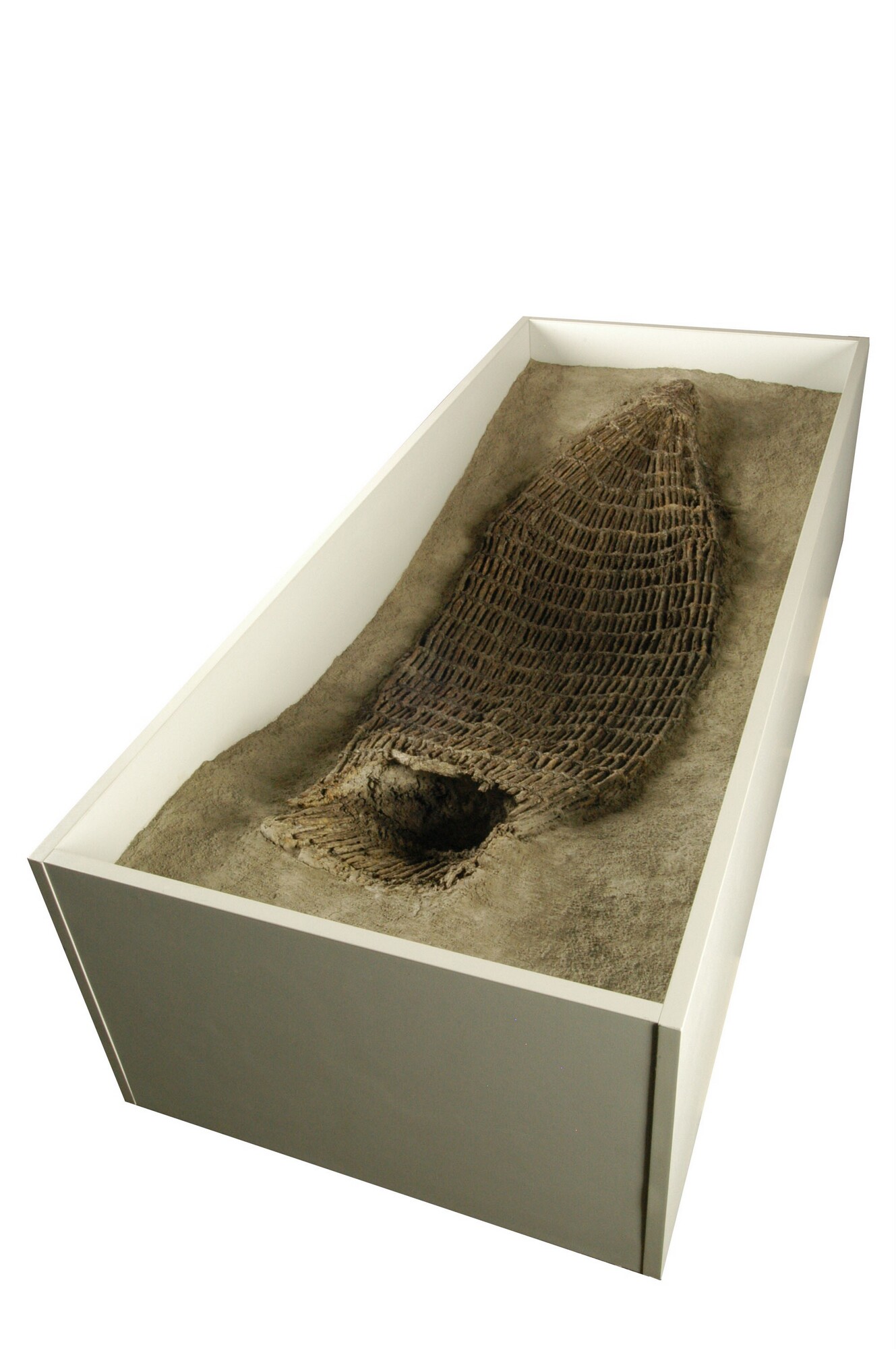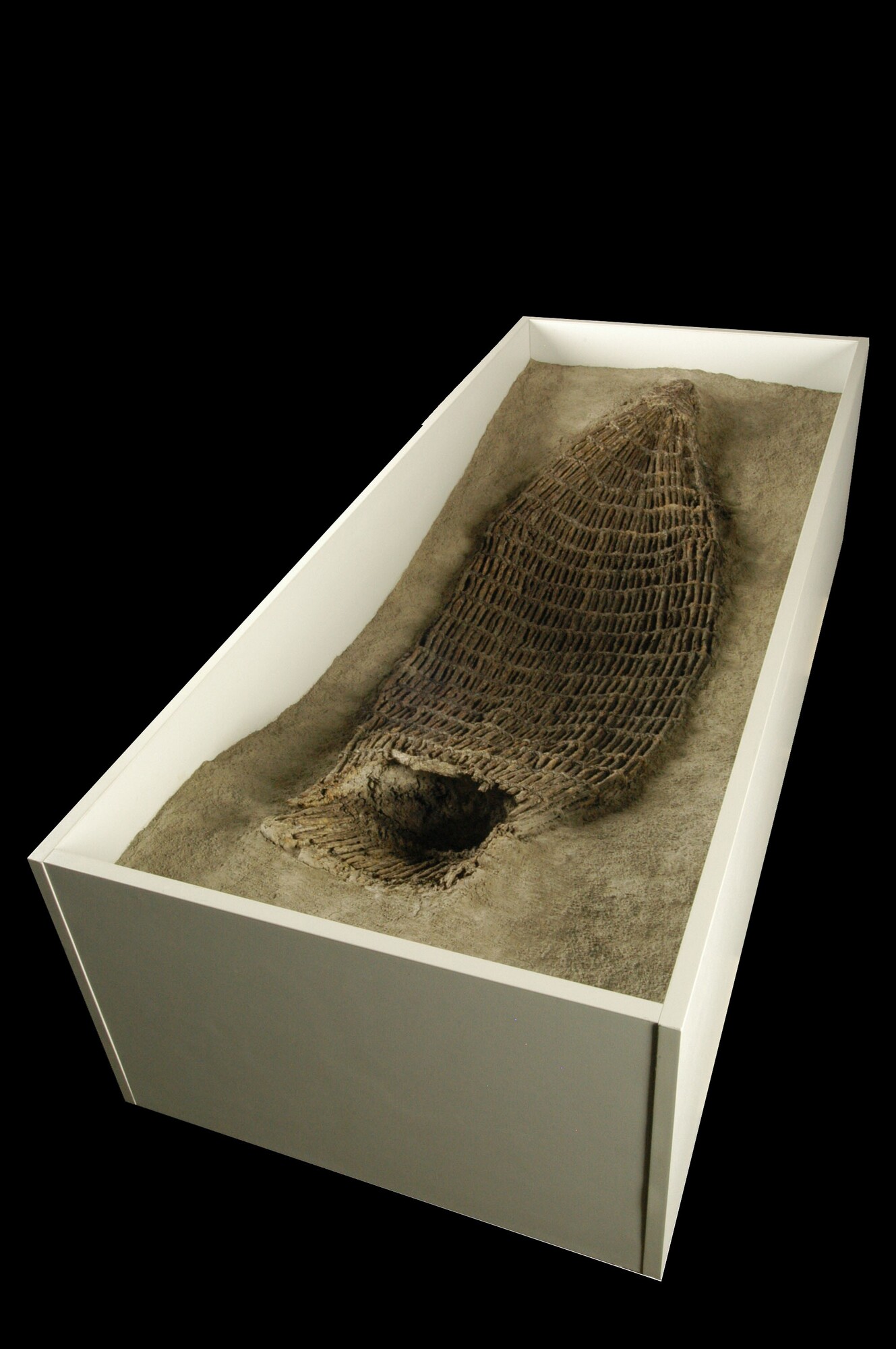 Fuik; zonder inkeling met windsel van touw. De fuik is gevlochten volgens de open-vlechtwerktechniek (Zwirnbindung), bestaande uit staken waar omheen het touw is gevlochten. Voor de staken zijn tweejarige, ongeschilde wilgentenen gebrukt met een diameter tussen 0,2 tot 1,1 cm. Het touw is van getwijnd boombast.
