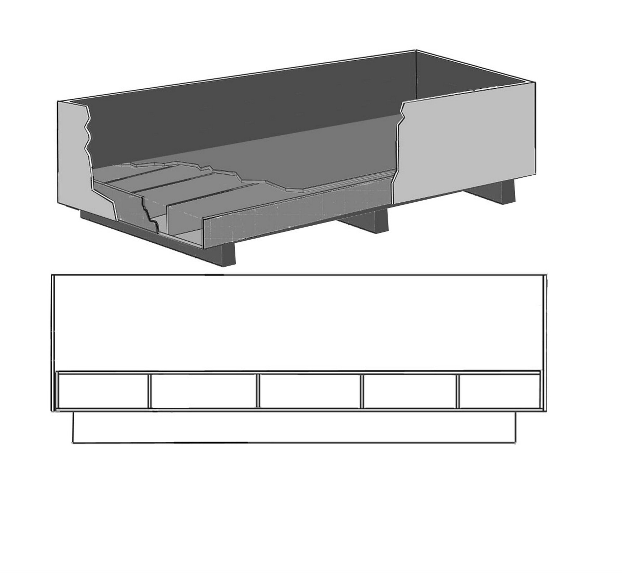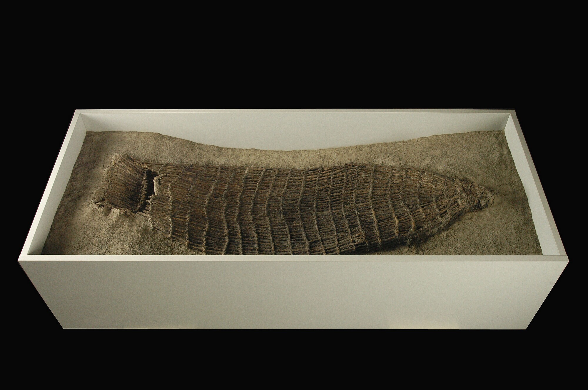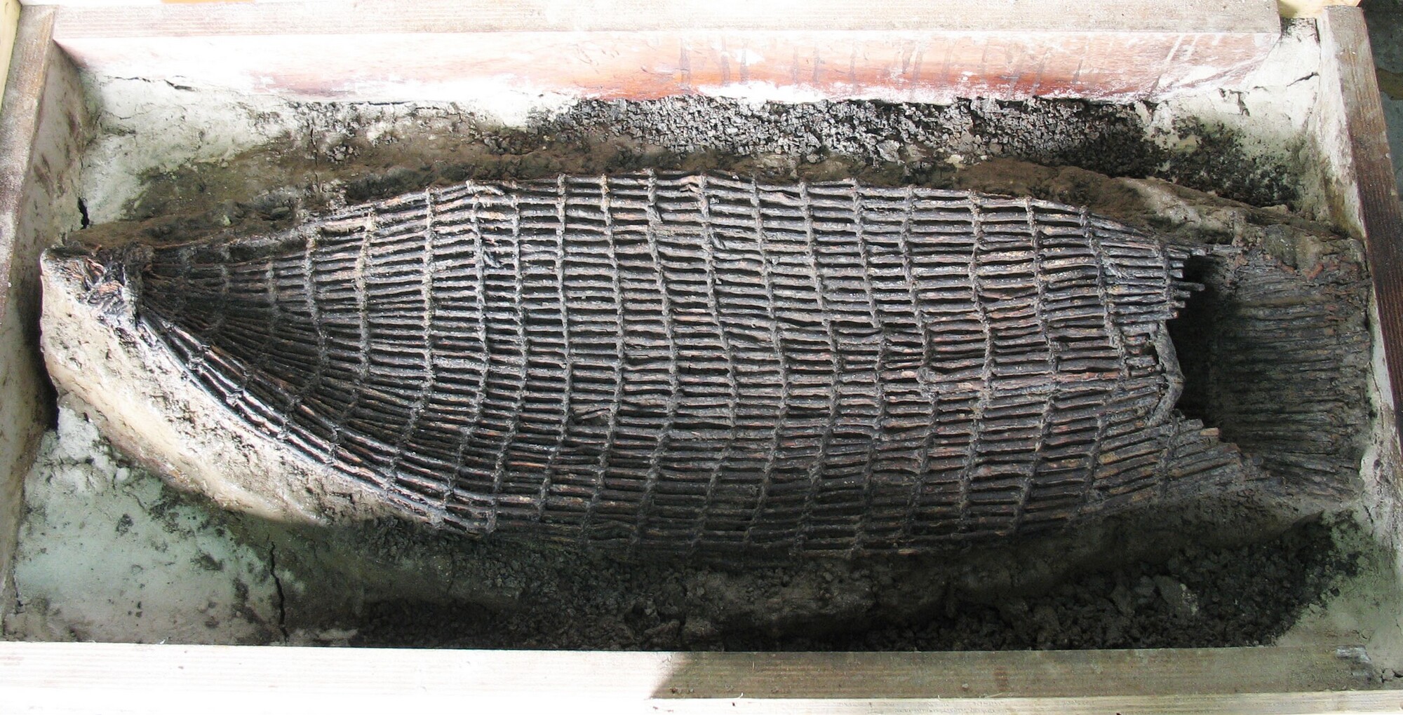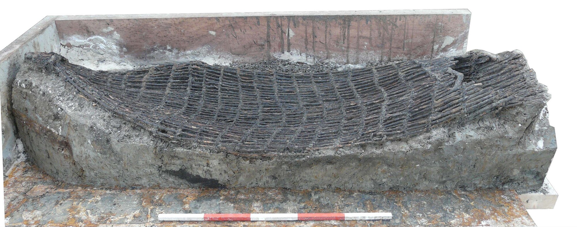 Fuik; zonder inkeling met windsel van touw. De fuik is gevlochten volgens de open-vlechtwerktechniek (Zwirnbindung), bestaande uit staken waar omheen het touw is gevlochten. Voor de staken zijn tweejarige, ongeschilde wilgentenen gebrukt met een diameter tussen 0,2 tot 1,1 cm. Het touw is van getwijnd boombast.