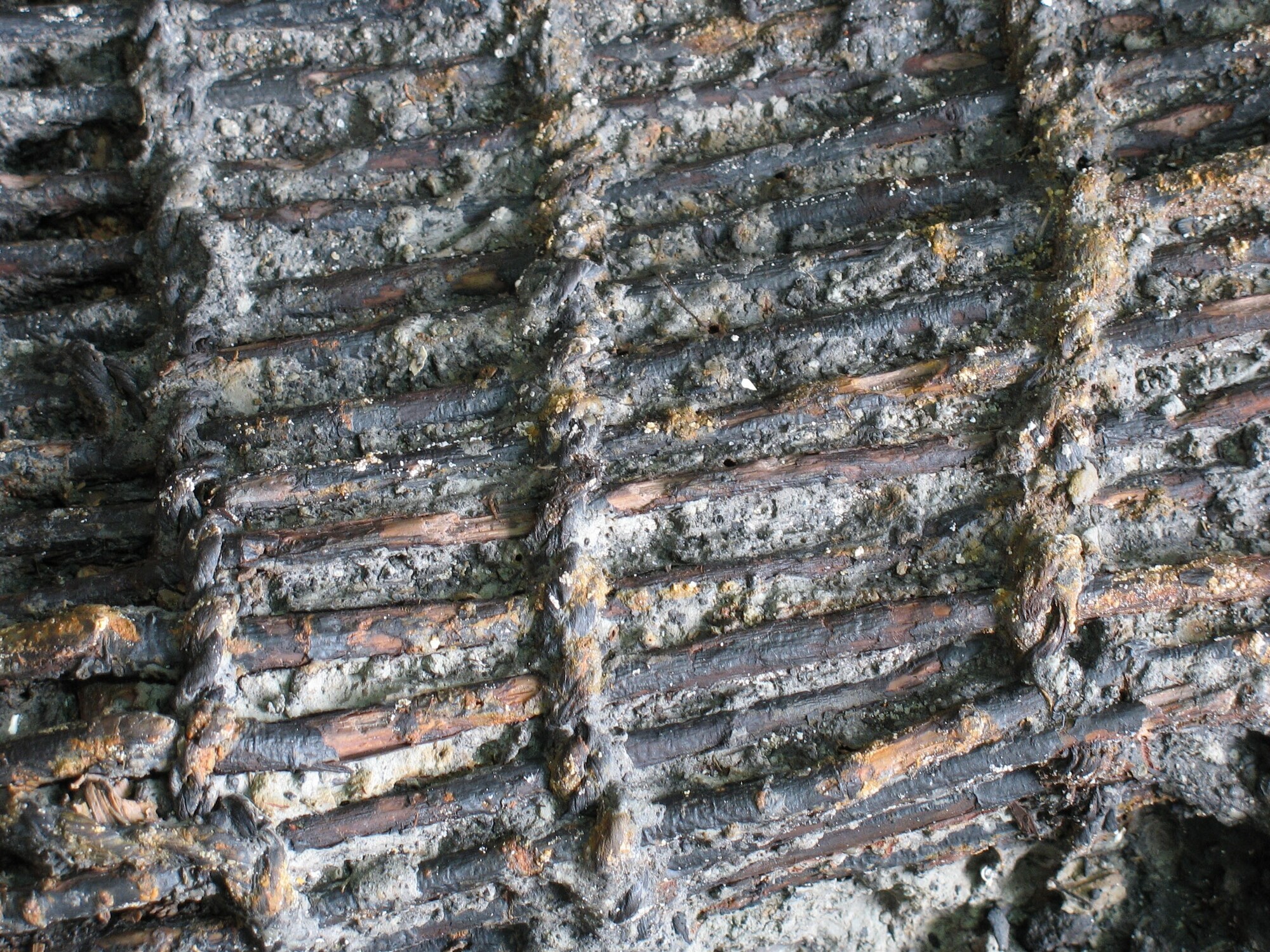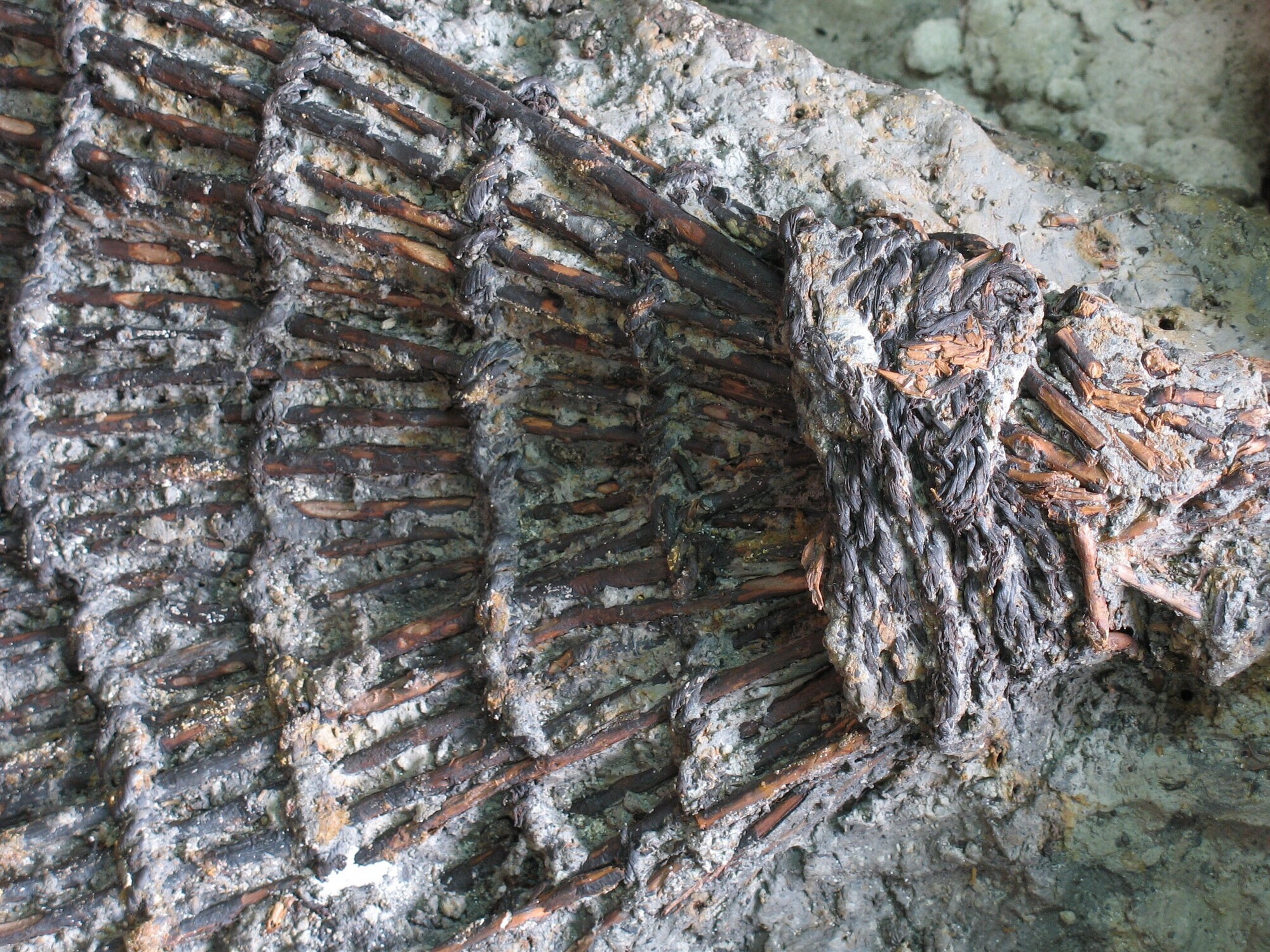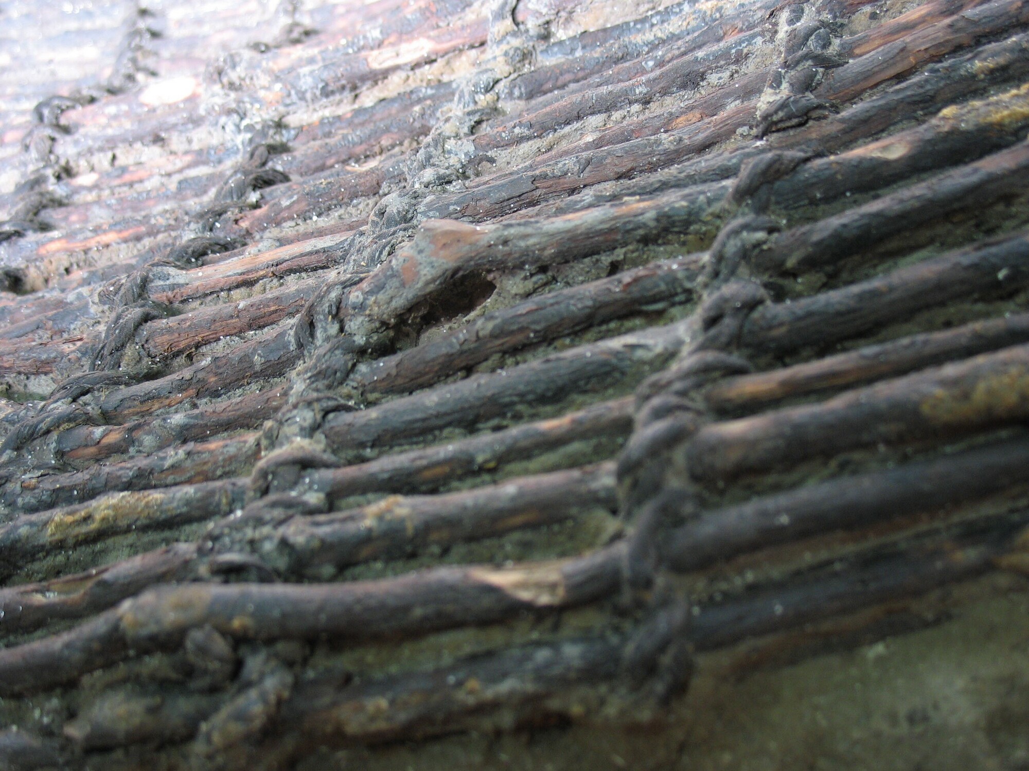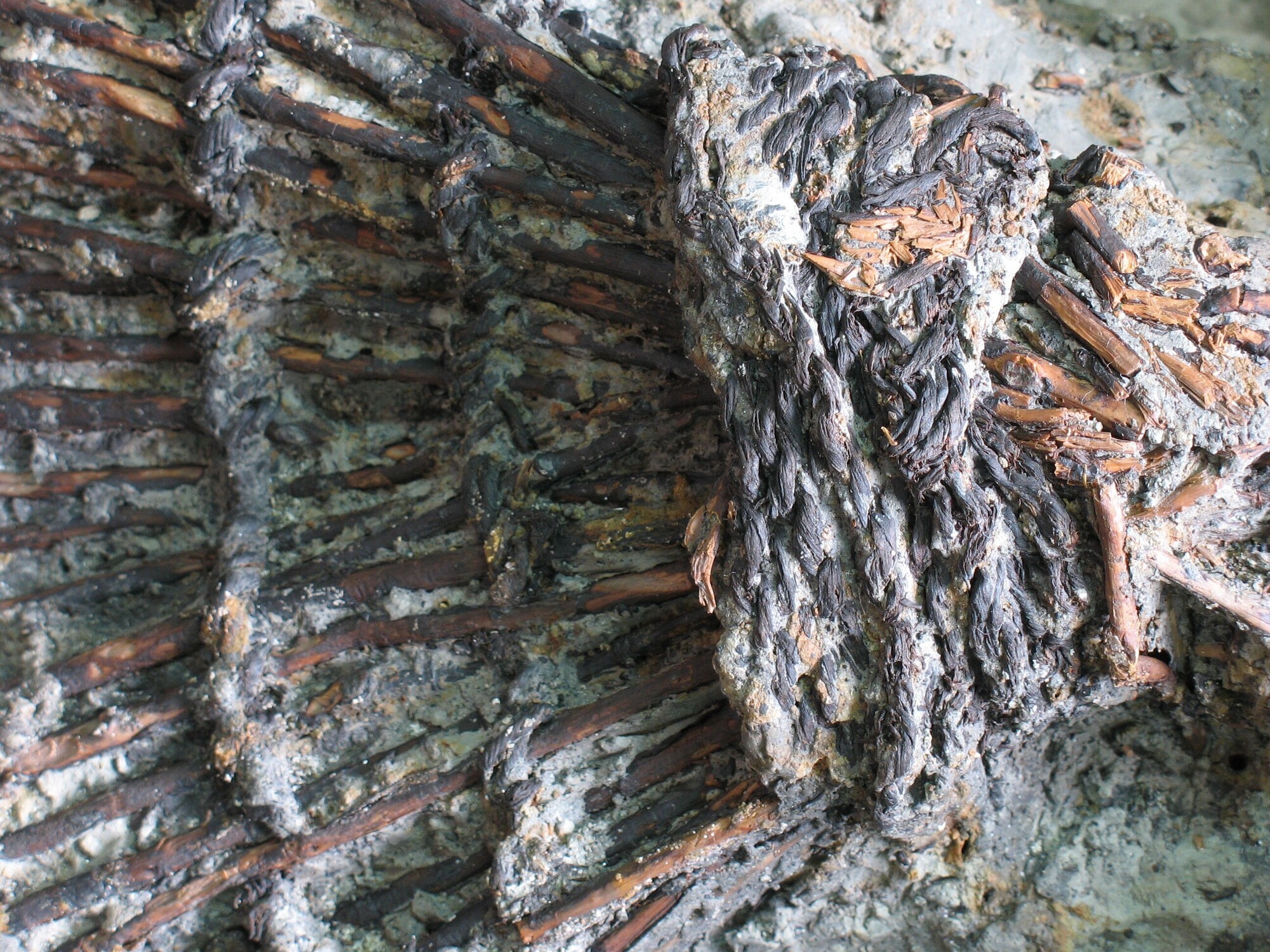 Hout, wilg (Salix sp.); touw, uit niet nader gedetermineerd boombast