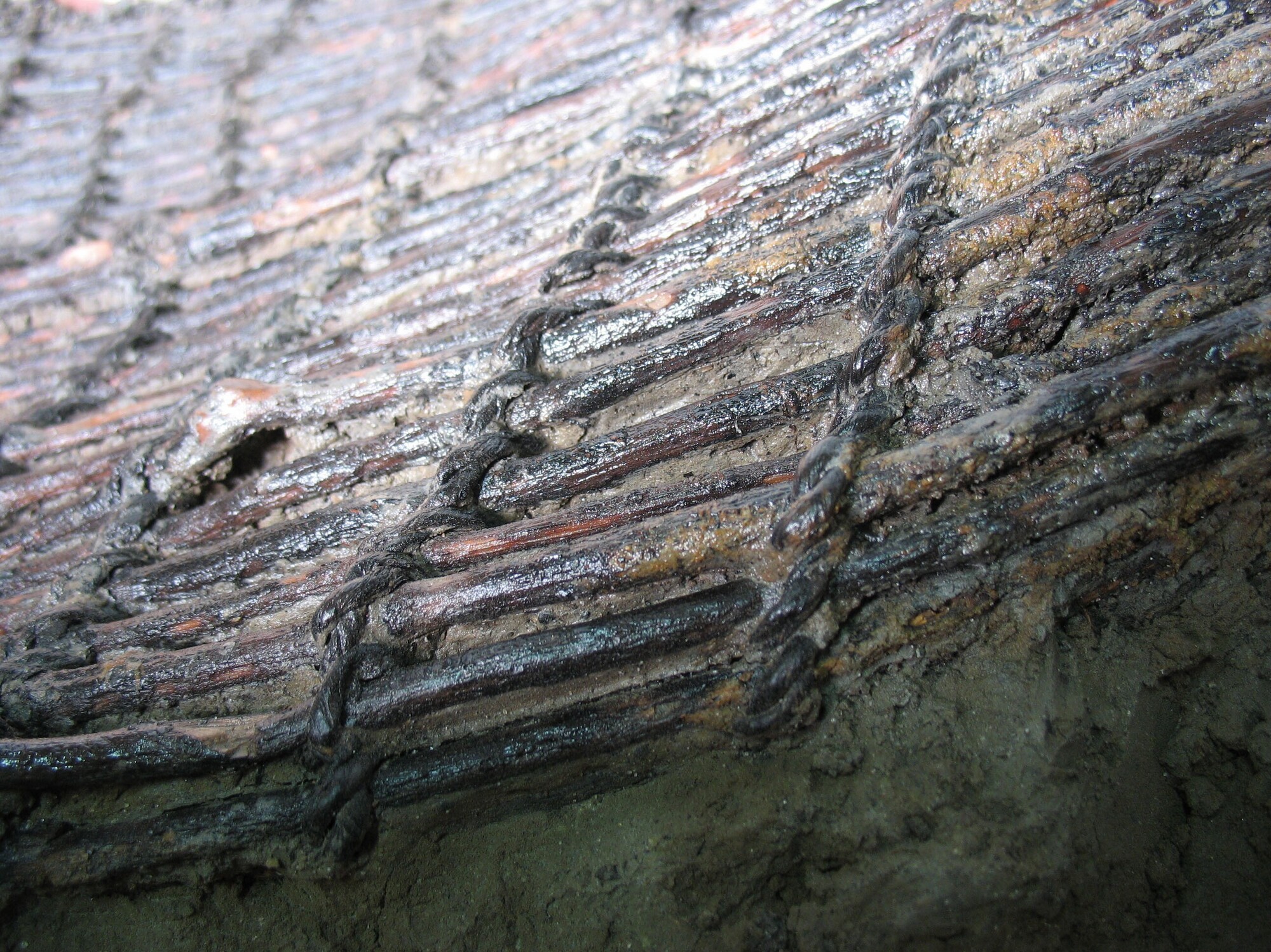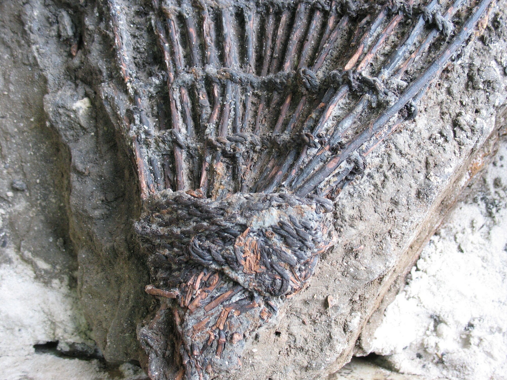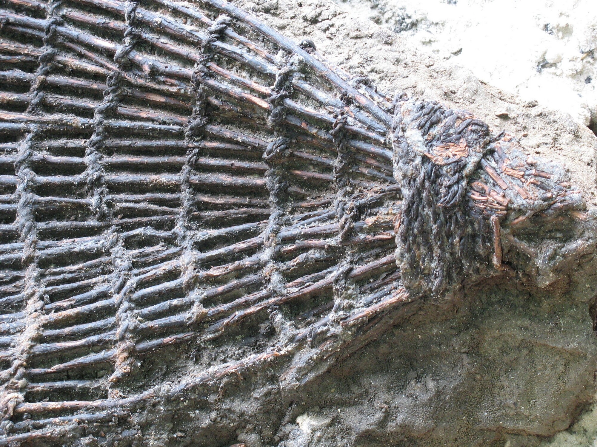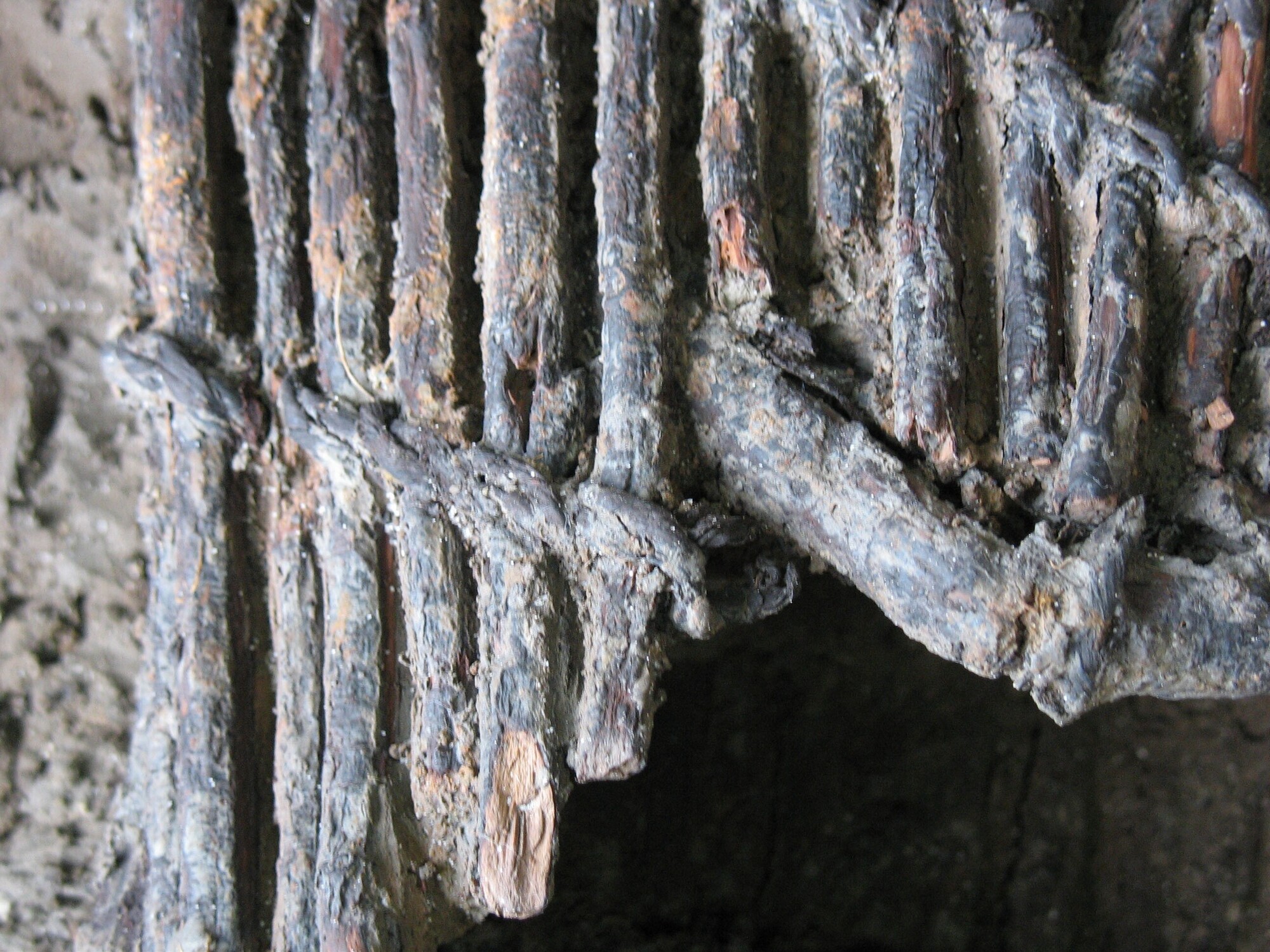 Hout, wilg (Salix sp.); touw, uit niet nader gedetermineerd boombast