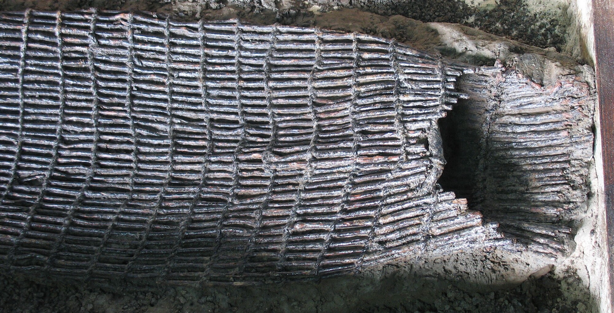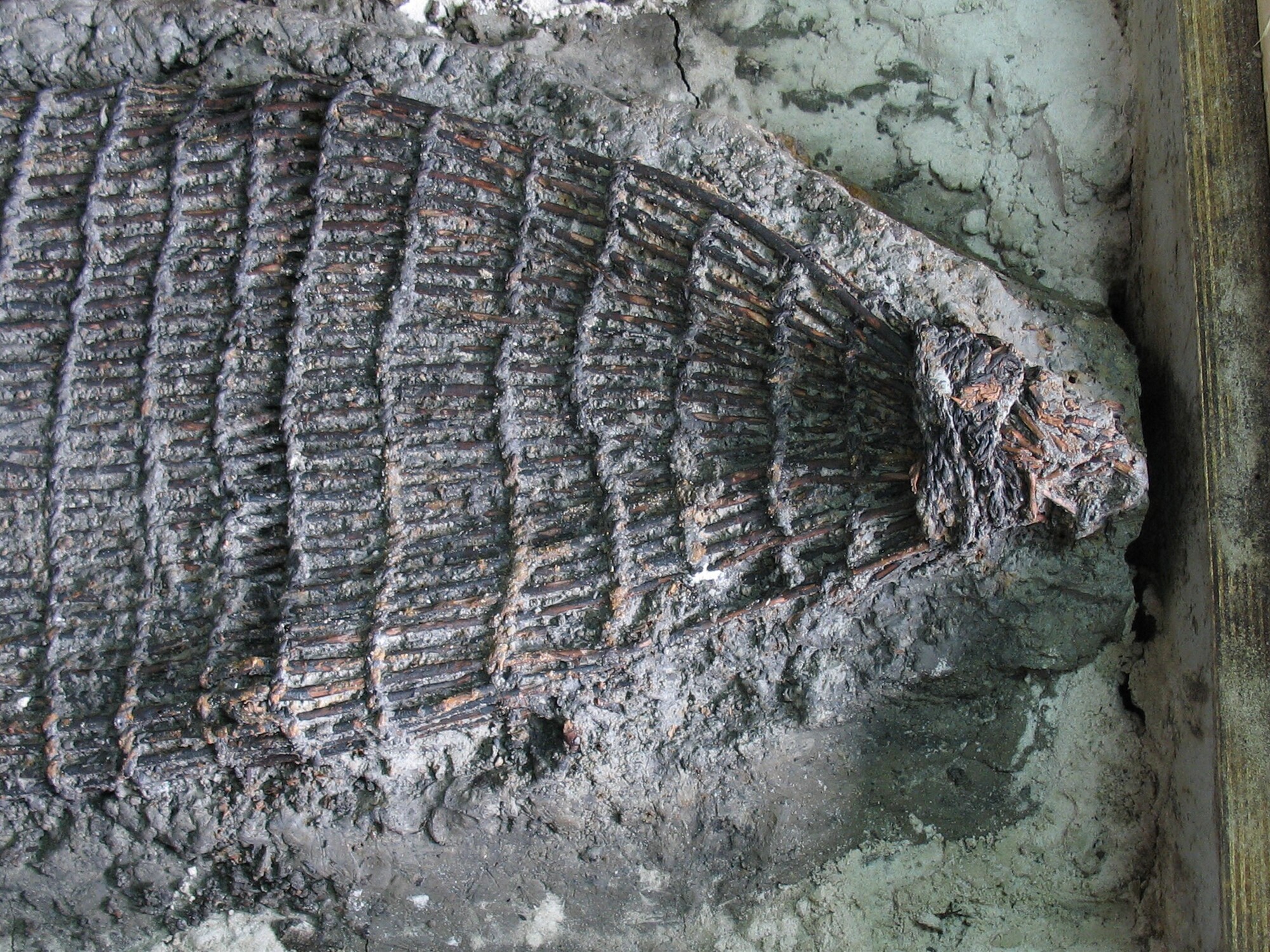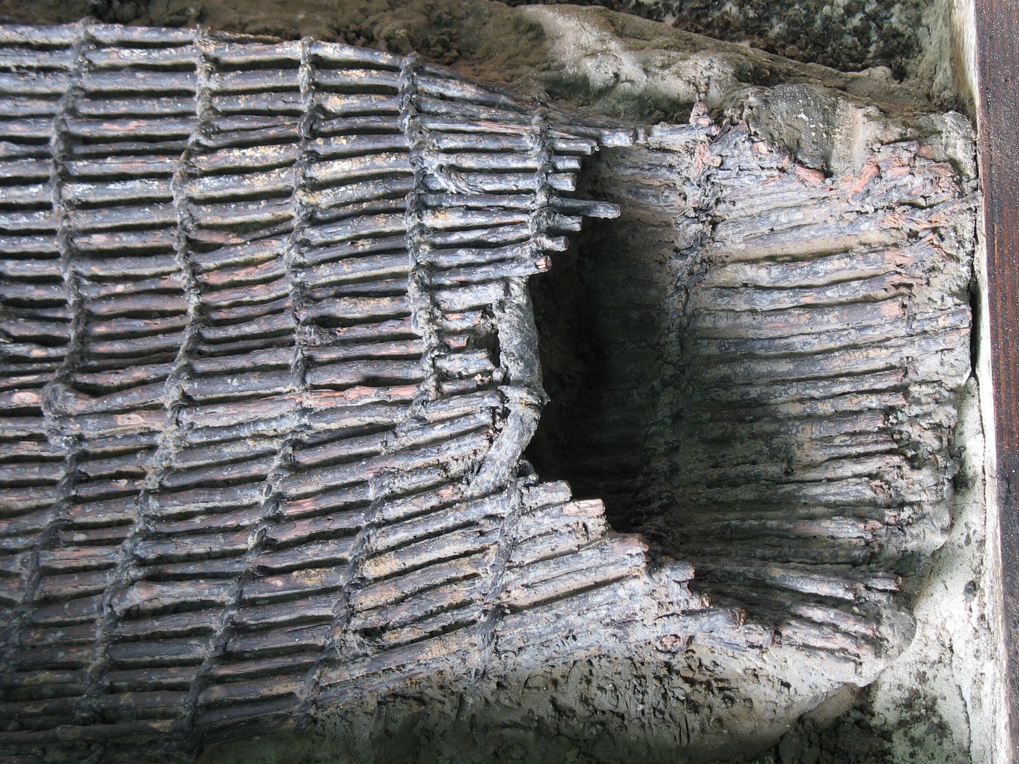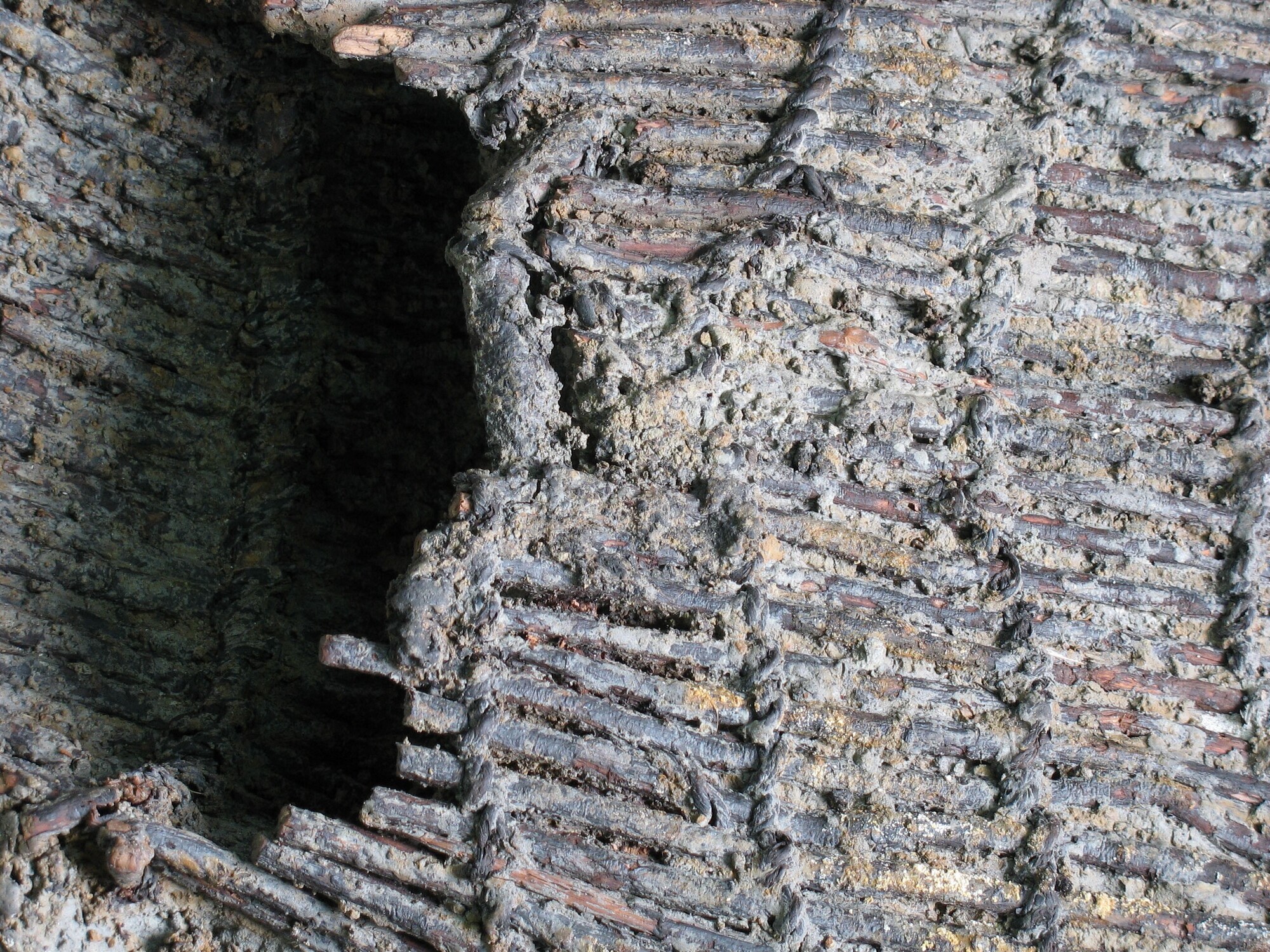 Hout, wilg (Salix sp.); touw, uit niet nader gedetermineerd boombast