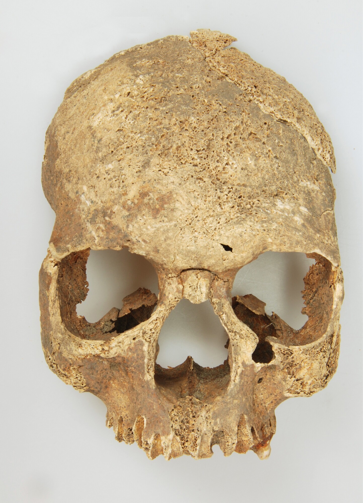 Schedelfragment van een mannelijk individu van 23-40 jaar oud met afwijkingen ten gevolge van lepra