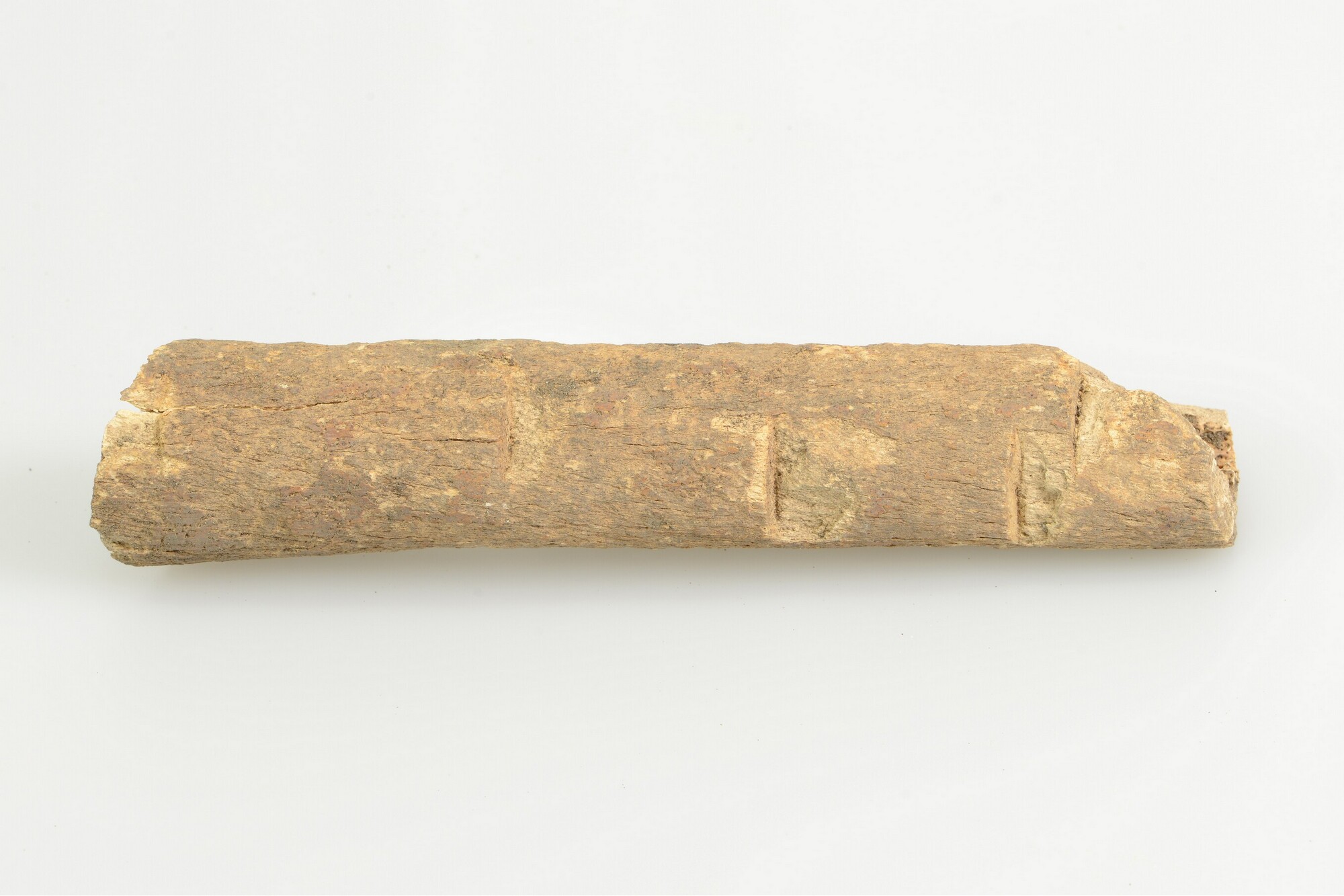 Deel van een rechter scheenbeen met trauma door wapengeweld