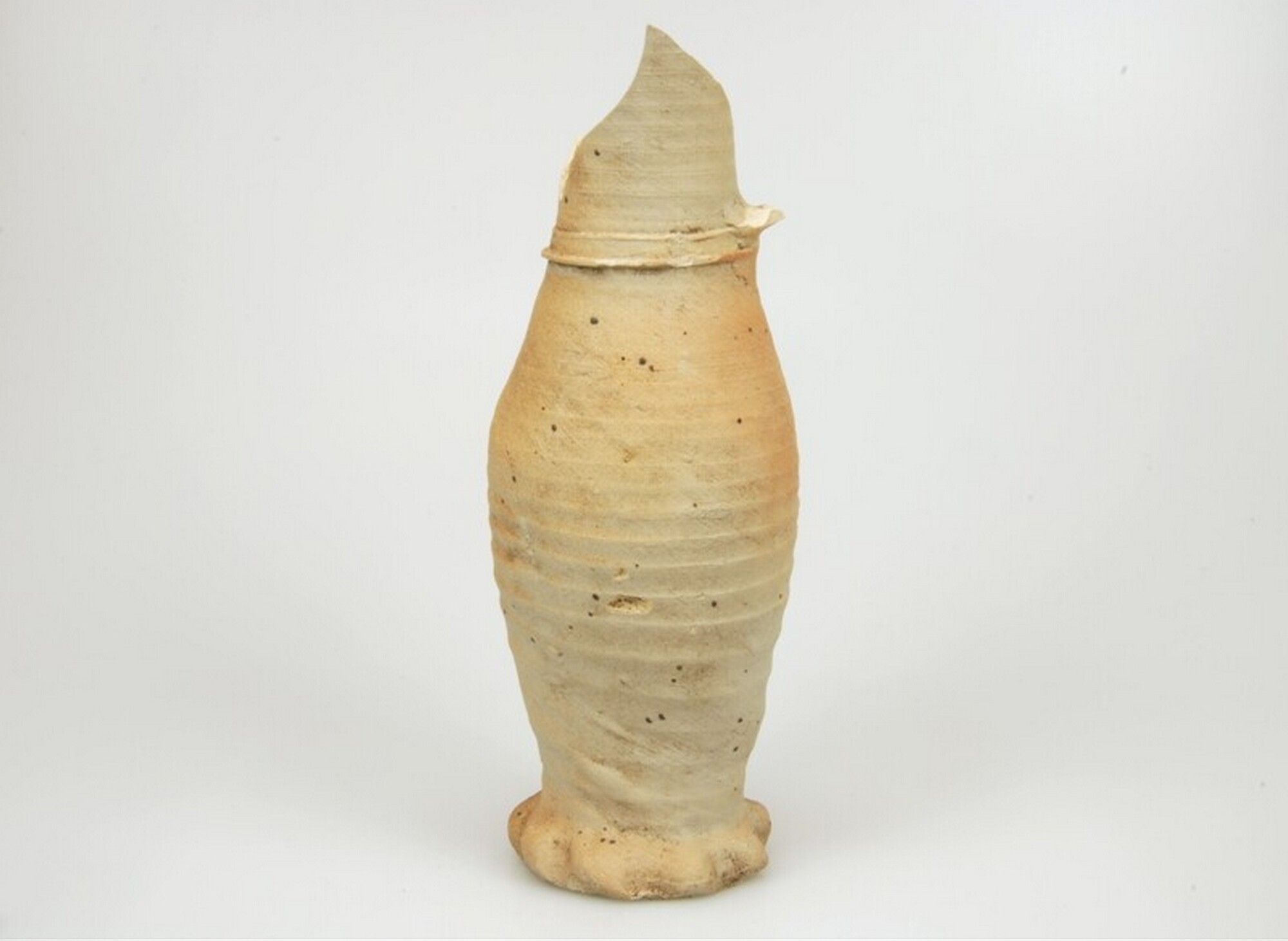 Kan; s1-kan-1; slanke hoge 'Jacobakan' met kraag op halsaanzet; steengoed; oranje blos; geknepen standring; één lintoor (ontbreekt); productieplaats: Siegburg
