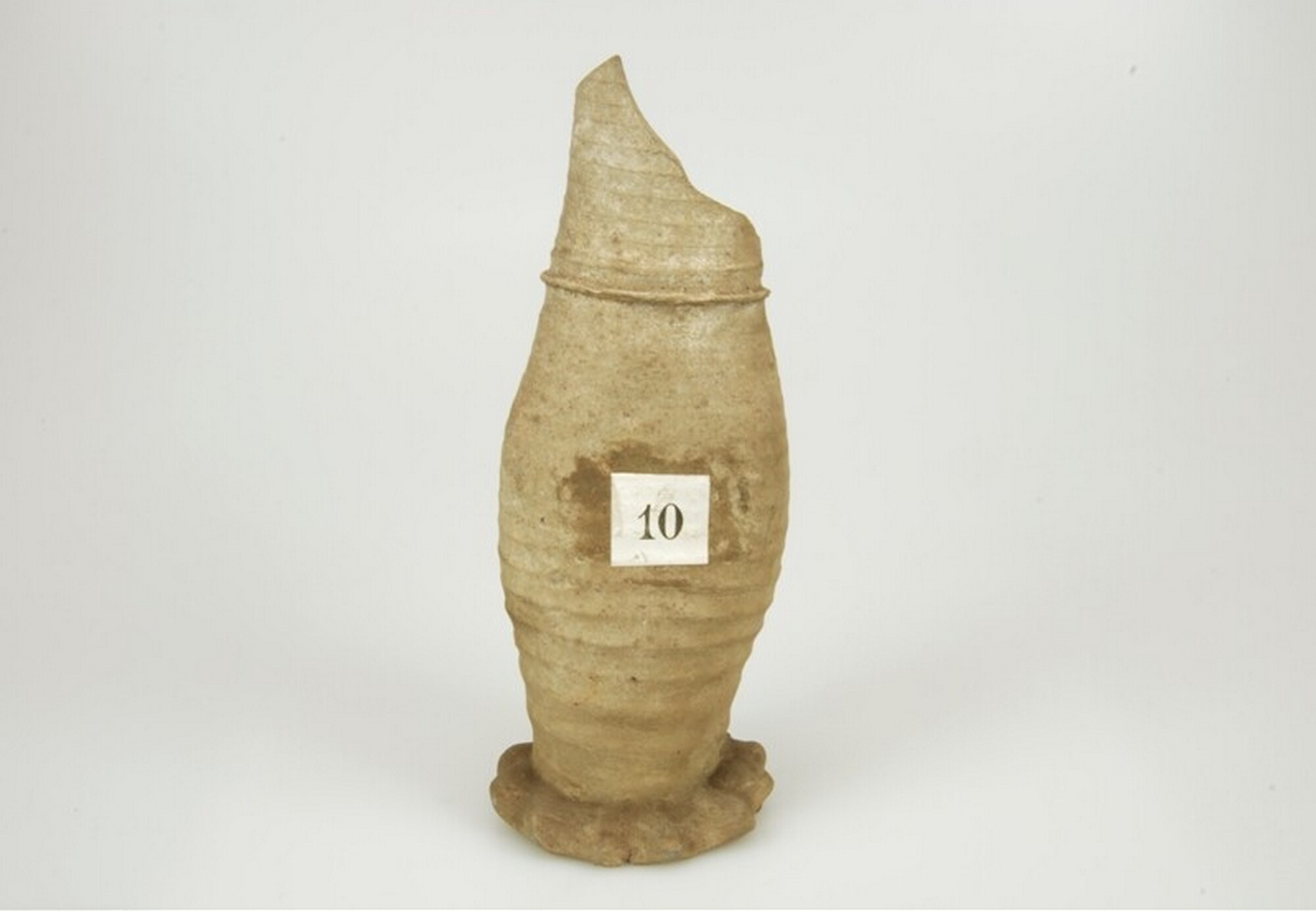 Kan; s1-kan-1; slanke hoge 'Jacobakan' met kraag op halsaanzet; steengoed; geknepen standring; één lintoor (ontbreekt); productieplaats: Siegburg