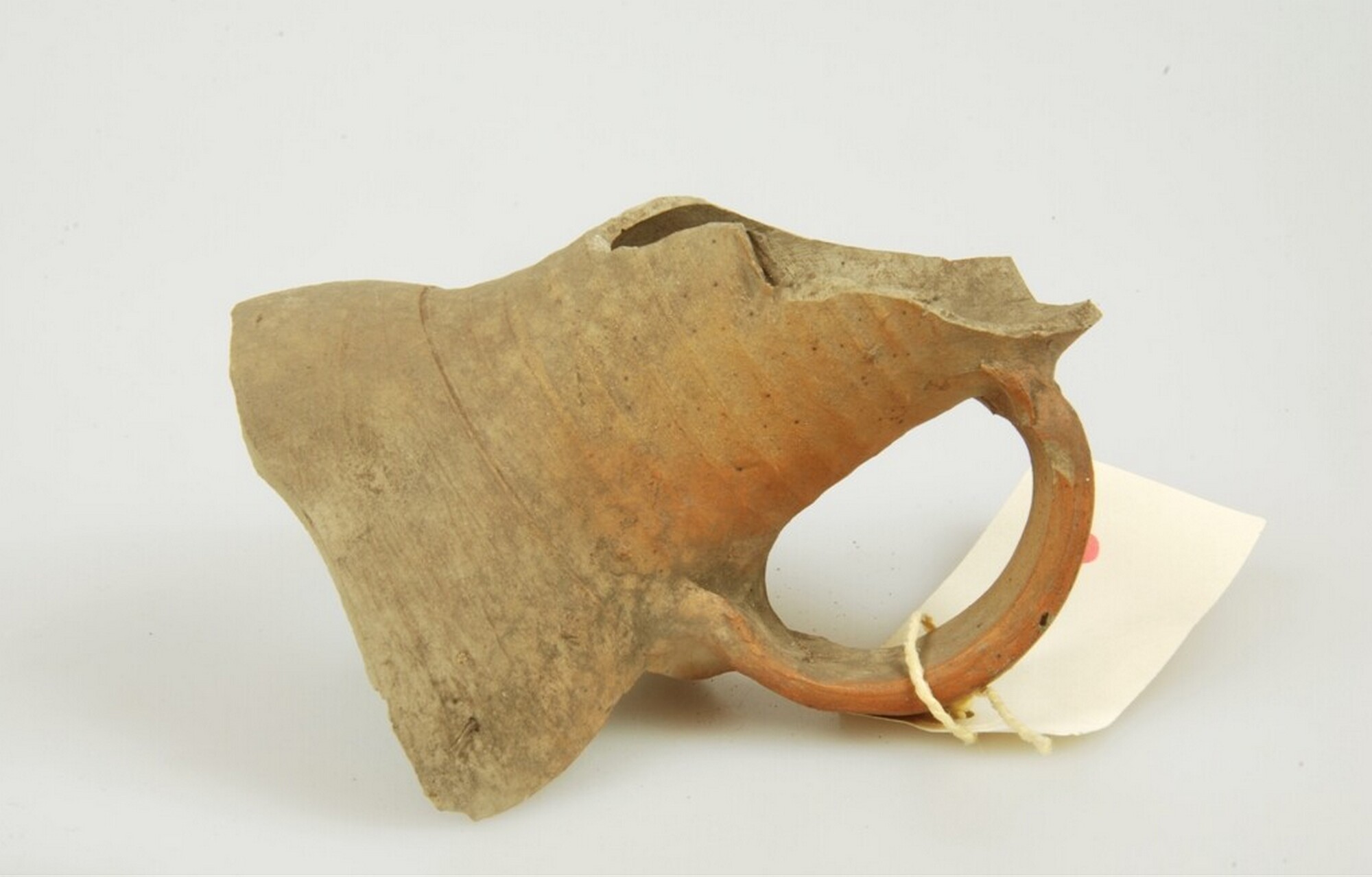 Kan; rand/wandfrafgment; s1-kan-; één verticaal lintoor; oranje blos; productieplaats: Siegburg