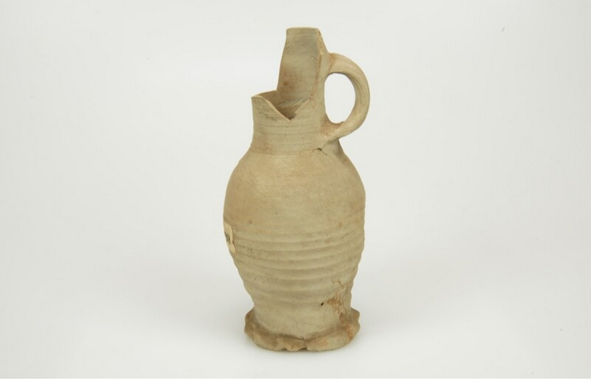 Kan; s1-kan-3; steengoed; gedraaid; geknepen standring; één lintoor, draairingen, zonder ribbels, Siegburg; De Stuers (19e eeuwse vondst)