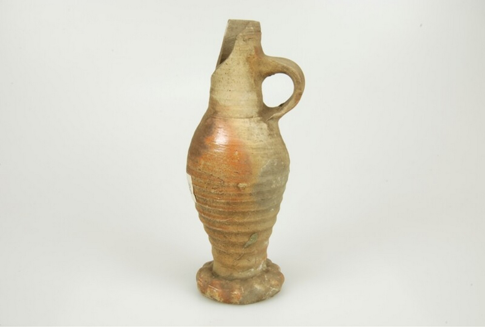 Kan; s1-kan-3; steengoed; gedraaid; standring; gevlamd; één lintoor; draairingen, zonder ribbels; Siegburg, De Stuers (19e eeuwse vondst)