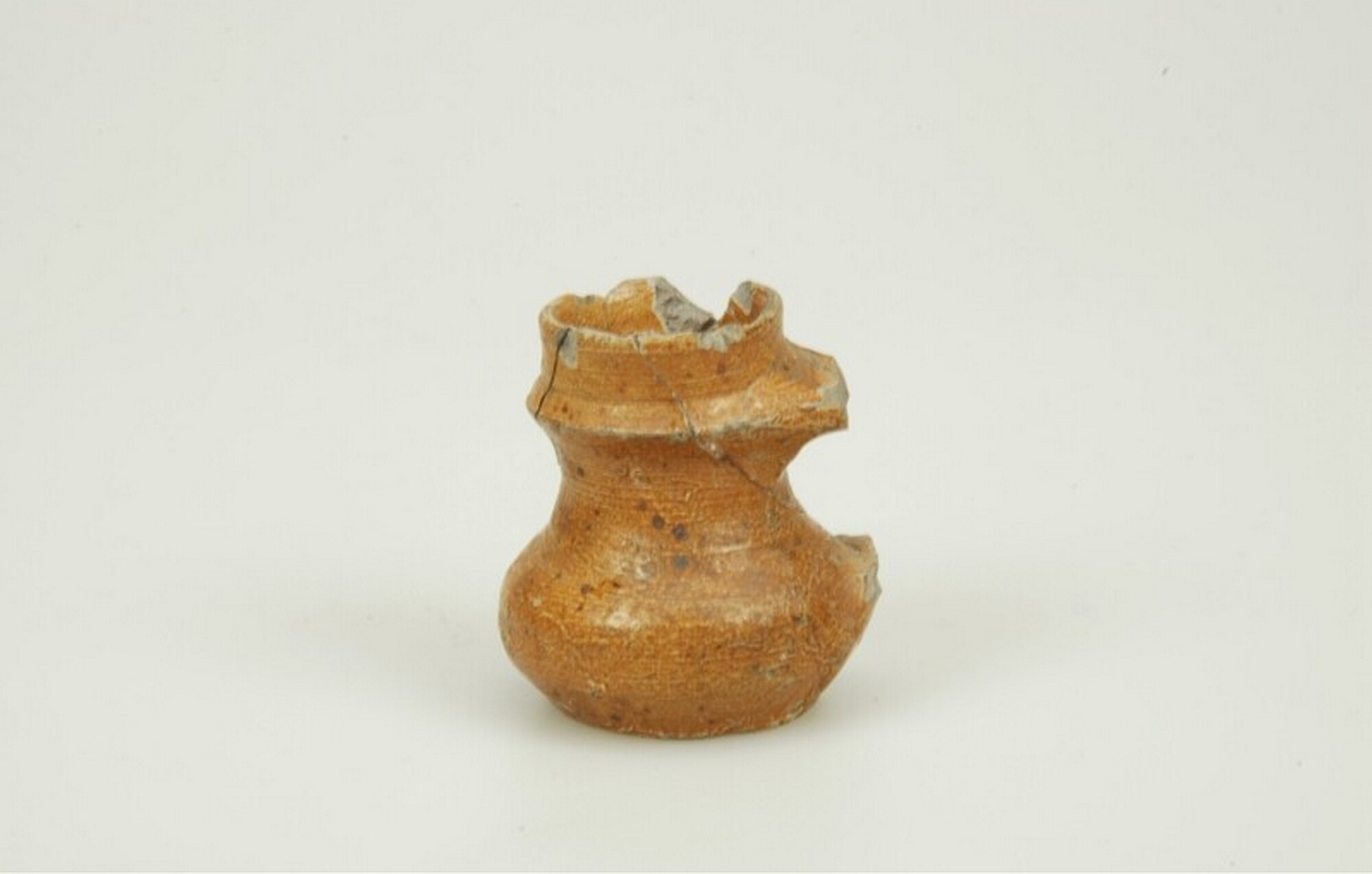 Kan; s2-kan-45; steengoed; gedraaid; standring, geknepen; glazuur aan beide zijden; miniatuur; De Stuers (19e eeuwse vondst)