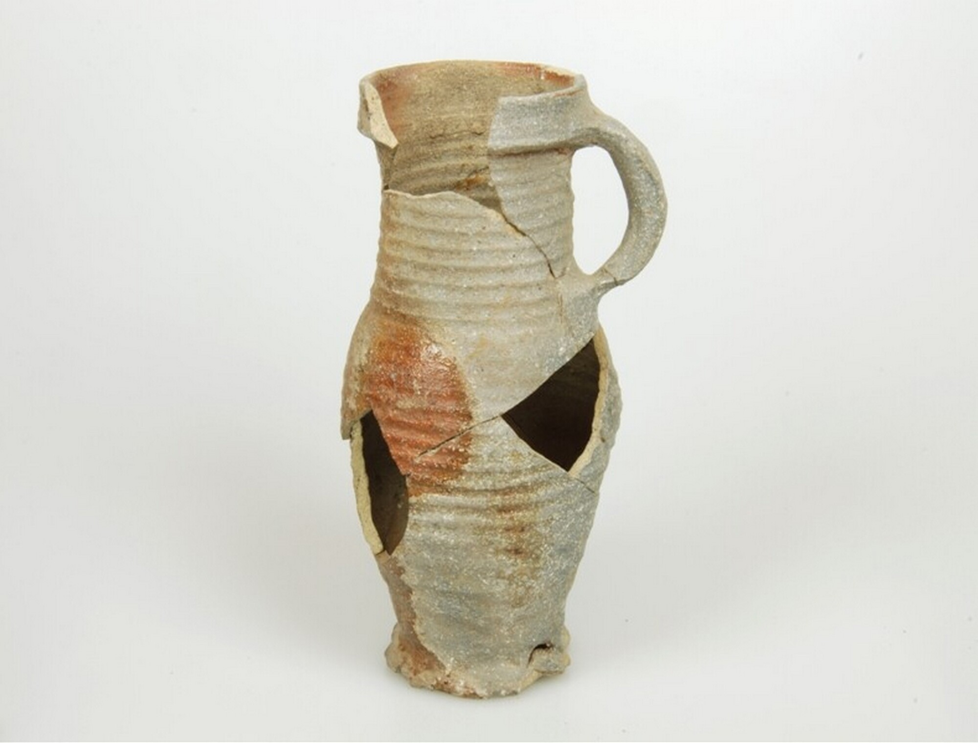 Kan; s5-kan-3; proto-steengoed; gedraaid; één lintoor; manchetrand; standring; bruine engobe