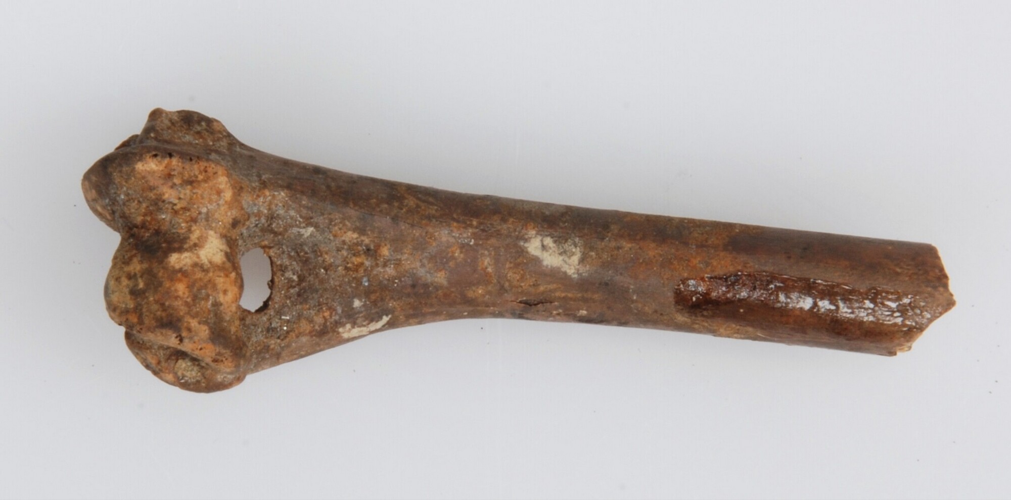 Distale helft van het opperarmbeen (humerus) van een volwassen hond met trauma. Laag: 3, vak: 221.50/49.50 (1983)