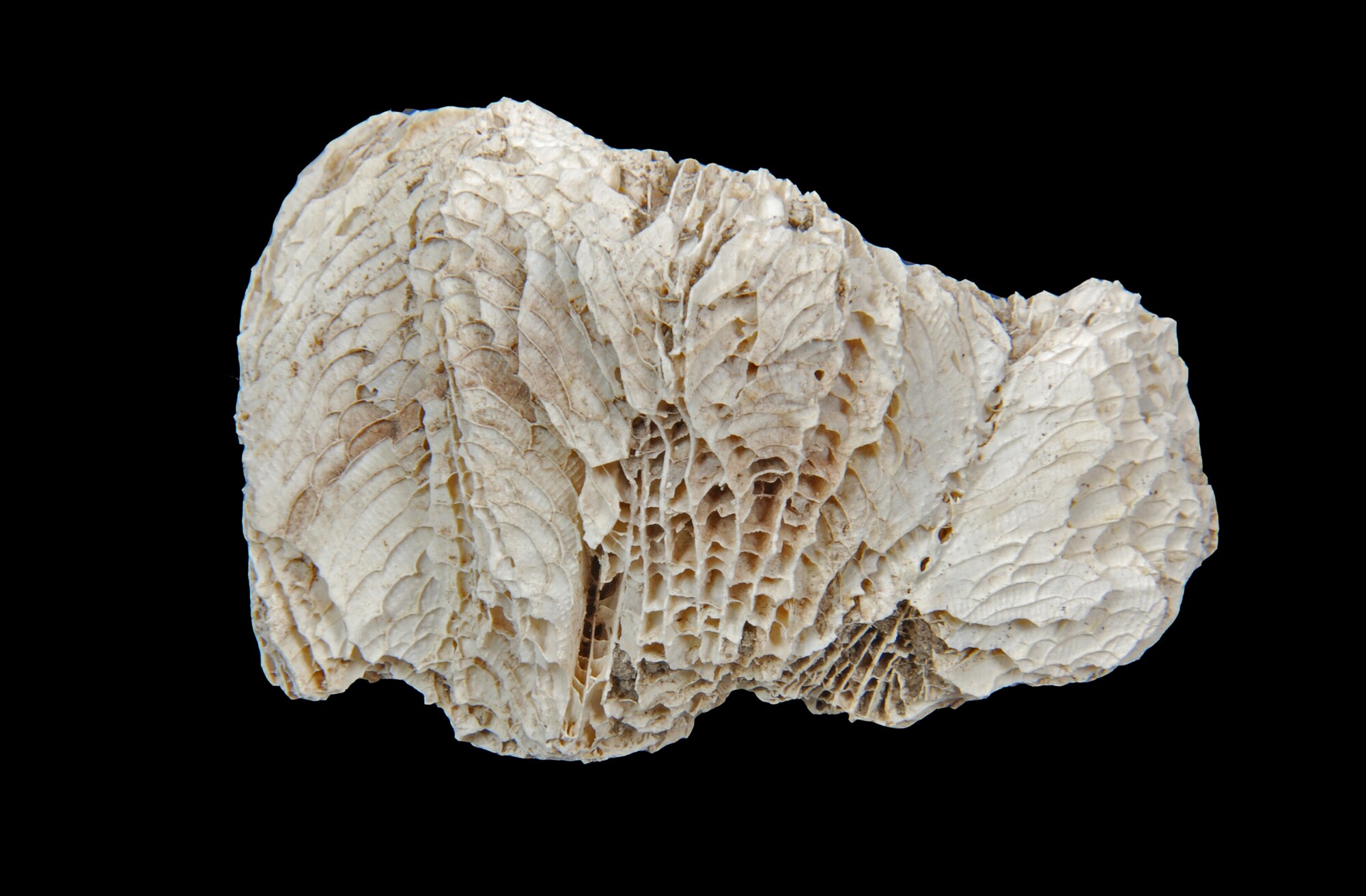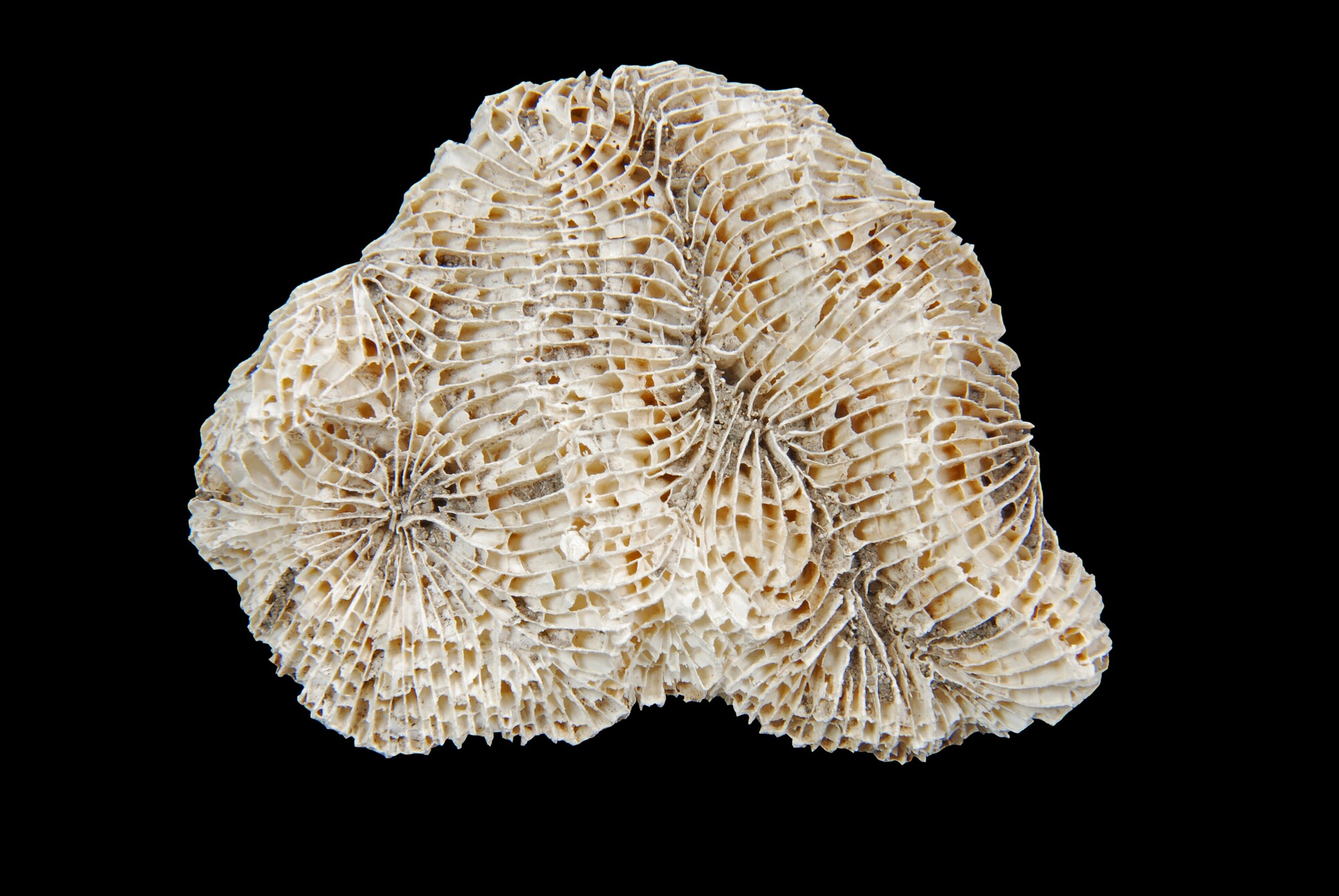 Koraal; kalkskelet van steenkoraal (Colpophullia natans), ook wel bekend als hersenkoraal; brokstuk; herkomst: Caribische Zee; vondstomstandigheden: afkomstig uit schelpengalerij