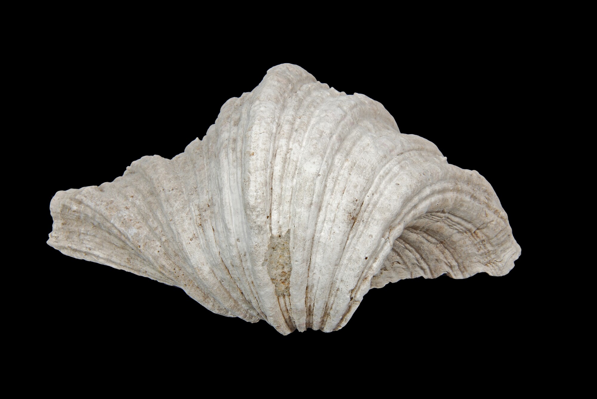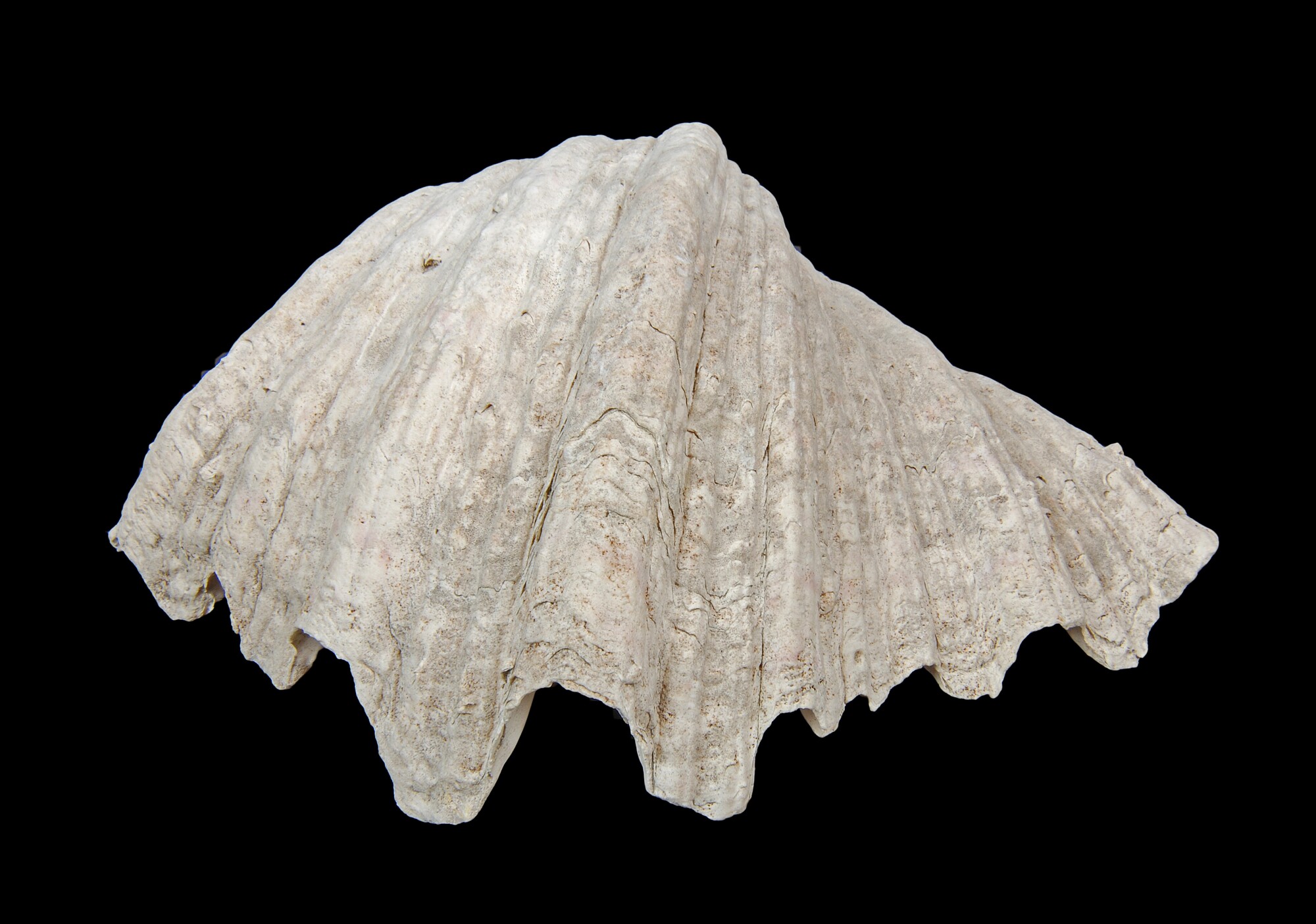 Schelp (Hippopus hippopus); herkomst: Indische Oceaan of westelijke Stille Oceaan; vondstomstandigheden: afkomstig uit schelpengalerij