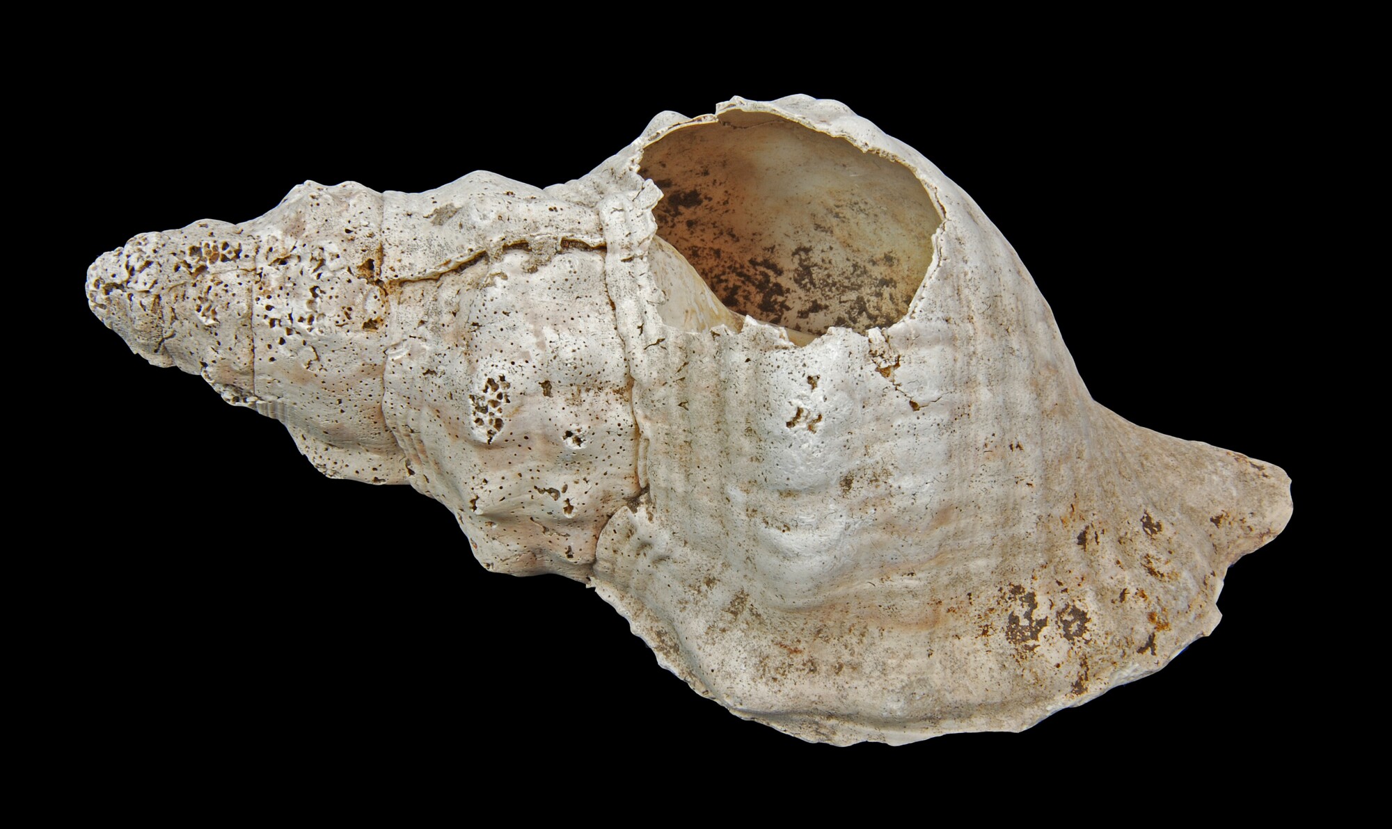 Schelp (Charonia variegata); herkomst: Caribische Zee en westelijke Atlantische Oceaan; vondstomstandigheden: afkomstig uit schelpengalerij