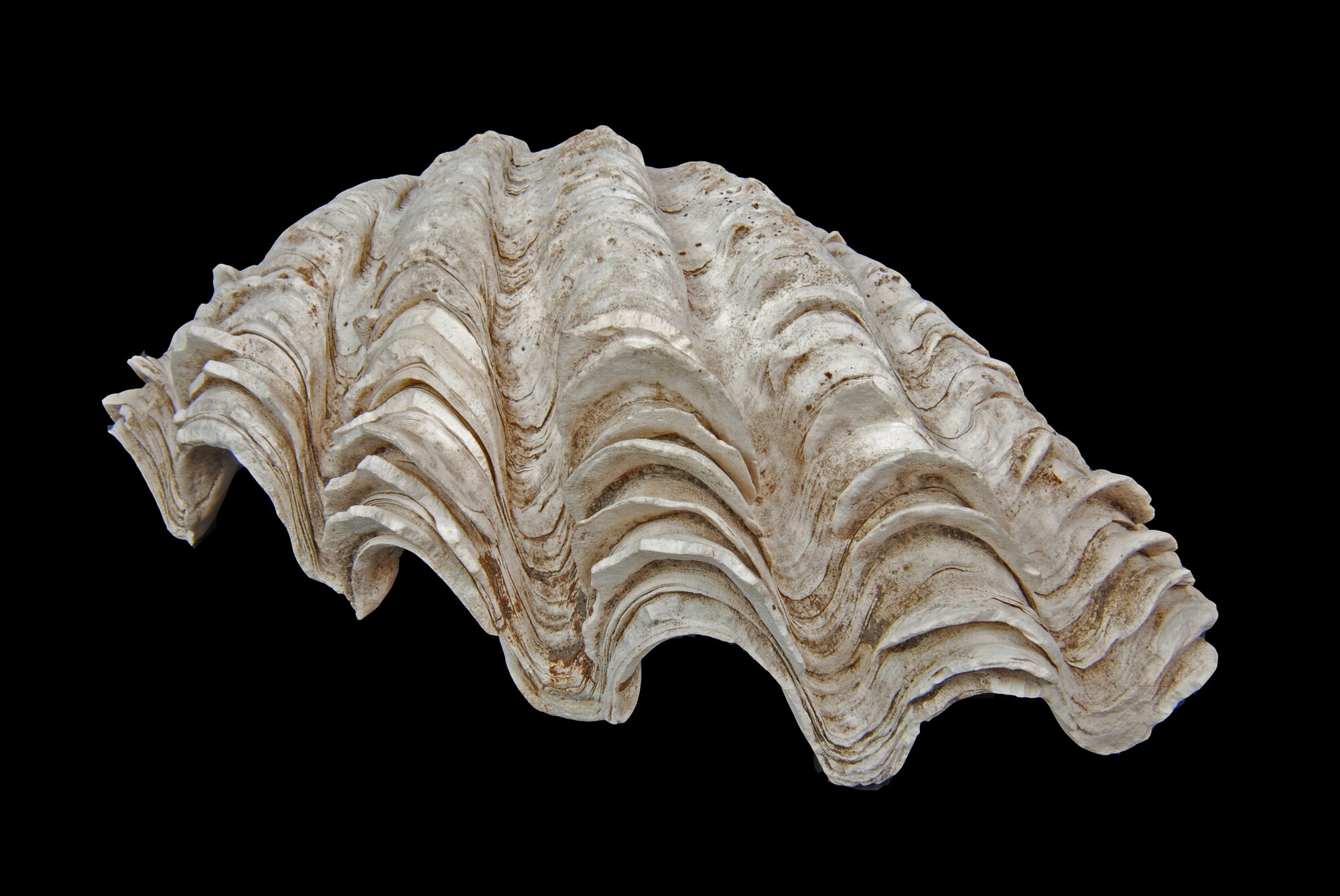 Schelp (Tridacna maxima); herkomst: Indische Oceaan of westelijke Stille Oceaan; vondstomstandigheden: afkomstig uit schelpengalerij