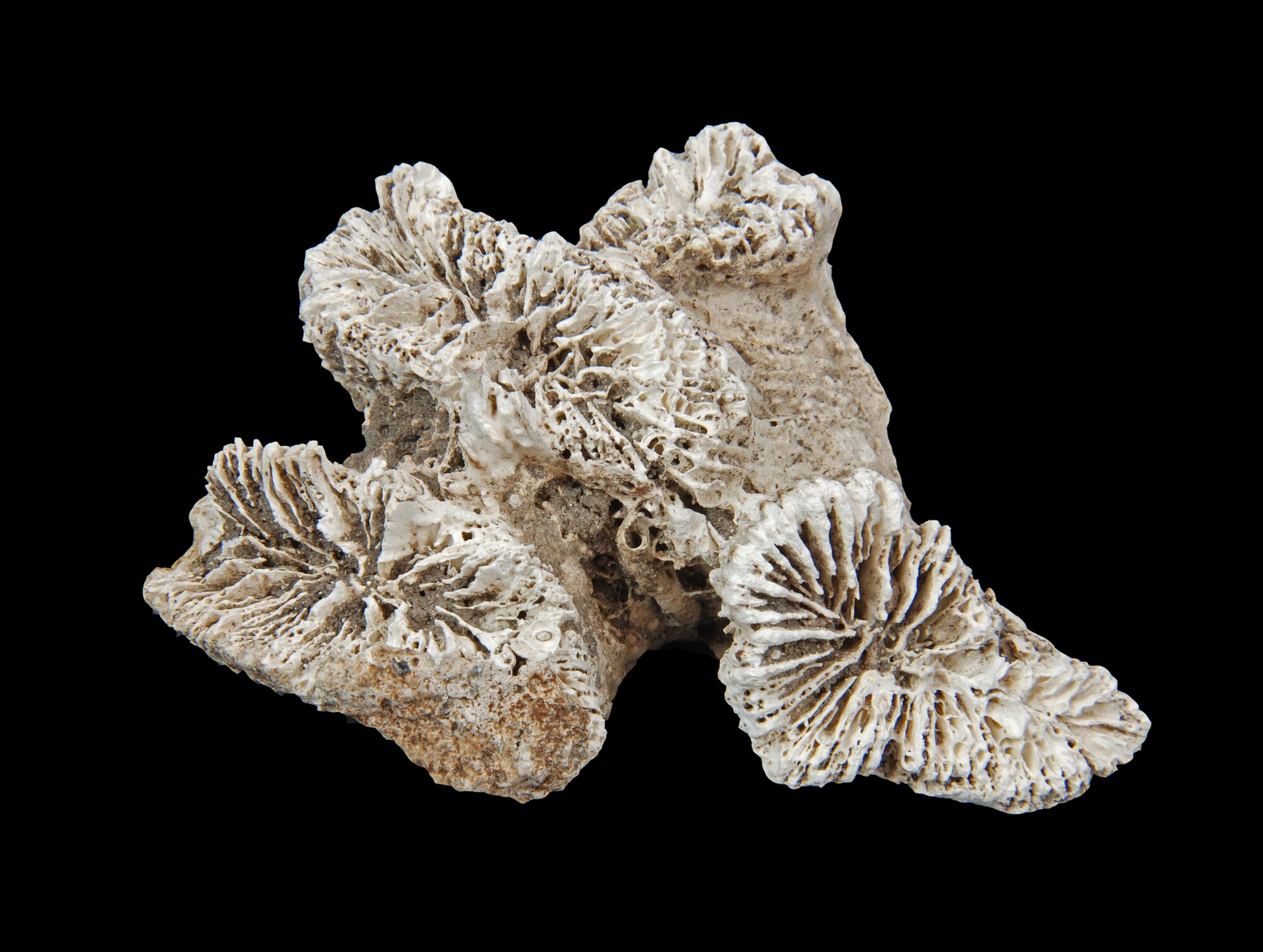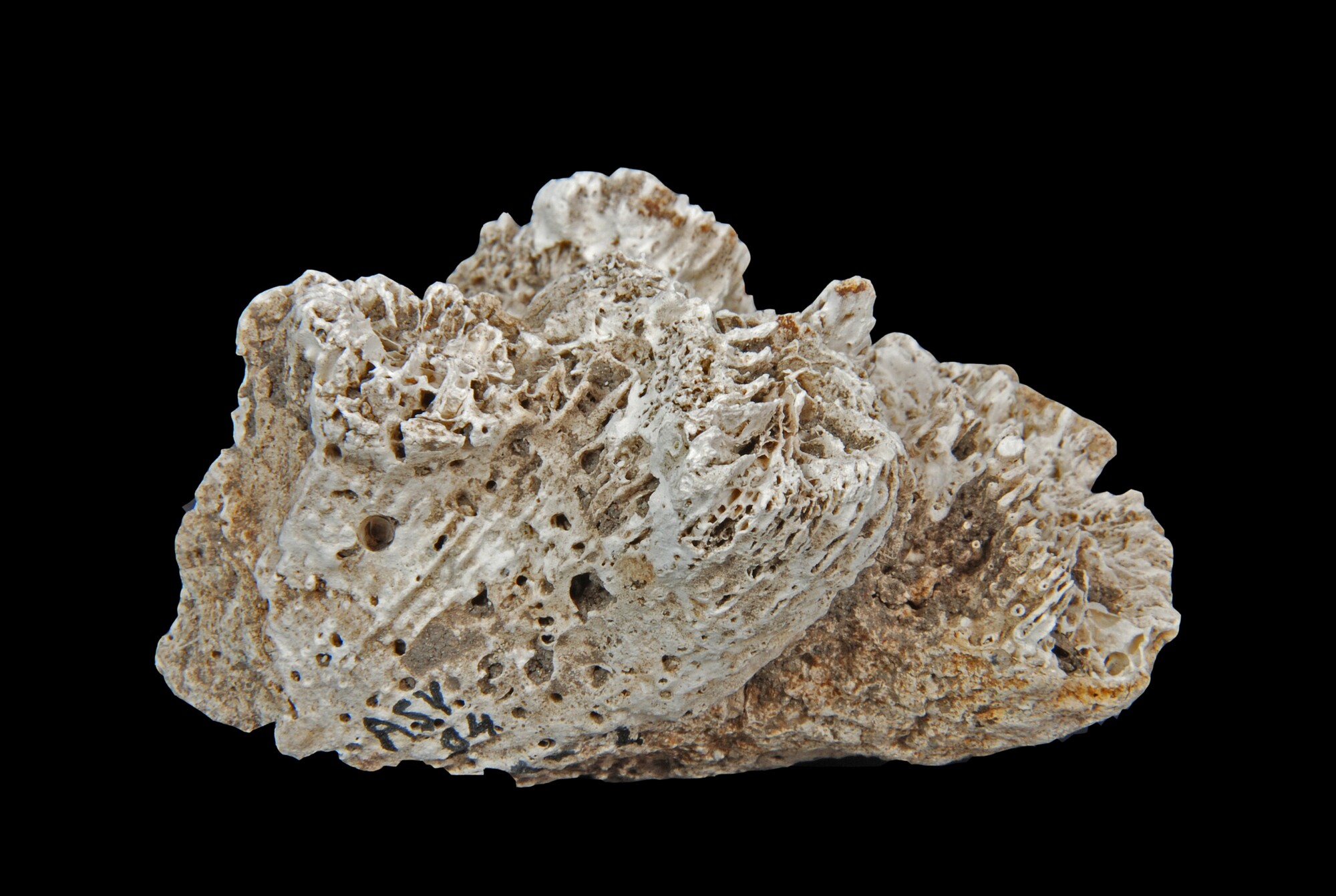 Koraal; kalkskelet van steenkoraal (Muss asp. of Mussimilia sp); brokstuk; herkomst: zuidwestelijke Atlantische Oeaan; vondstomstandigheden: afkomstig uit schelpengalerij